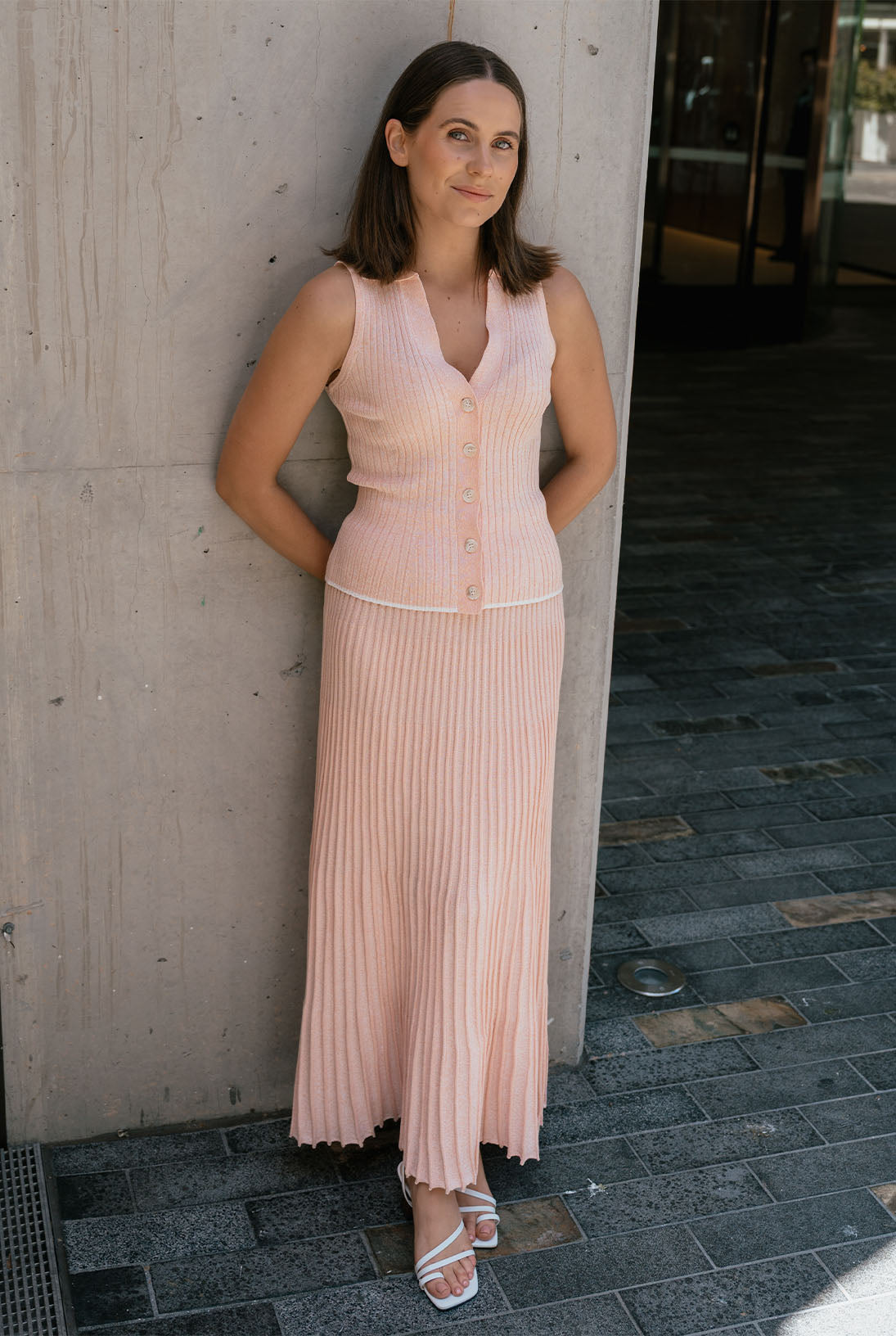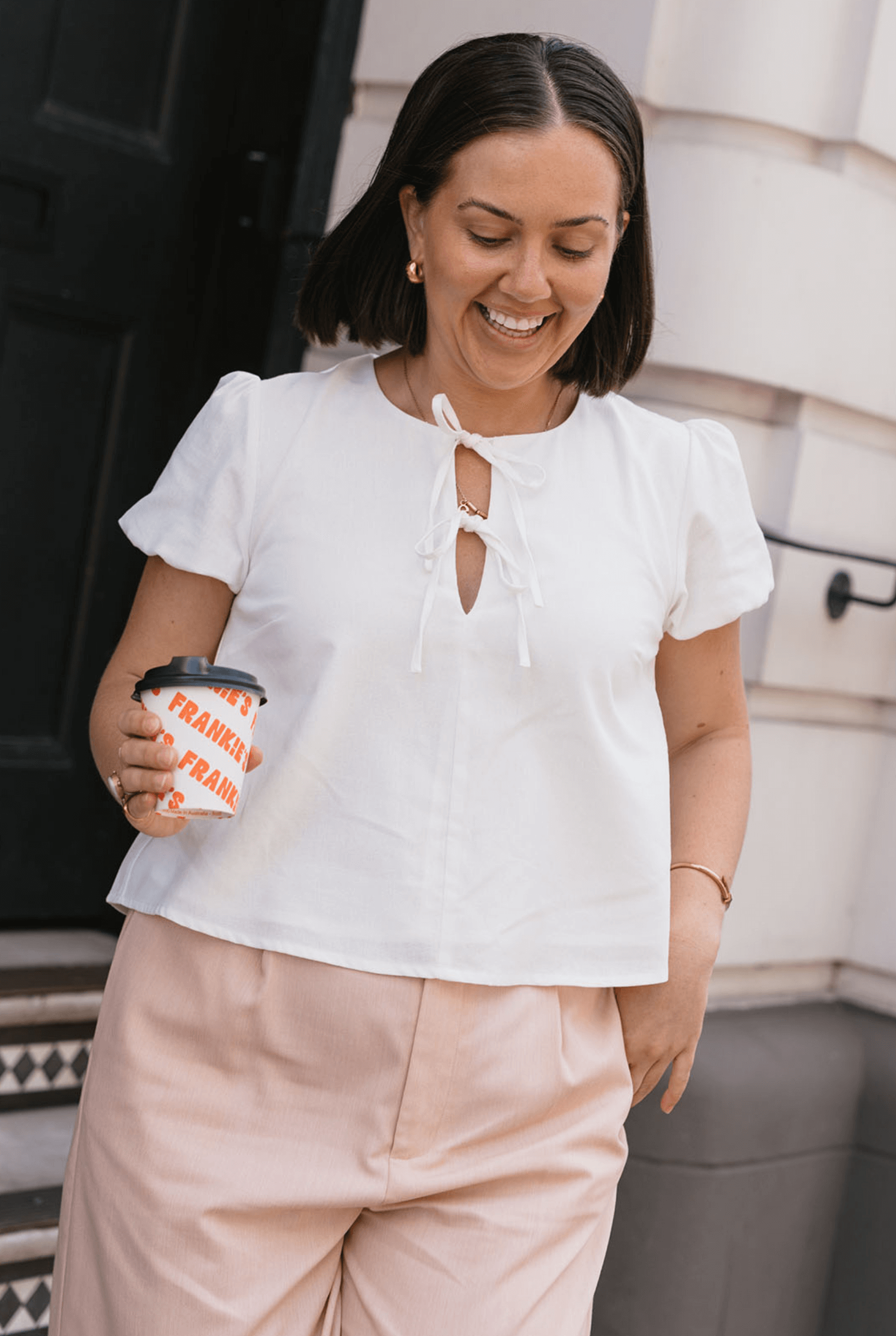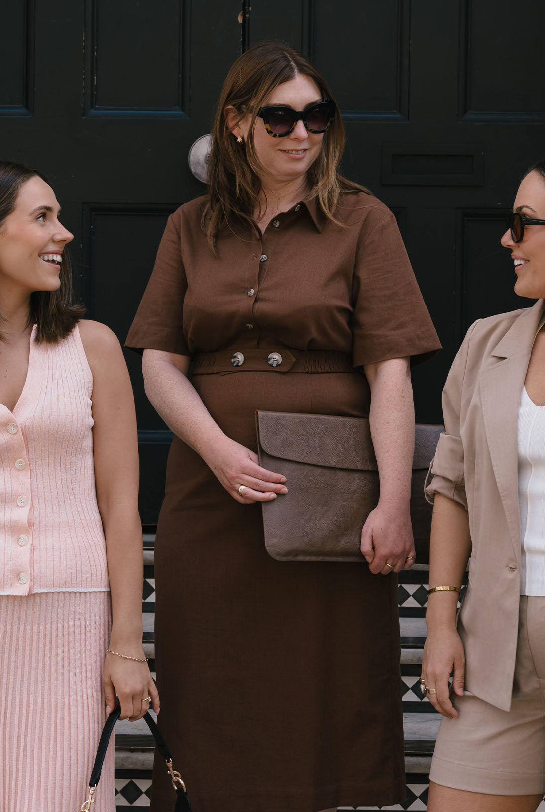 Square Neck Gathered Dress - Biscotti/White Stripe