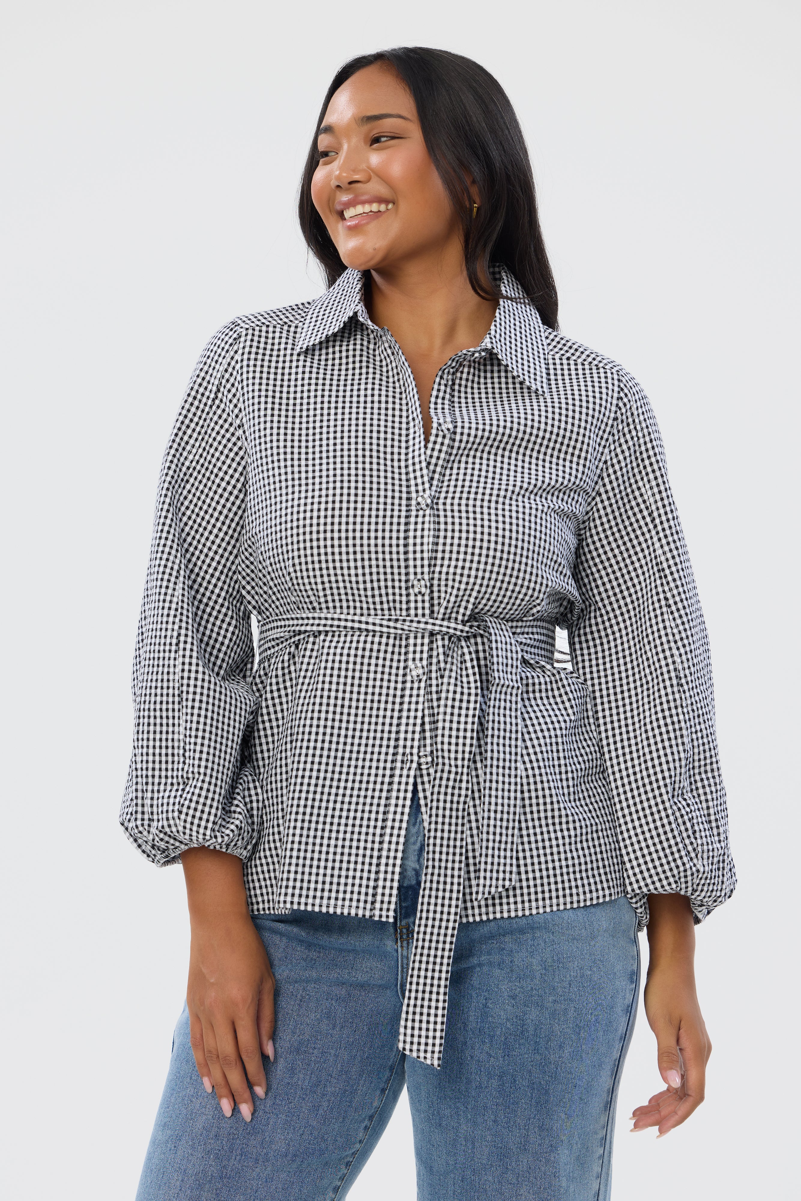 Gathered Midi Skirt- Black/White Gingham