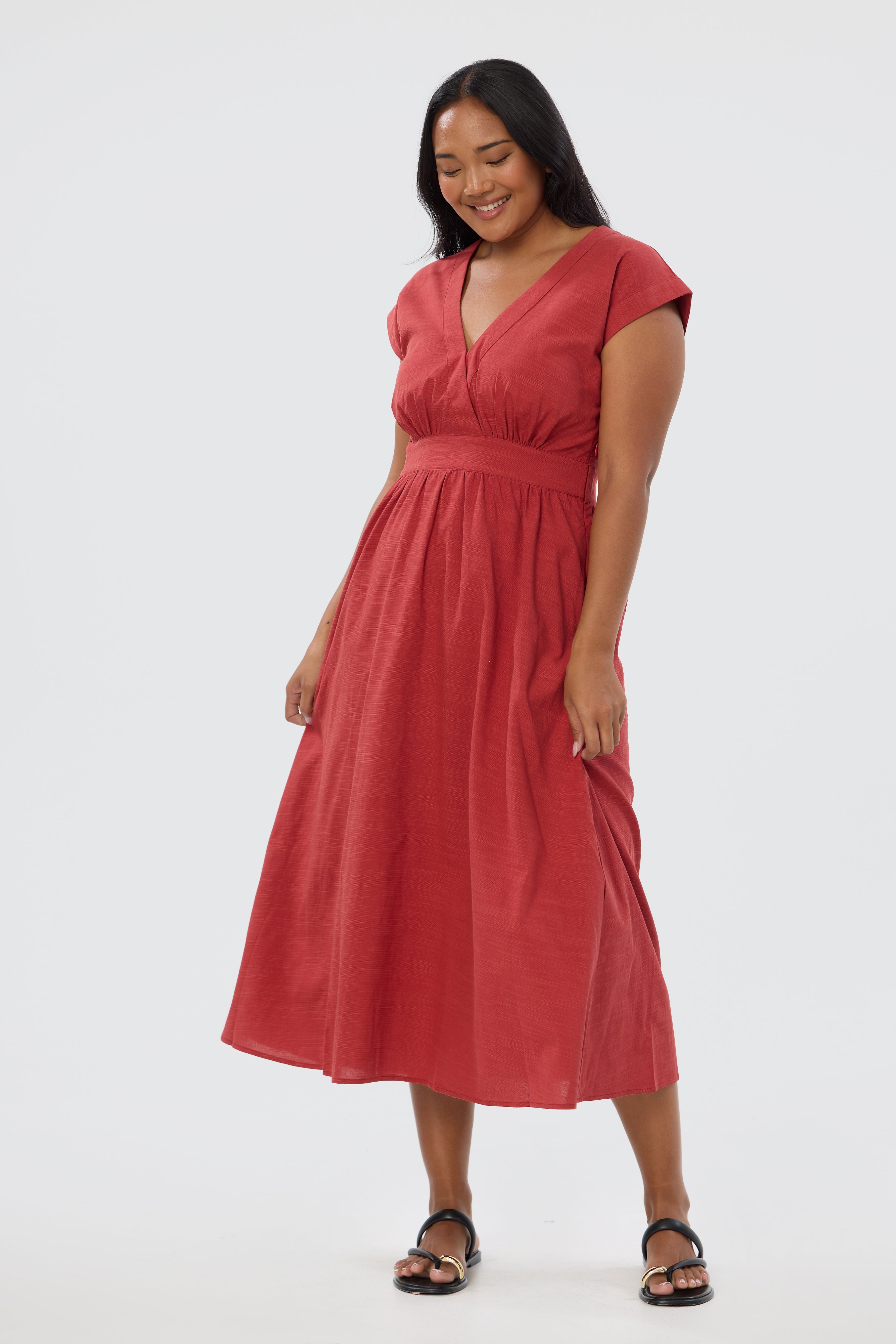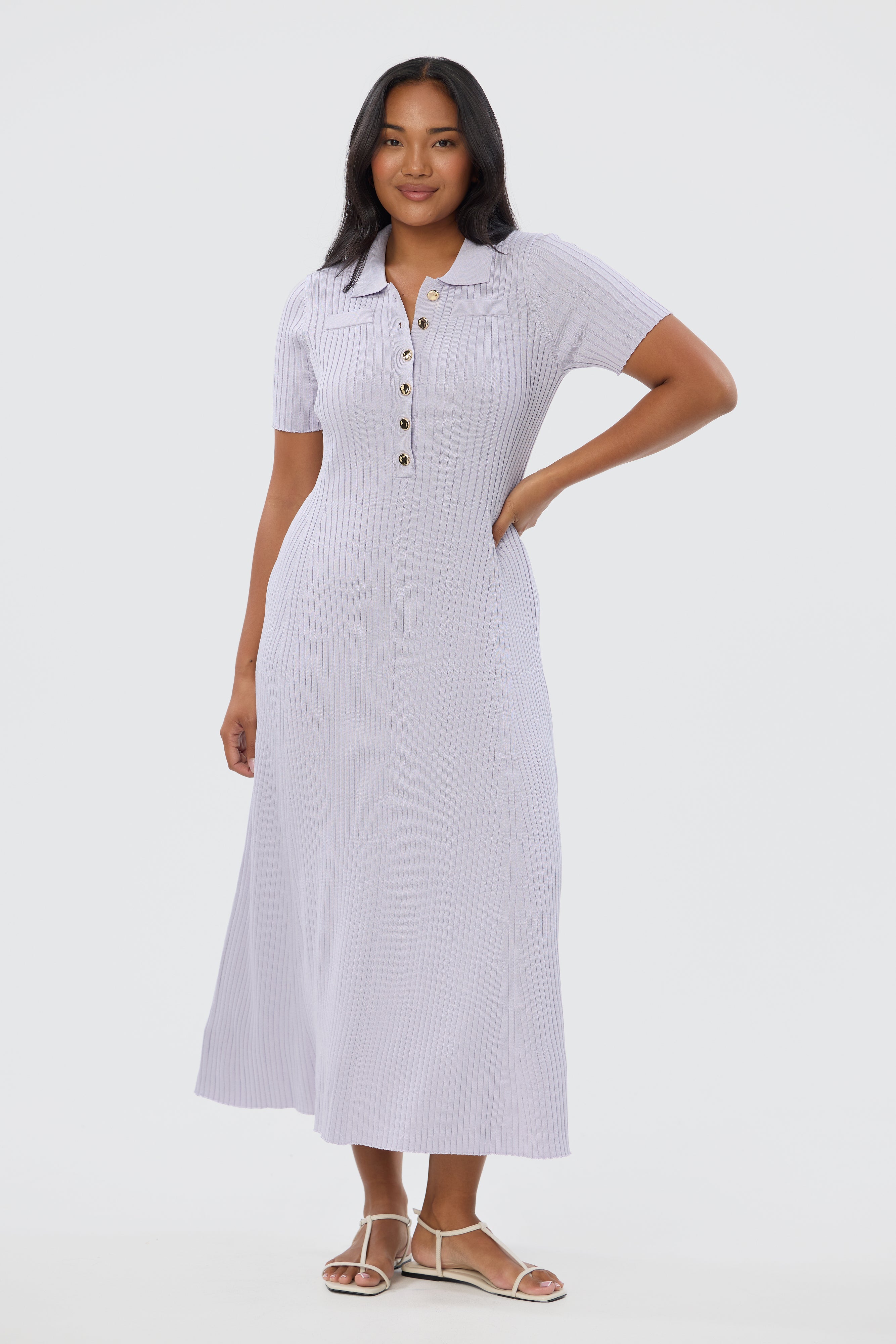 Half Placket Short Sleeve Knit Dress - Khaki Marl