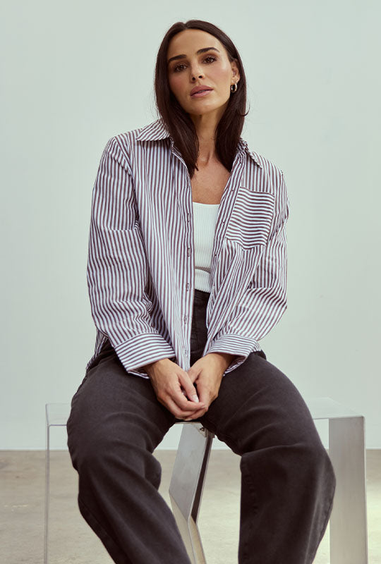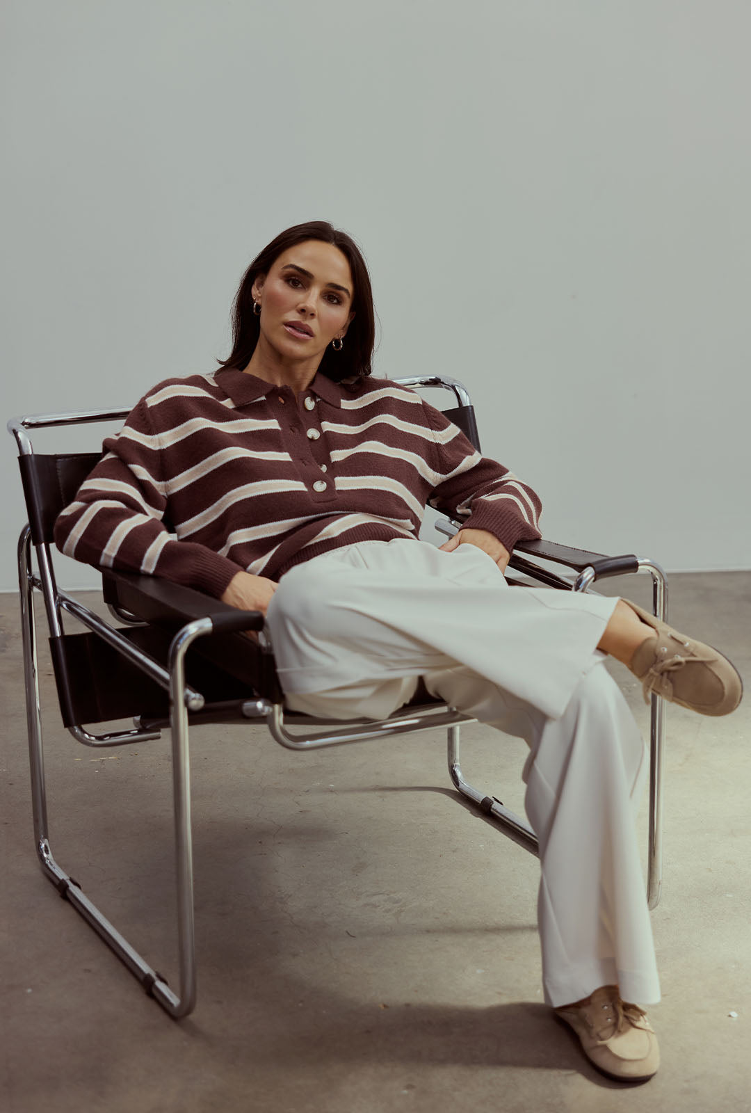Rugby Knit Jumper - Cappuccino & Ecru Stripe