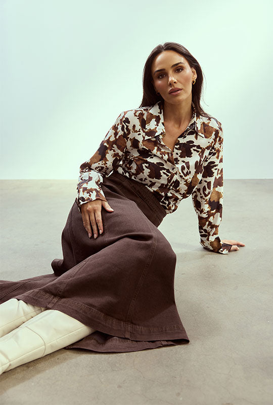 Adjustable Tie Shirt Dress - Cappuccino Animal