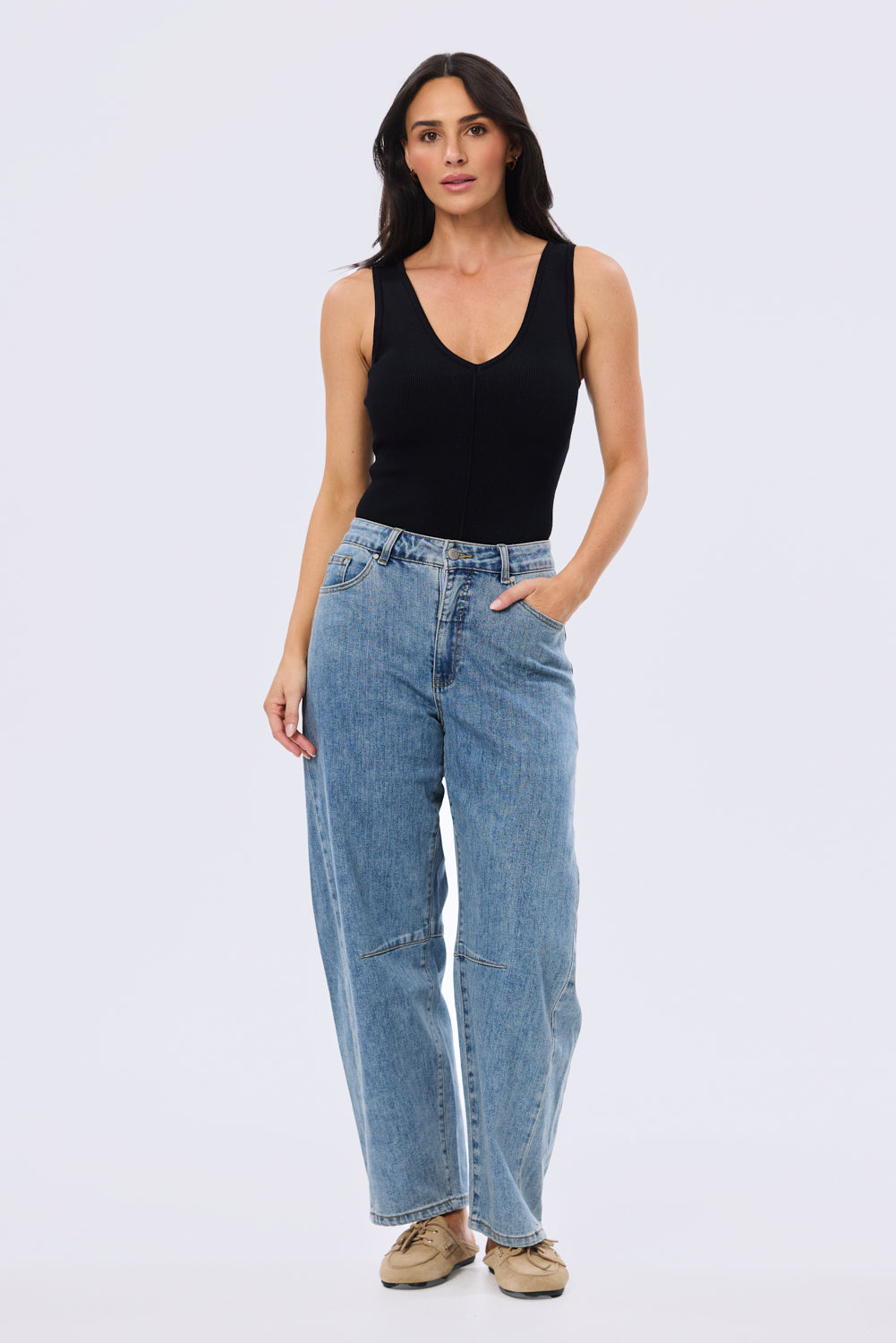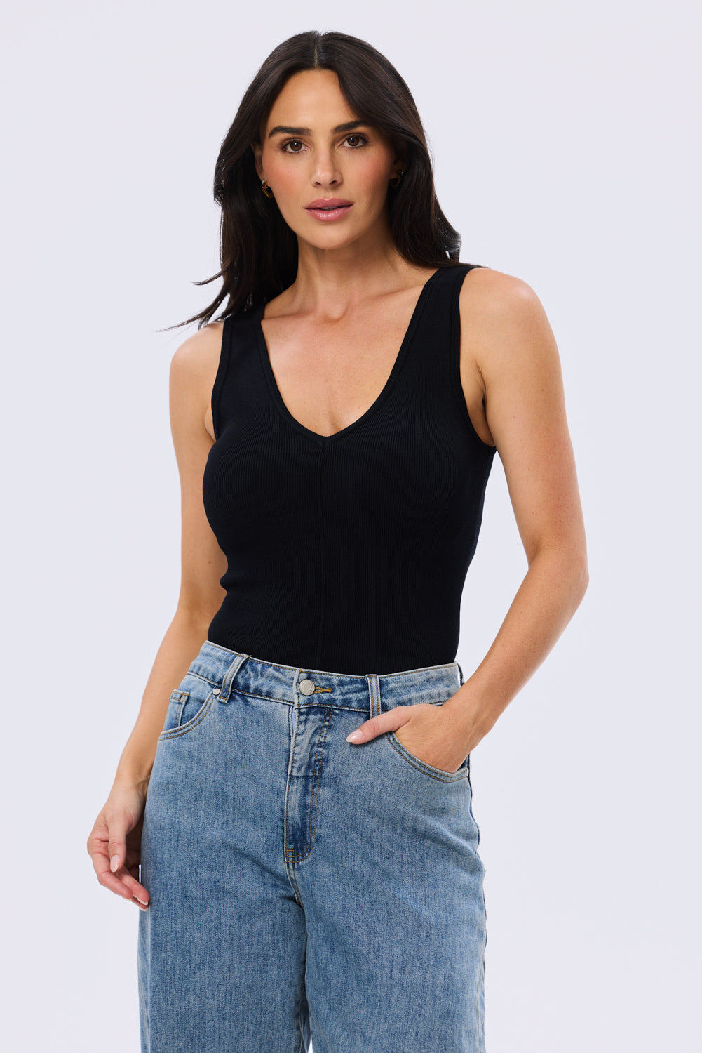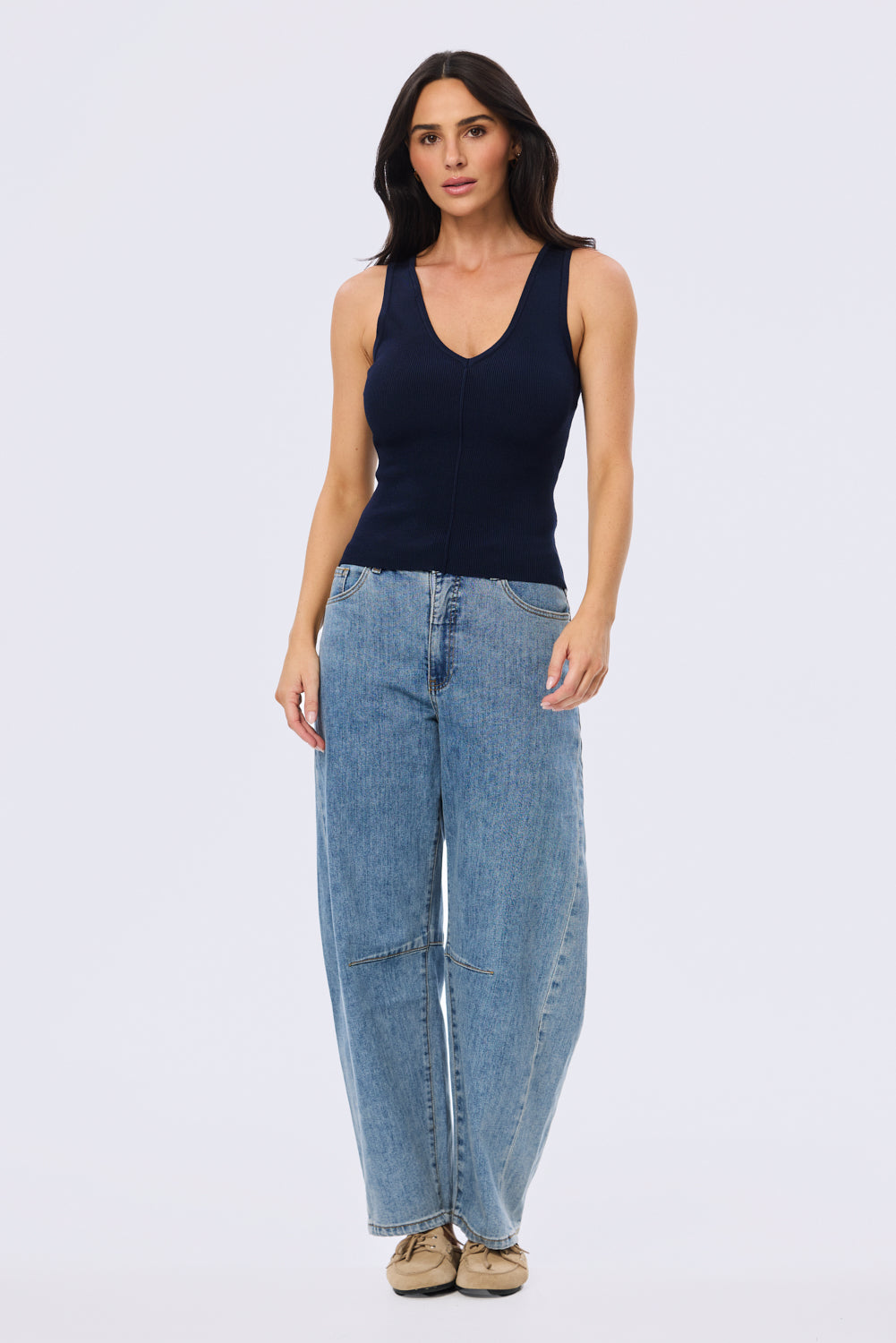 Half Placket Ribbed Tank - Biscotti/White Stripe