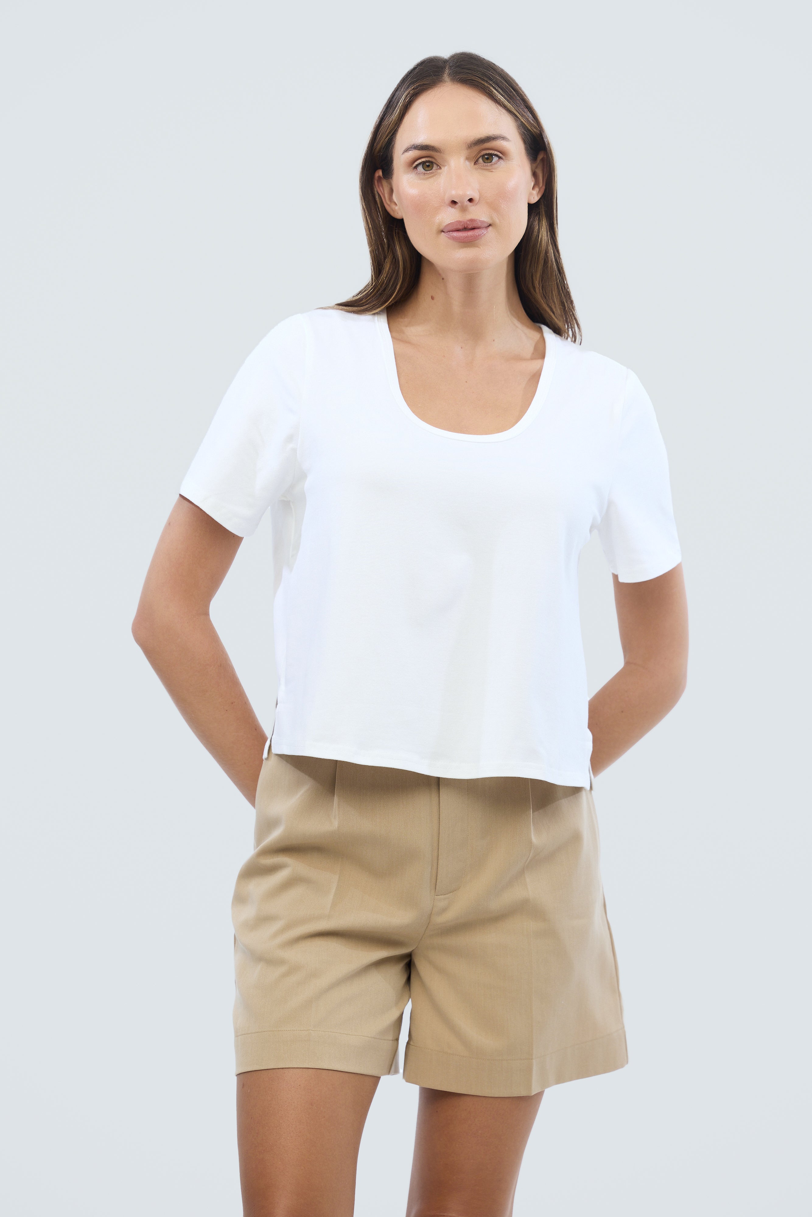 An everyday staple, the Scoop Neck T-Shirt in White is a regular-fit, mid-length style crafted in mid-weight stretch jersey, designed to pair effortlessly with everything in your wardrobe.