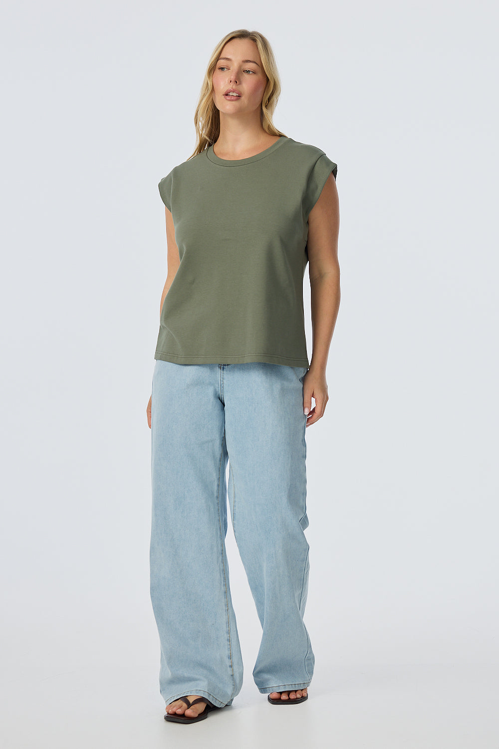 V Neck Cap Sleeve Jersey Tank - Steel Blue