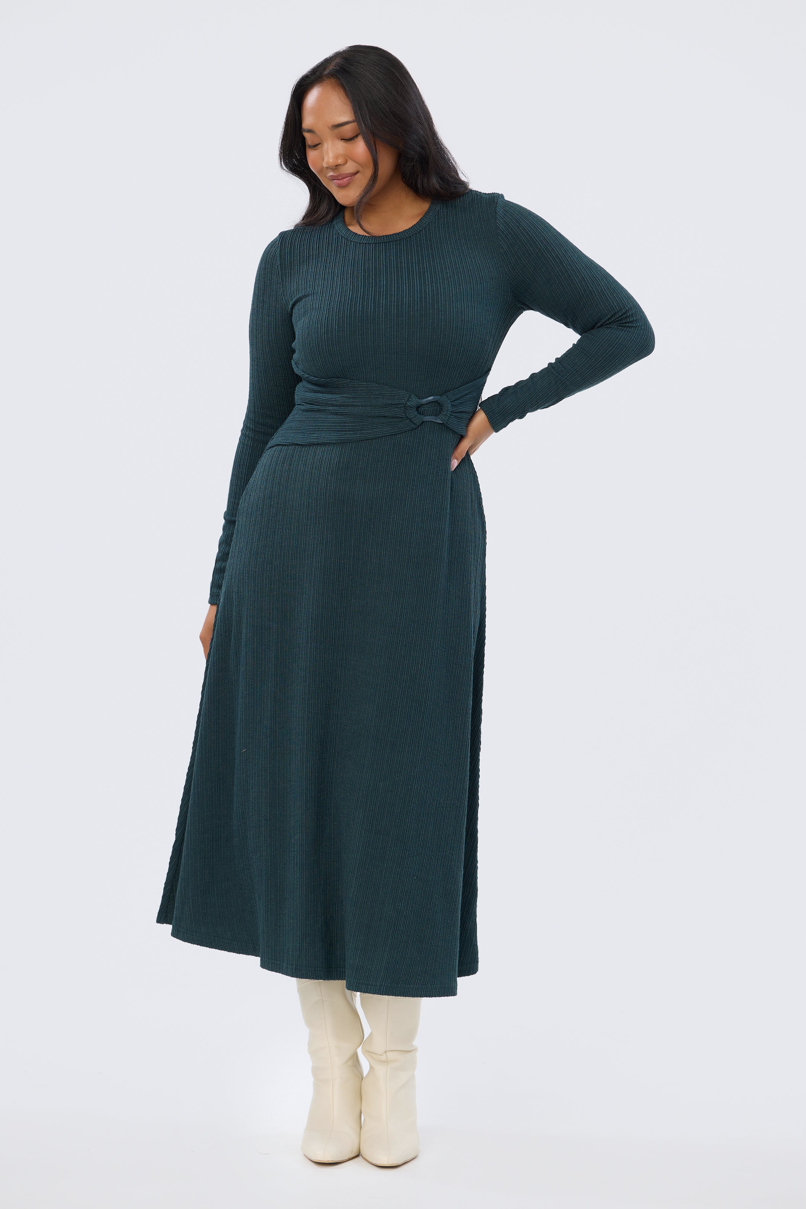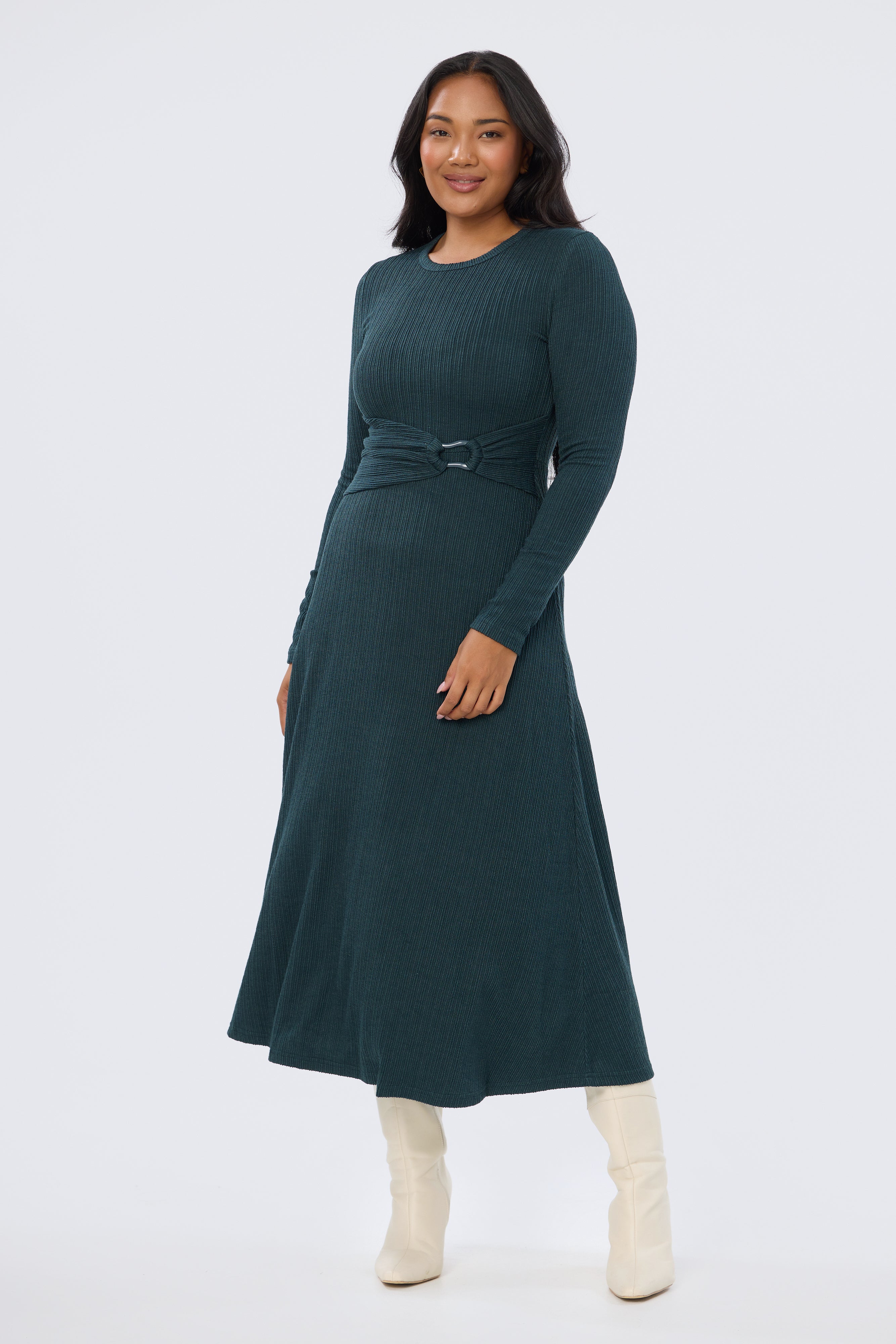 Buckle Gathered Midi Dress - Sage Marl
