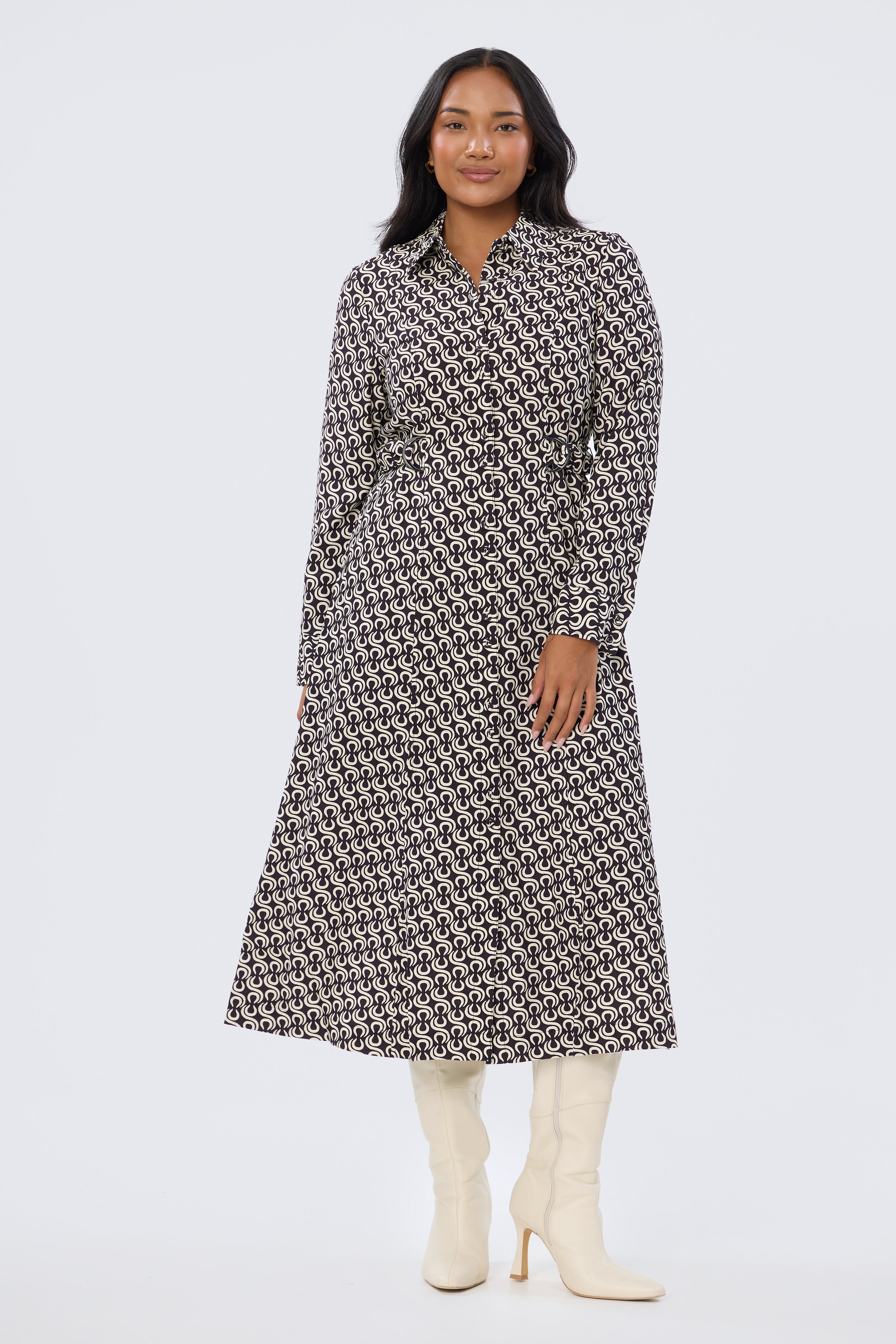 Adjustable Tie Shirt Dress - Aubergine Geo