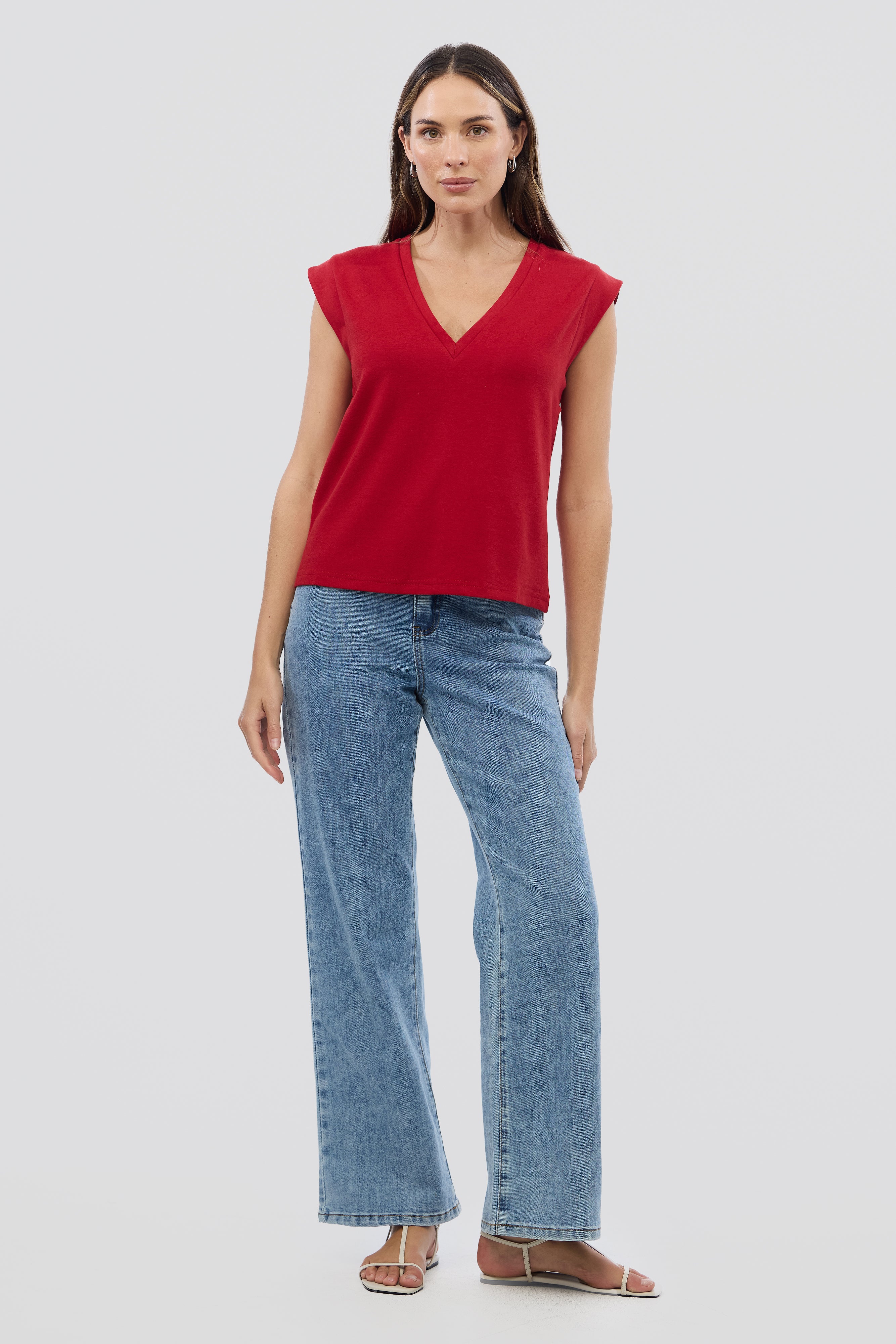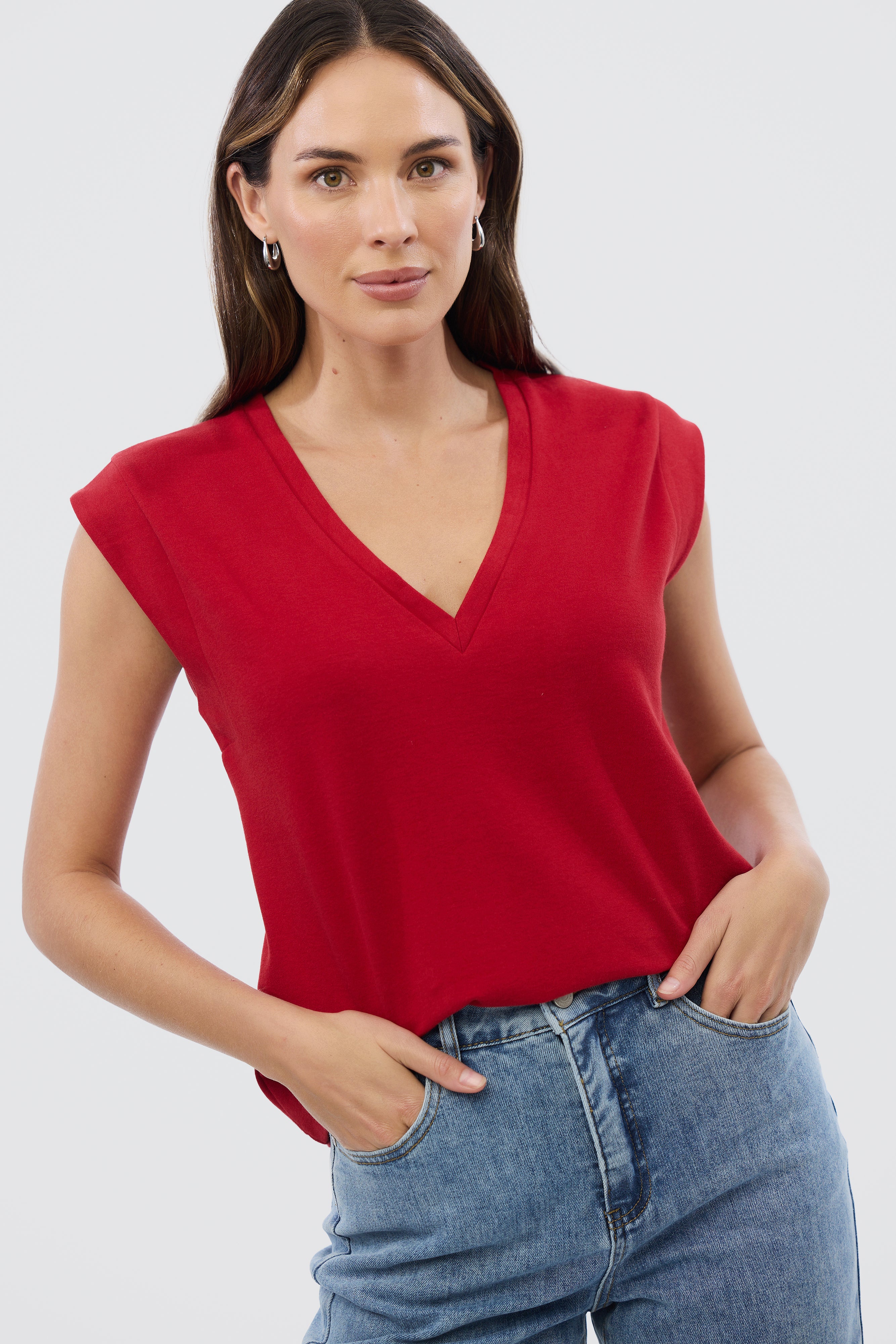 Lightweight V-Neck Cap Sleeve Tank - Flame