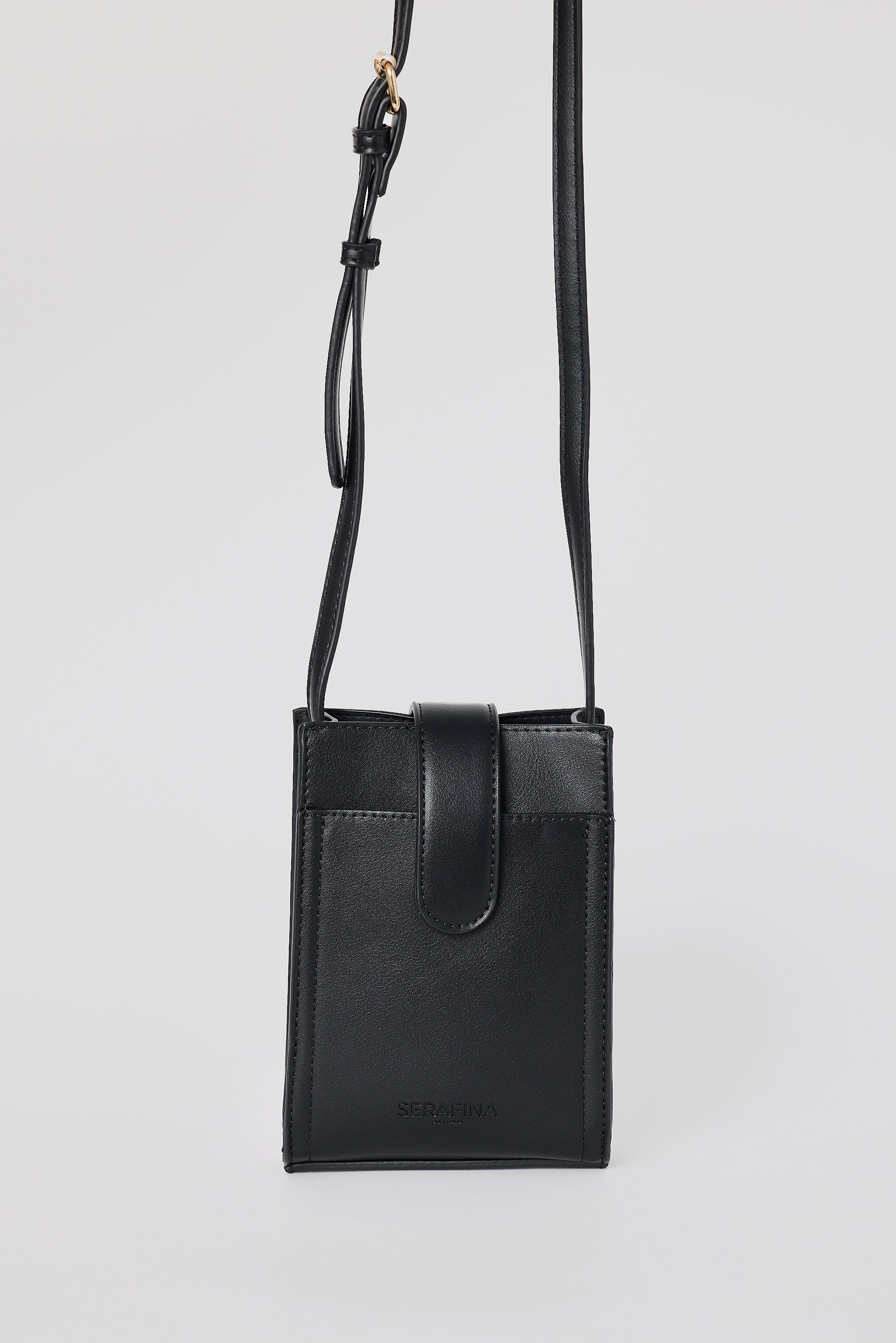 Compact and versatile, the Crossbody Sling Bag in Black is crafted from soft vegan leather and features a fold-over closure with an adjustable strap for easy, everyday wear.
