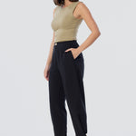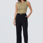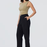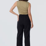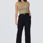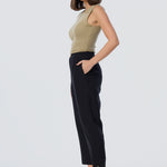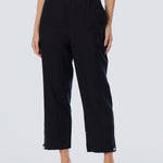The Adjustable Hem Pants in Black bring together comfort and utility in an elevated everyday style. With a cropped straight leg, high-rise fit, and adjustable hem tabs, they offer a flattering and adaptable silhouette. Designed in a breathable mid-weight fabric for all-season wear.