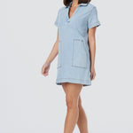 Denim Short Sleeve Mini Dress - Light Blue Wash