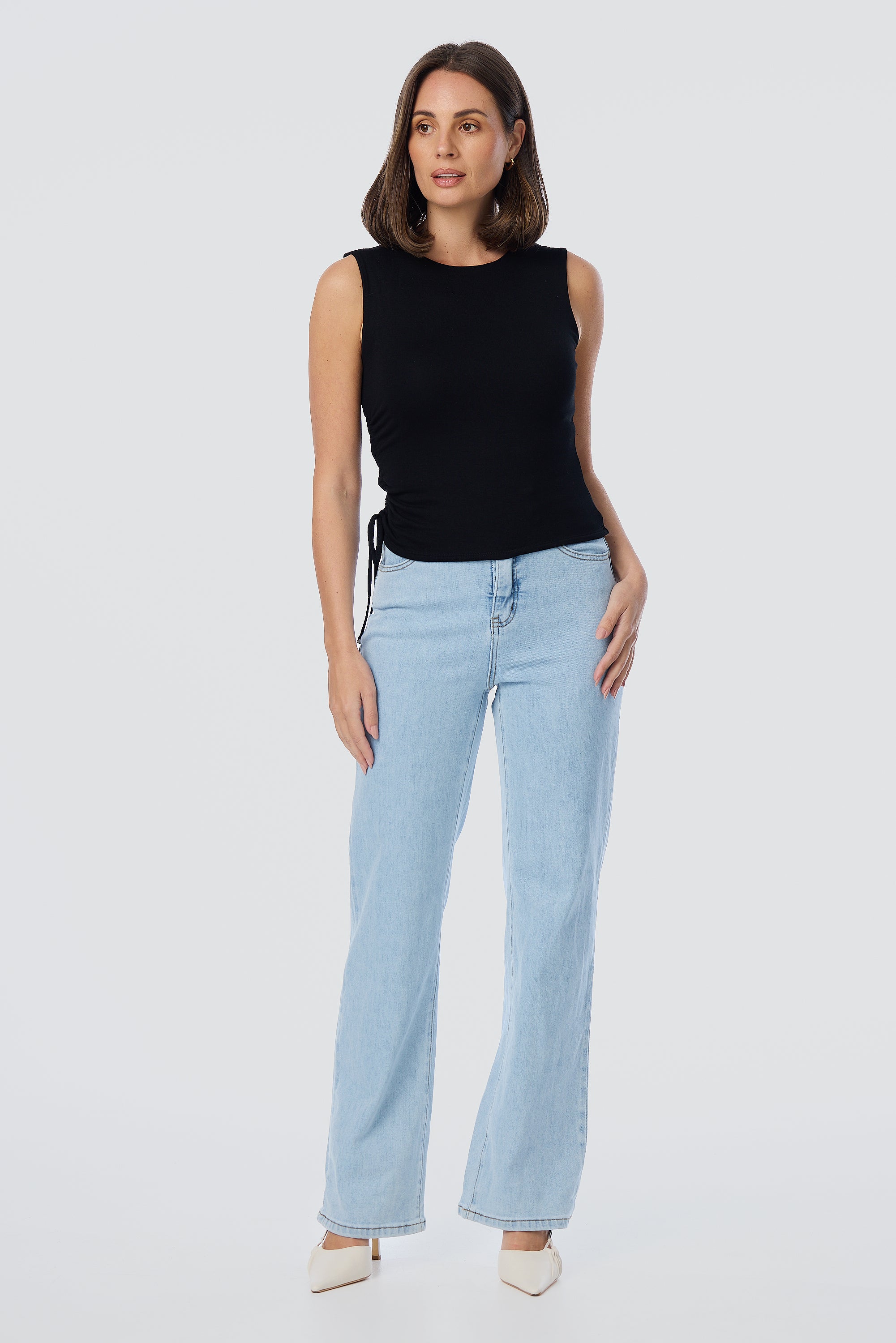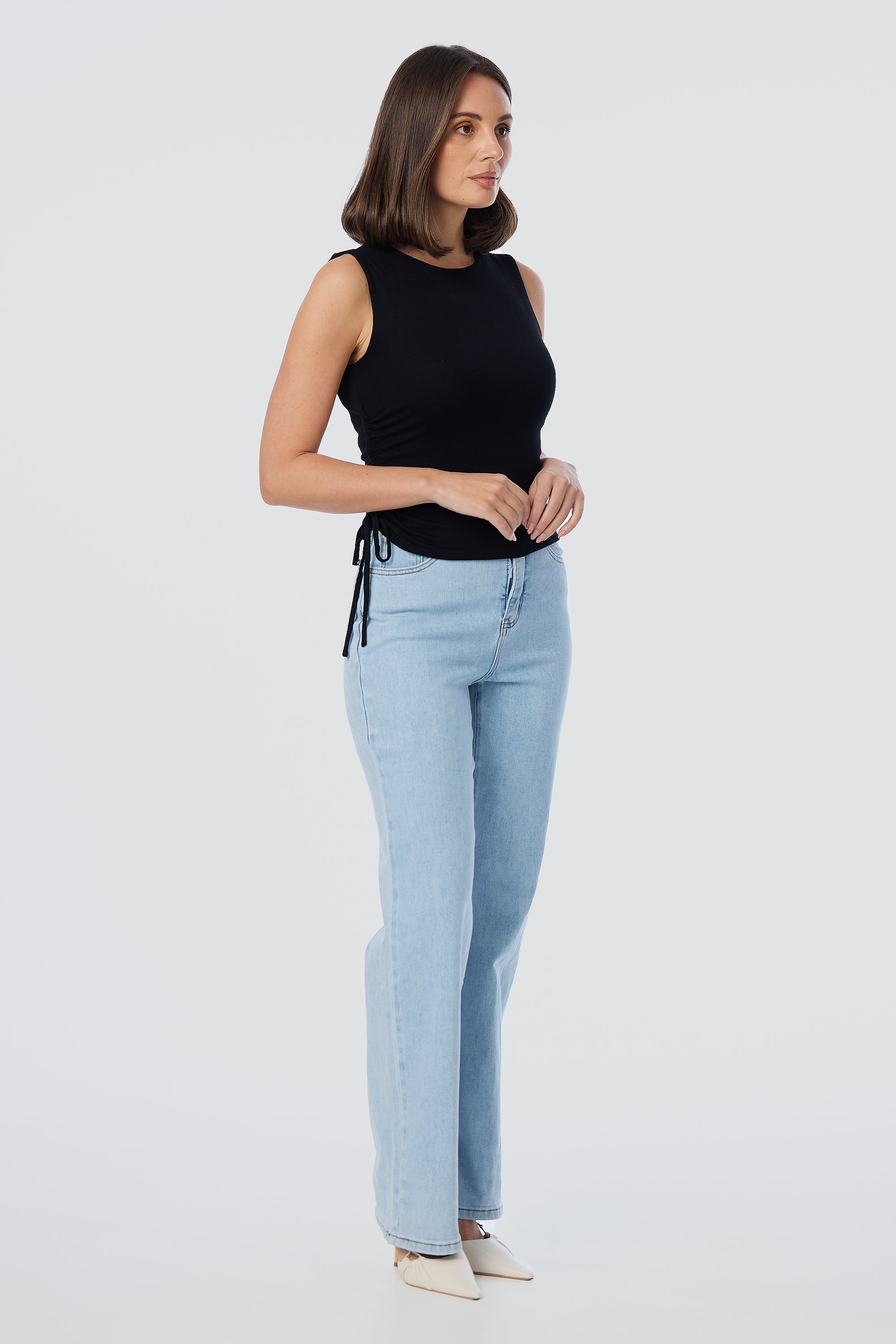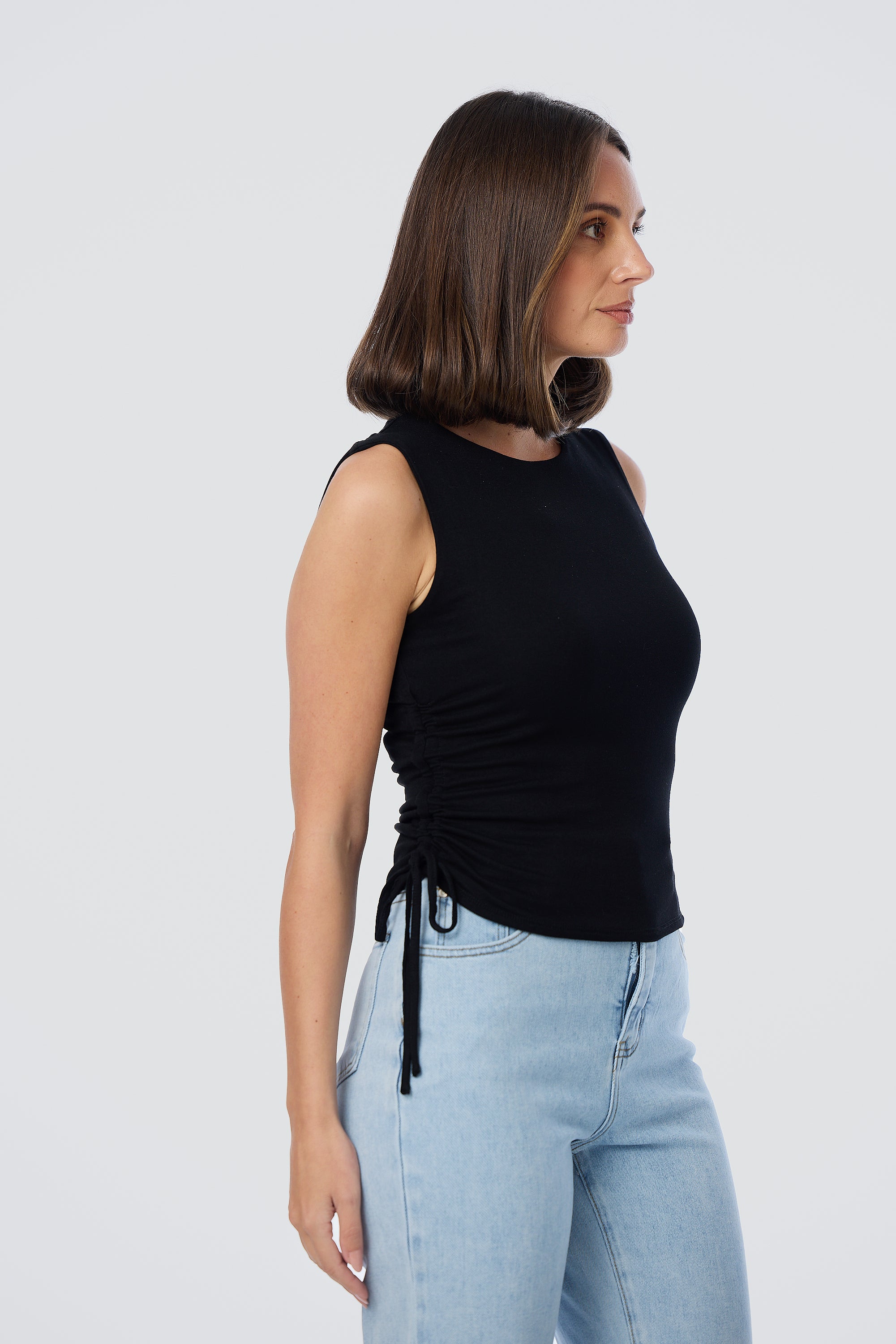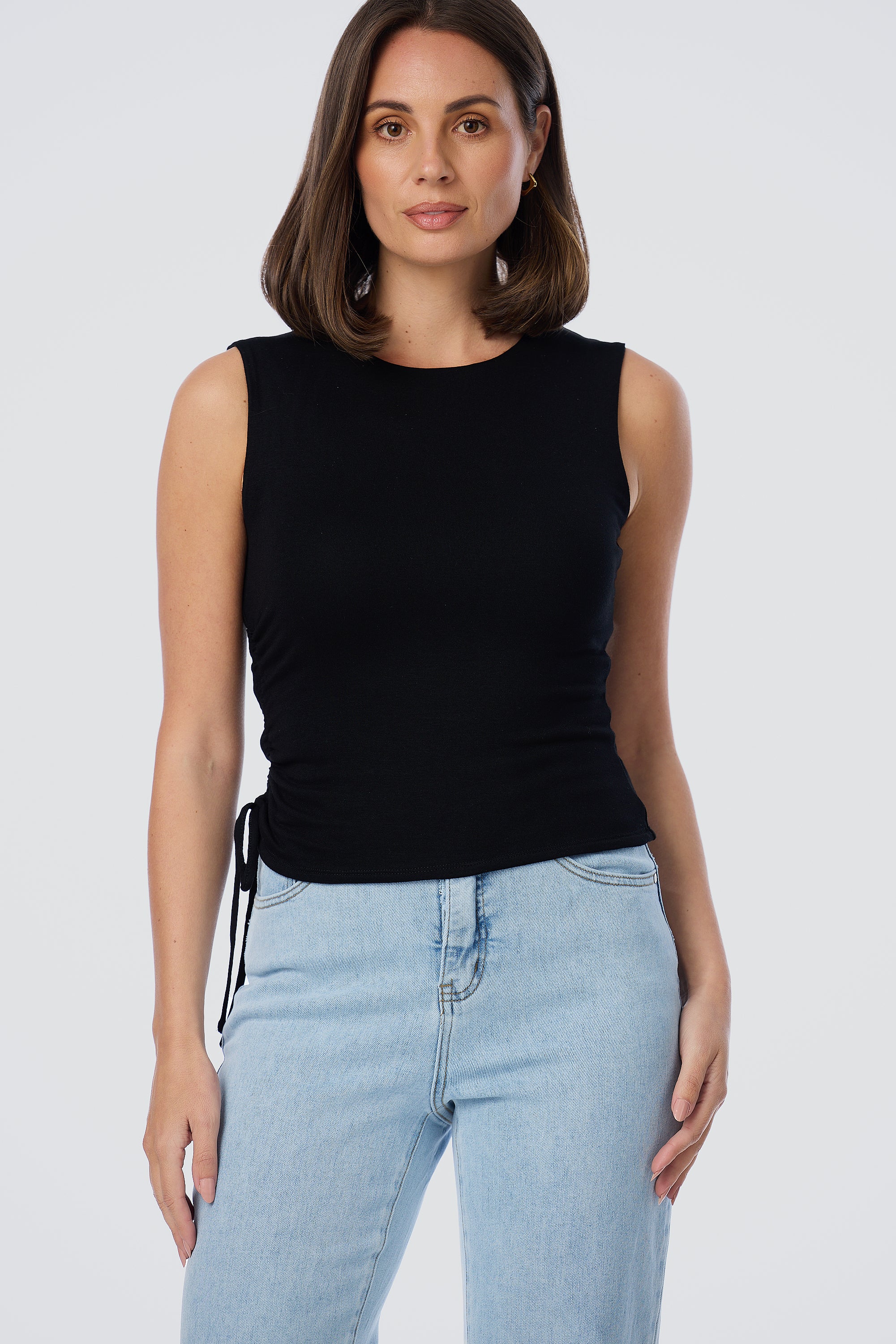 A softly structured essential, the Drawstring Top in Black is fitted with a gathered side seam for adjustable shape. Fully lined and crafted in stretch jersey, it’s perfect worn on its own or layered under jackets.