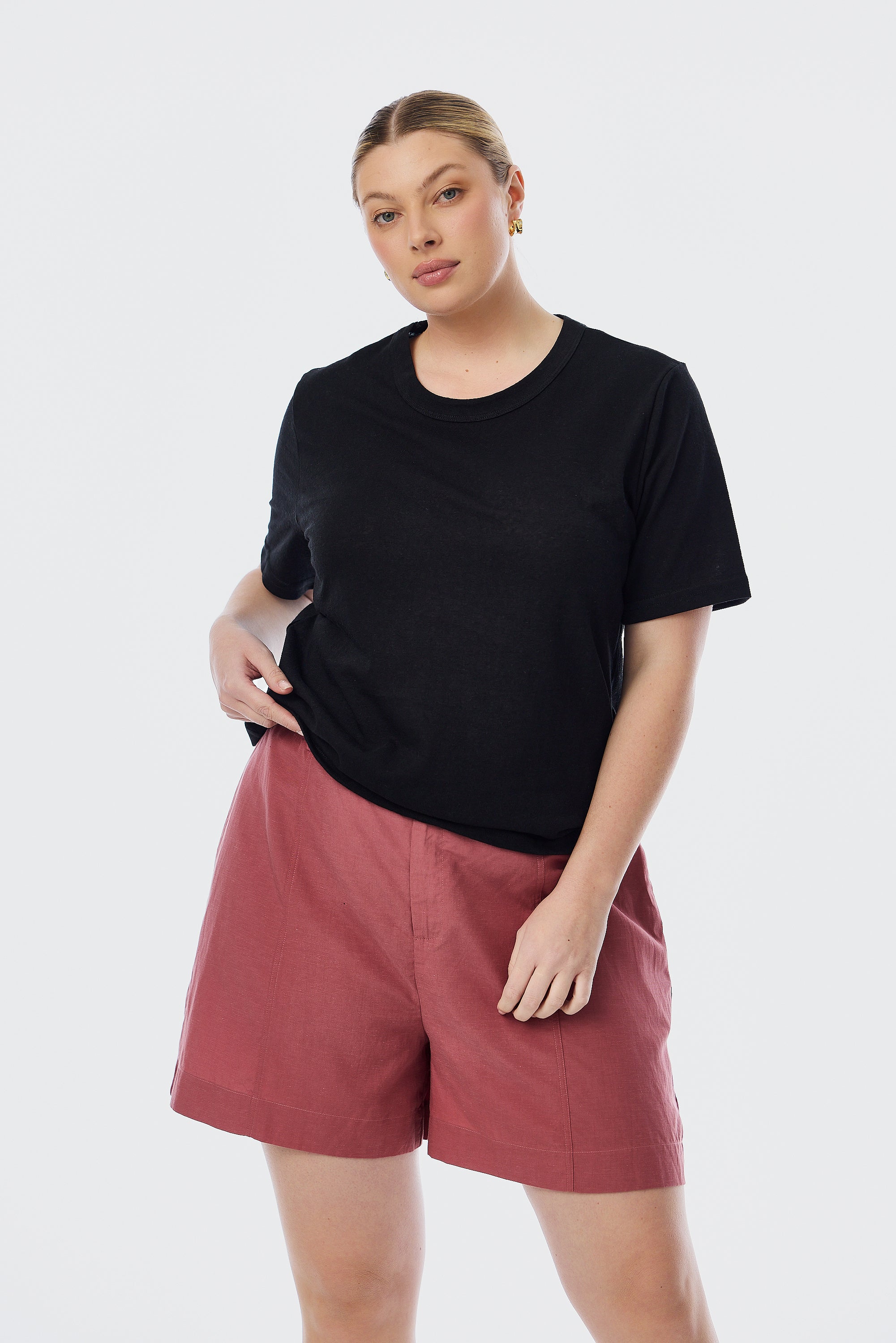 Minimalist and effortlessly versatile, the Lightweight Regular T-Shirt in Black is an everyday essential. Featuring a classic crew neckline and short sleeves, it offers a comfortable regular fit and length in a soft mid-weight stretch jersey. Perfect for pairing with everything from jeans to skirts.