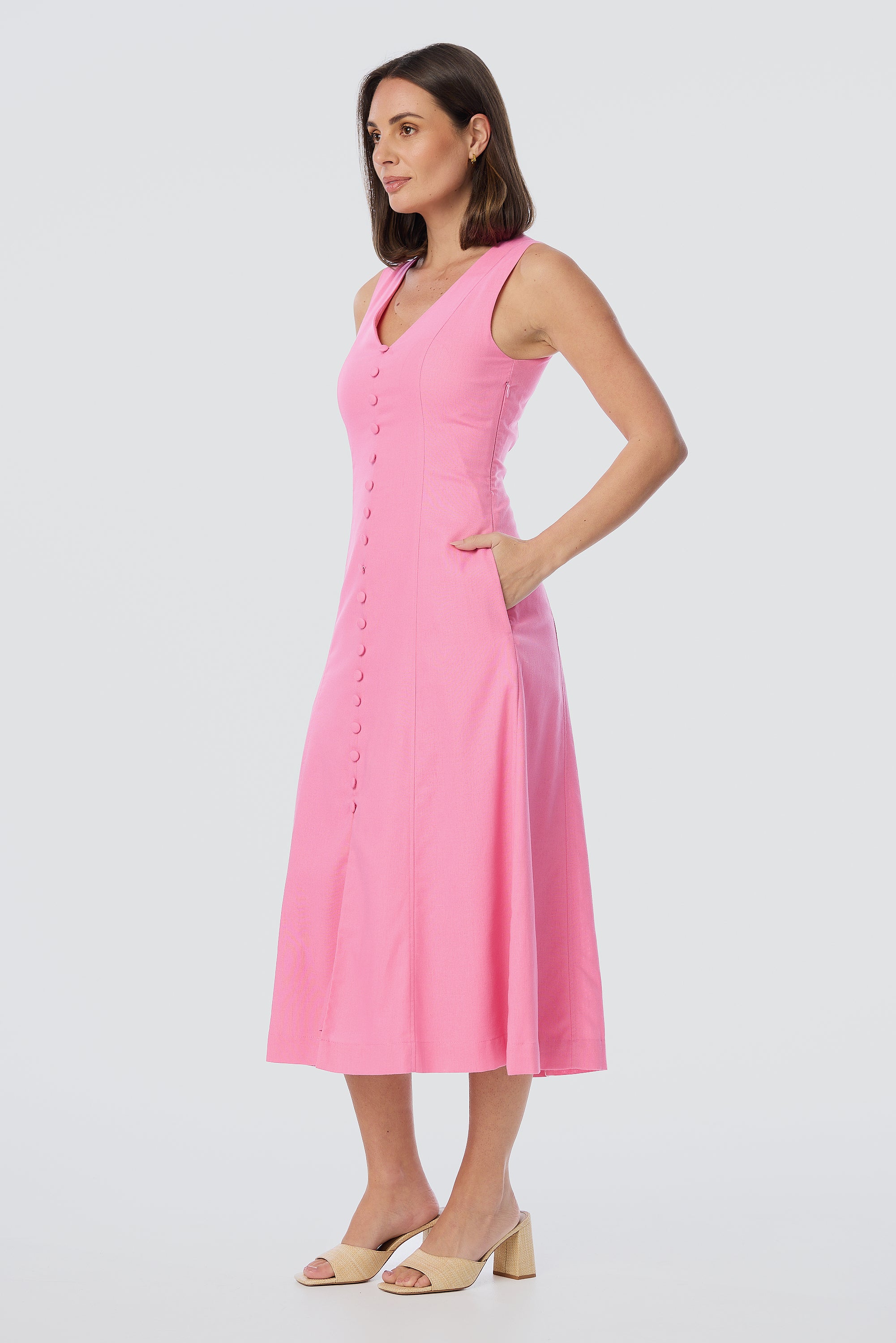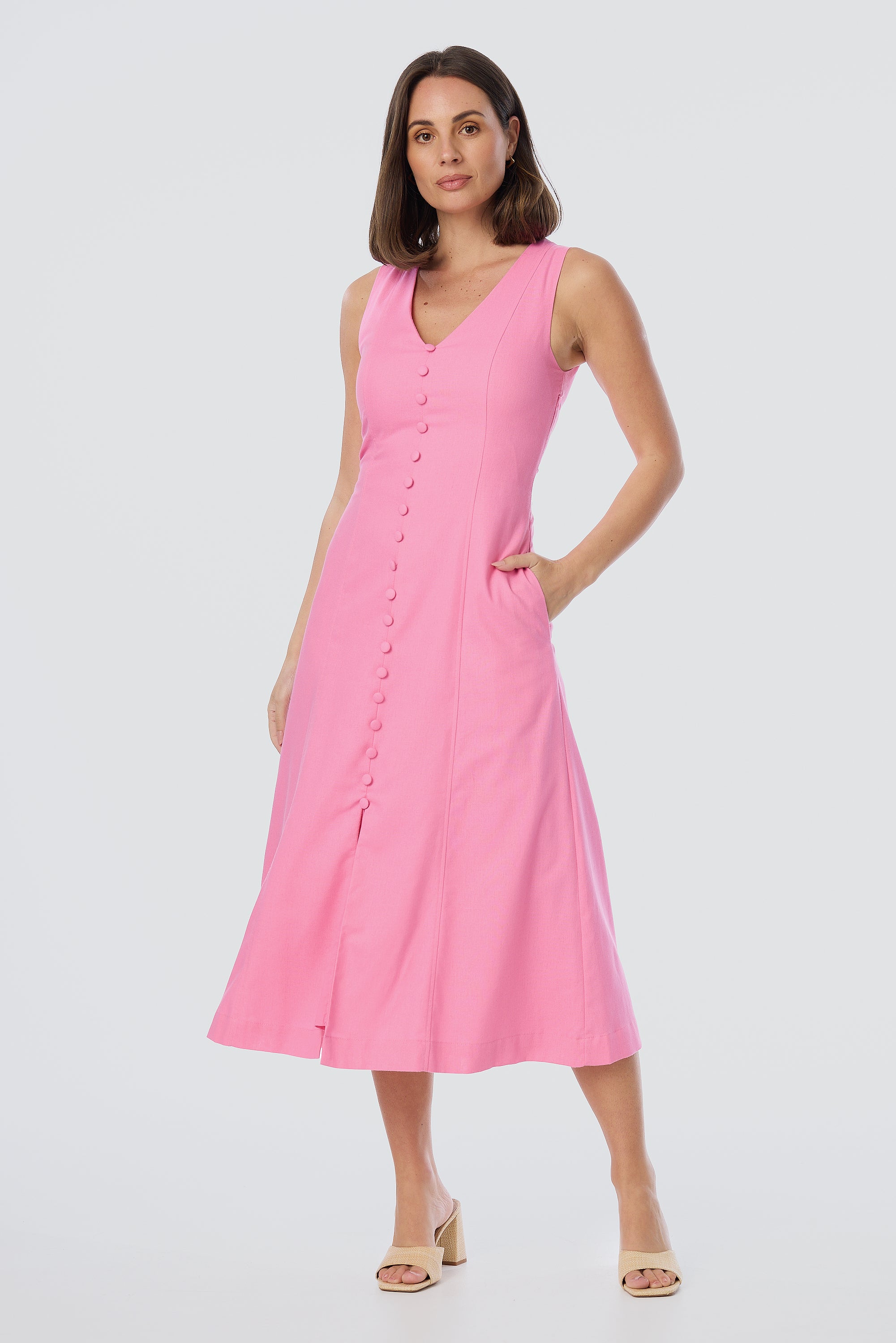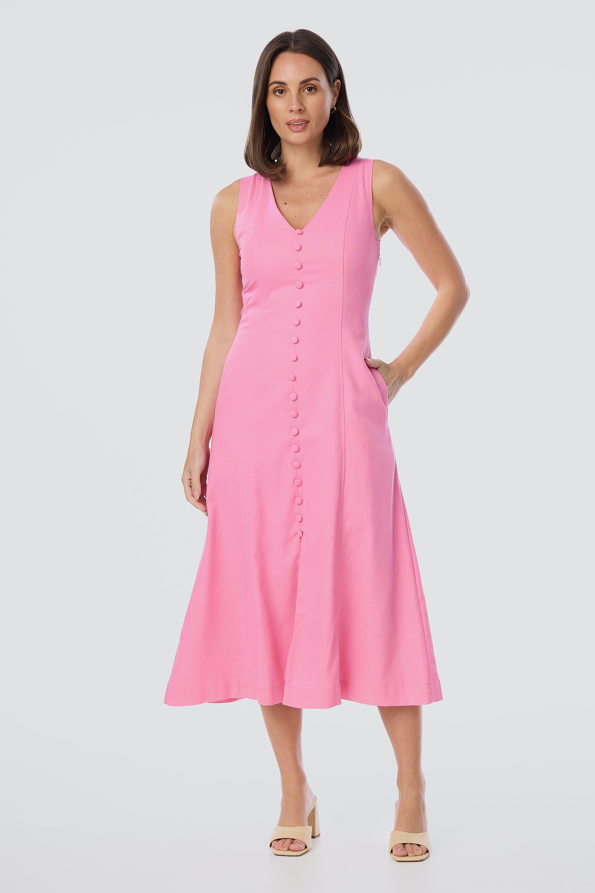 - Shelley C.Verified BuyerReviewingSleeveless Buttoned Dress - PinkI recommend this productUsual Size 12Size Purchased 12Rated 5 out of 5 stars3 minutes agoPink sleeveless dress