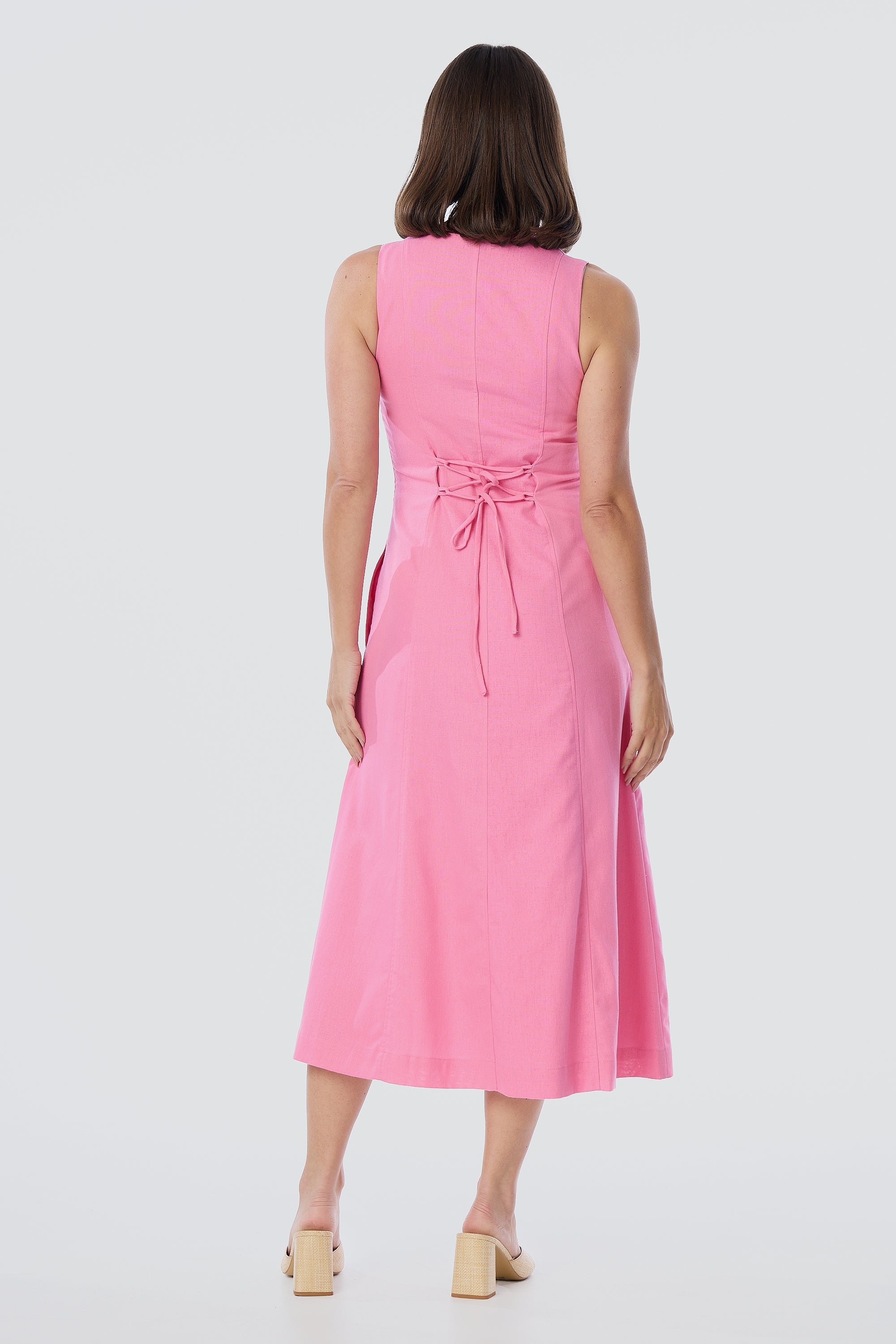 Sleeveless Buttoned Dress - Pink