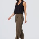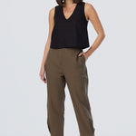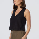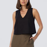 V Neck Topstitched Tank - Black