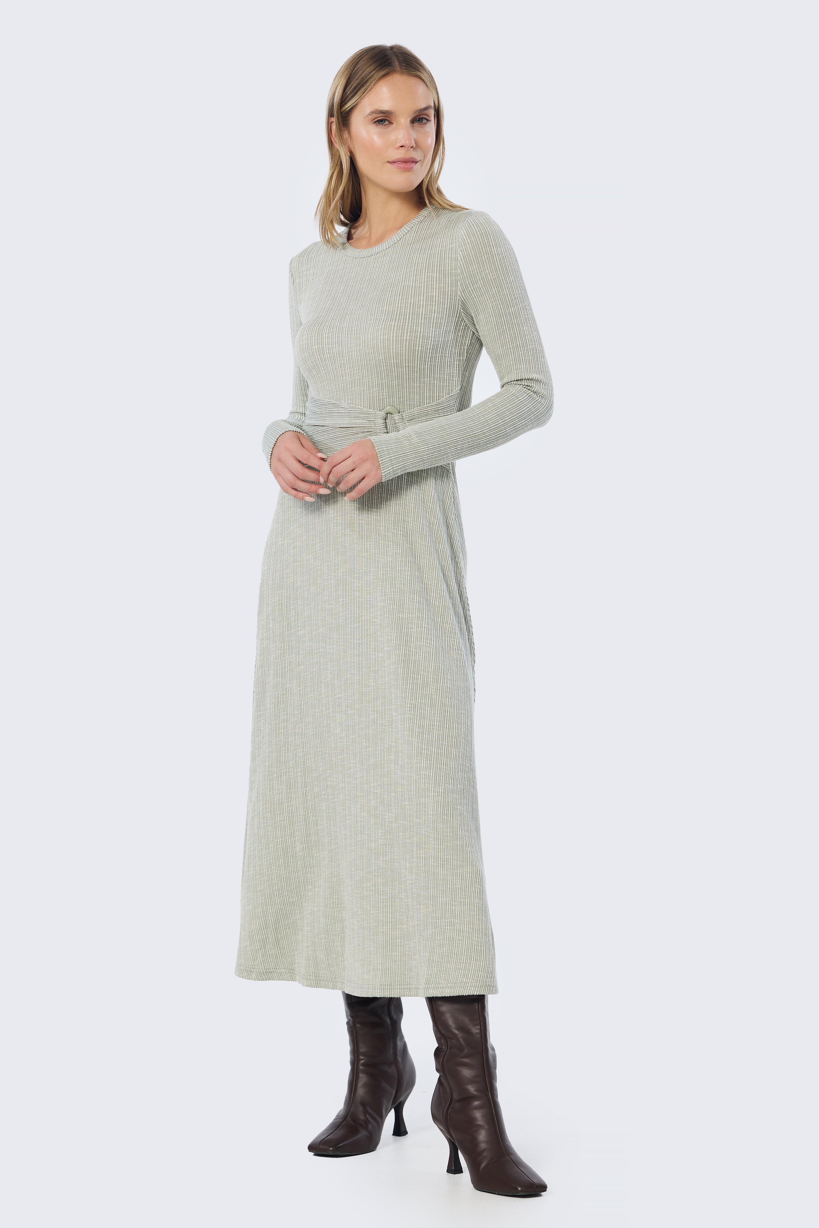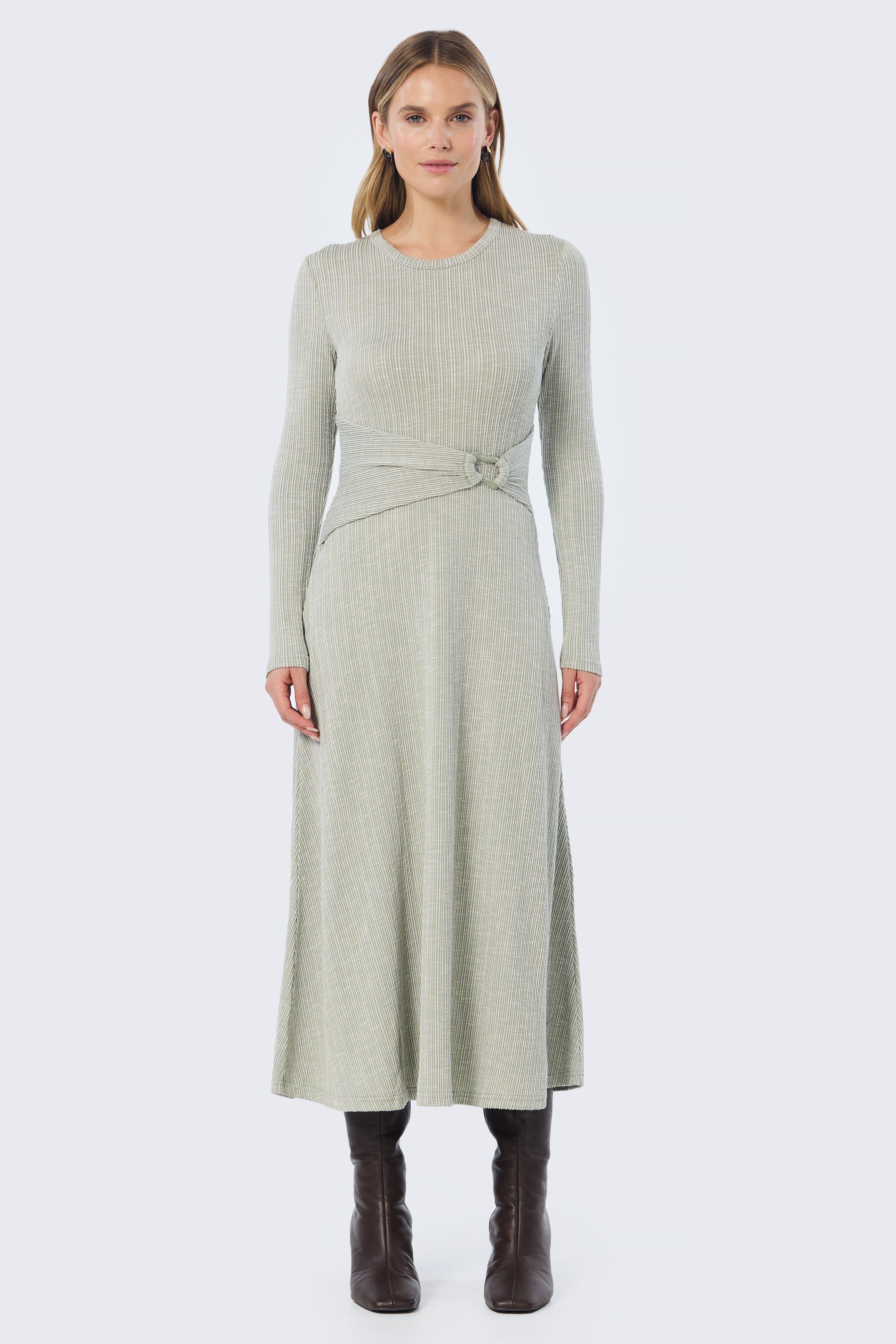 Buckle Gathered Midi Dress - Sage Marl