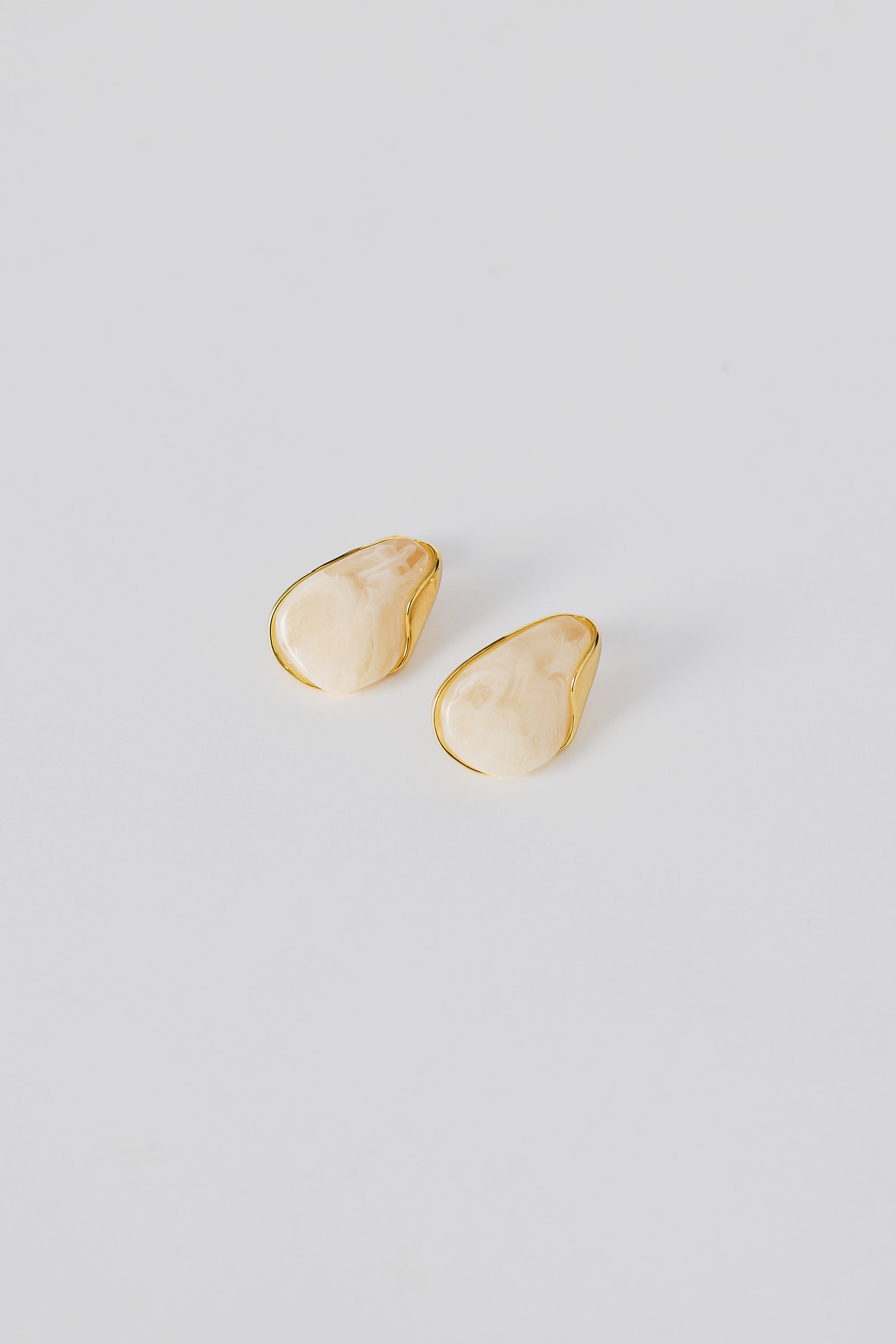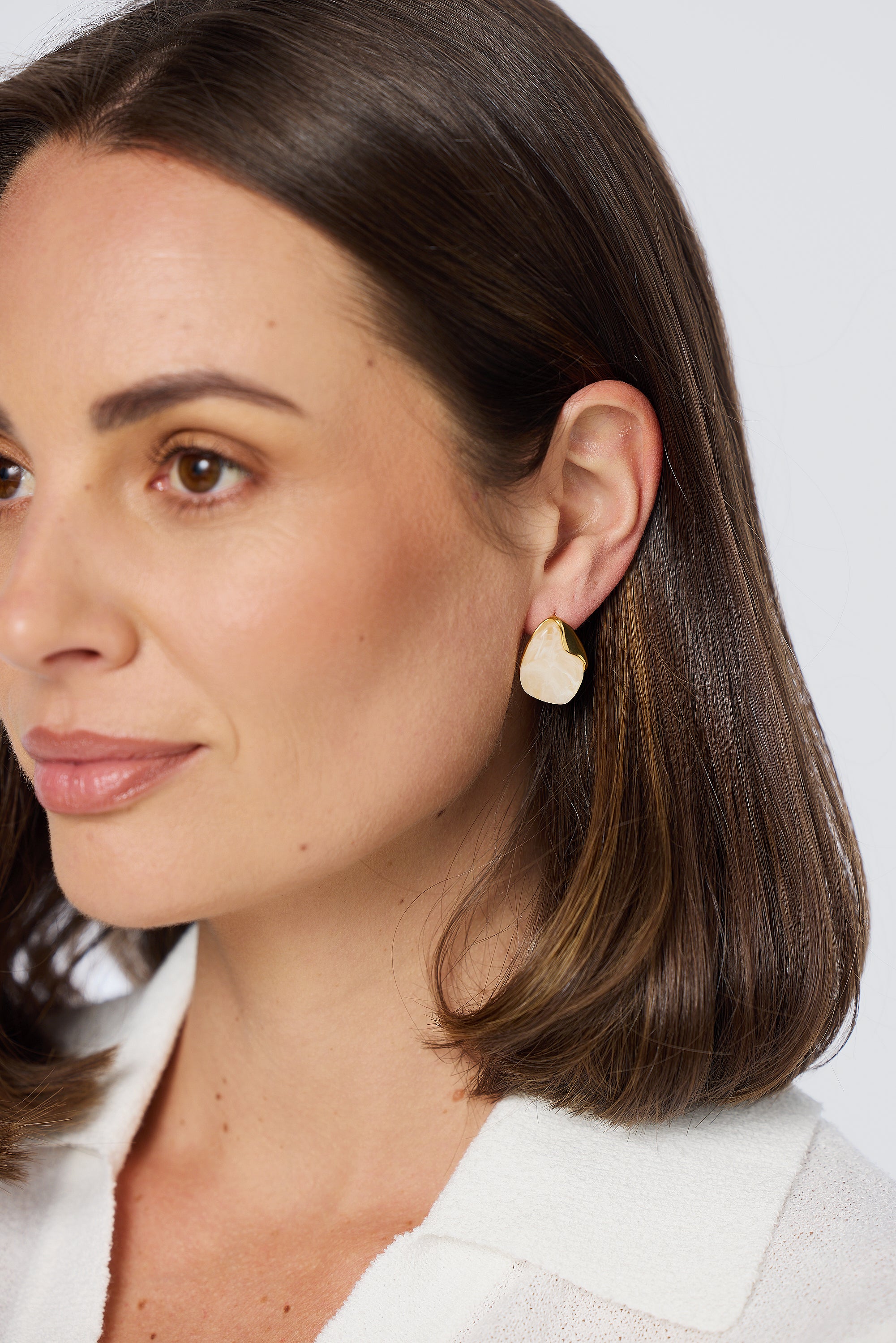 The Resin Stone Earrings in Ecru blend sculptural shape with subtle tone. Crafted from resin and finished with 18k gold-plated copper for effortless, everyday polish.