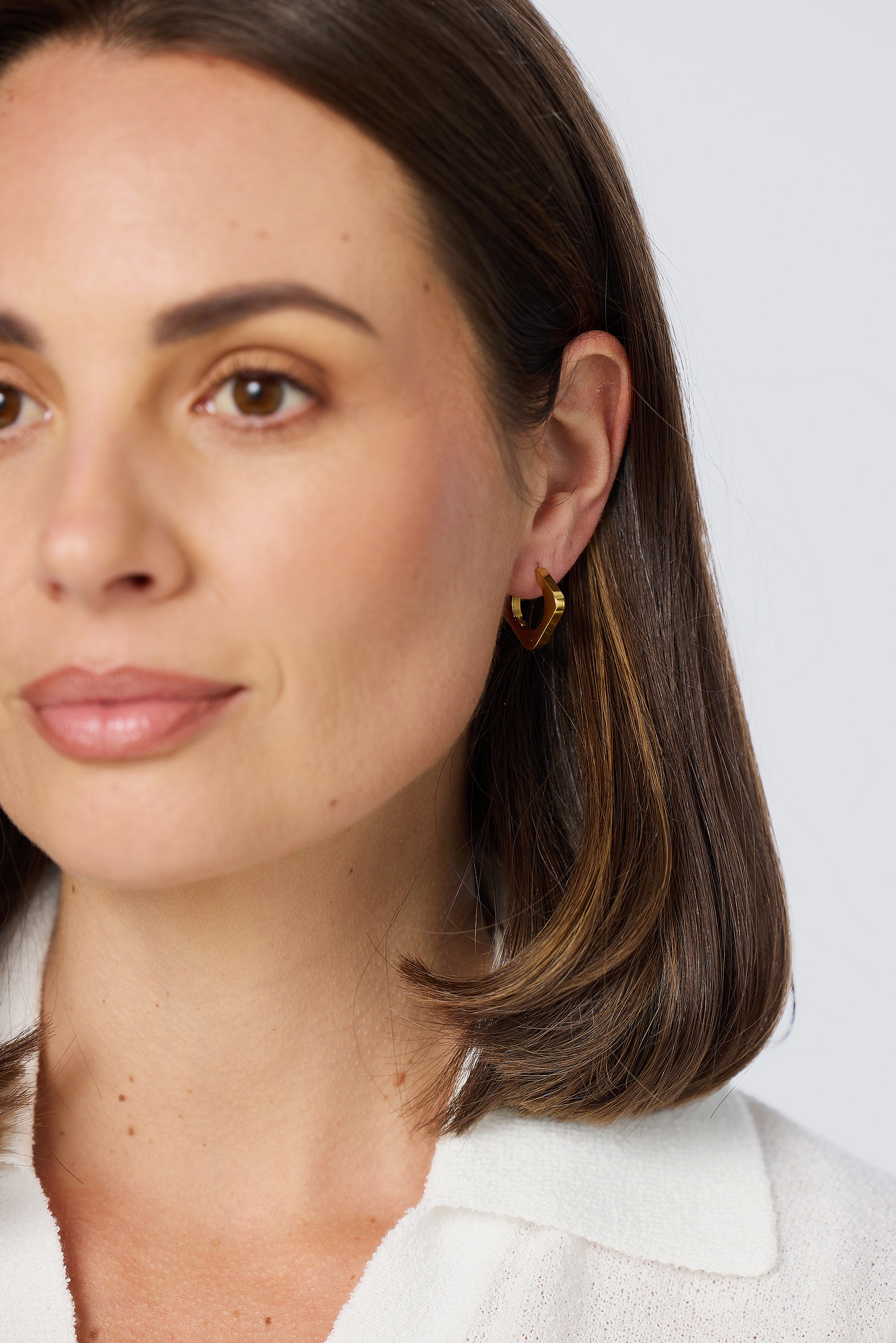 The Square Hoop Earrings in Gold make a sleek, geometric statement. Finished in 18k gold and nickel free for standout style with everyday comfort.