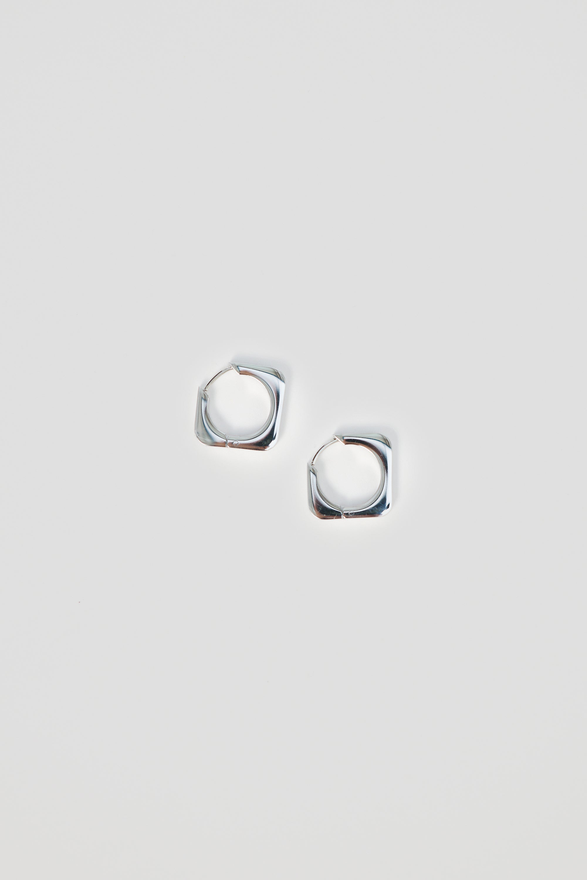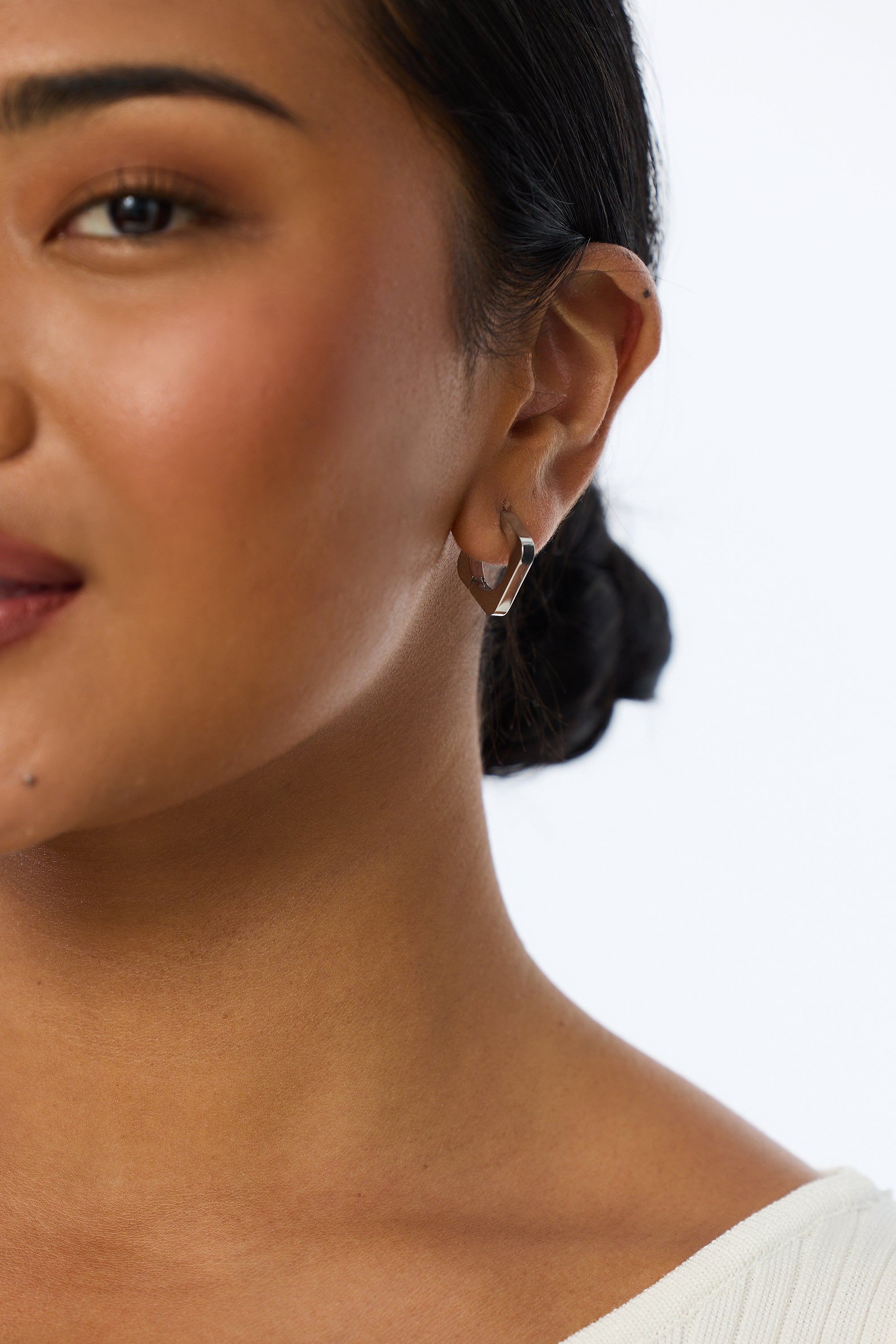 The Square Hoop Earrings in Silver make a sleek, geometric statement. Finished in 18k gold and nickel free for standout style with everyday comfort.