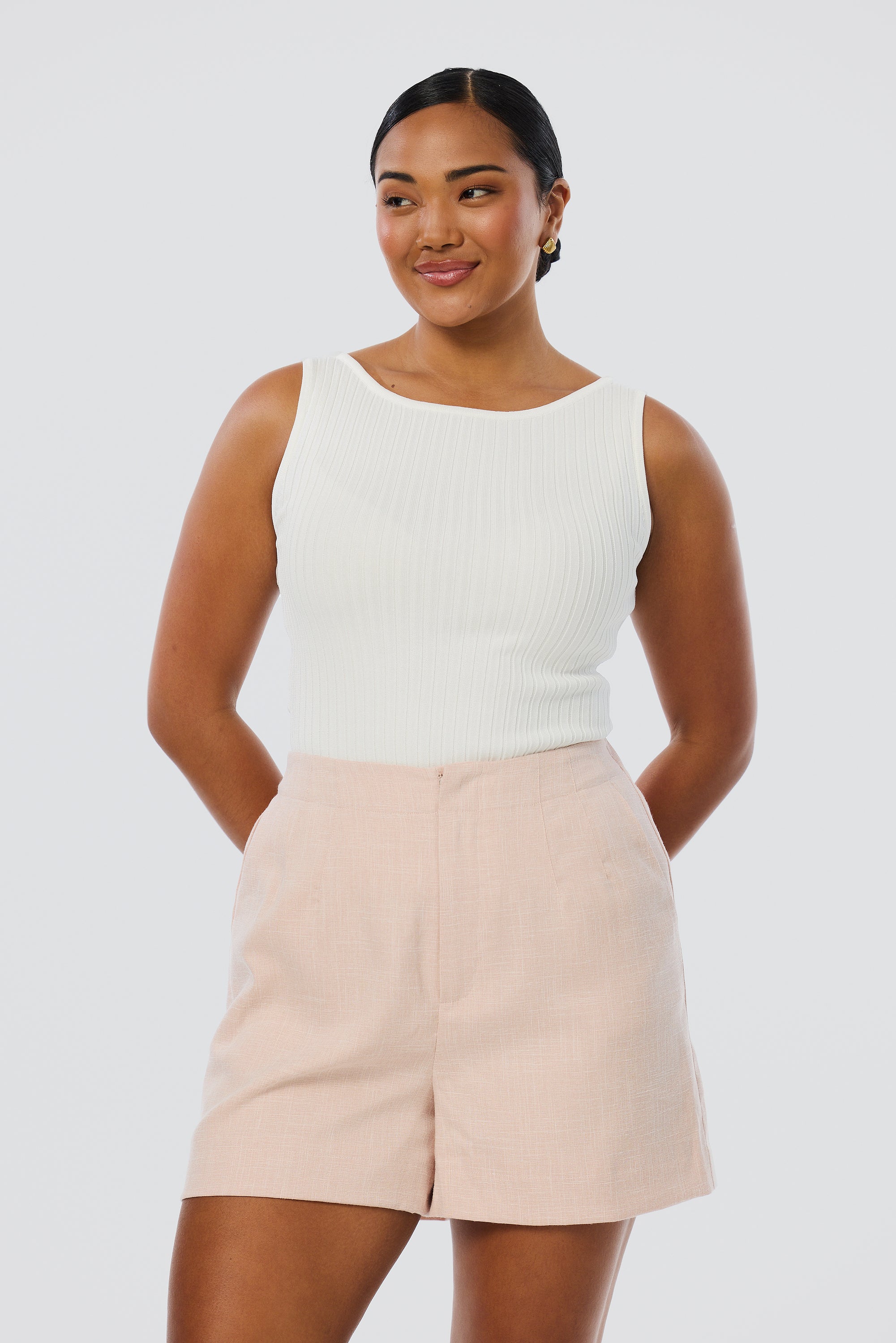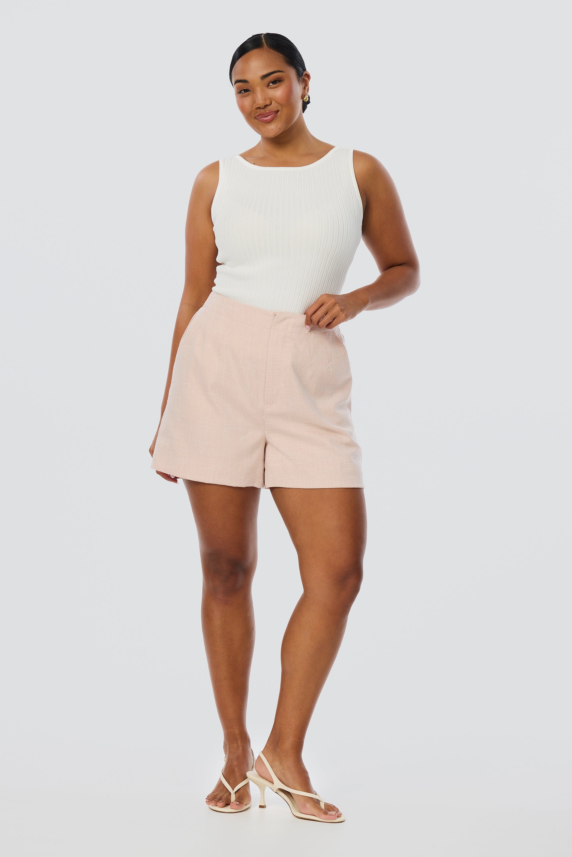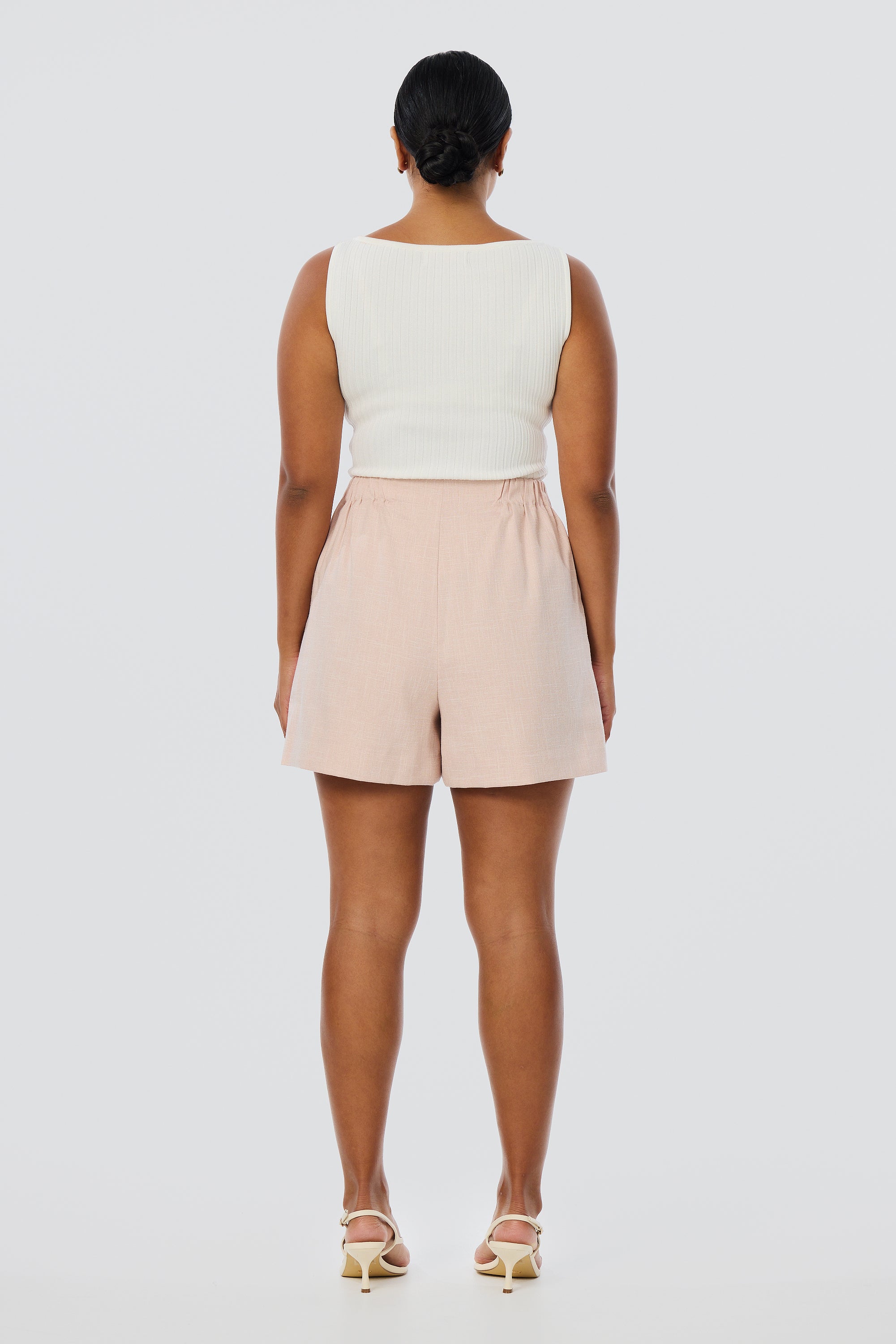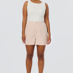 Polished and structured, the Tailored Shorts in Pink Clay offer a flattering A-line shape with subtle pleat details and tailored finishing. A mid-thigh length and full lining ensure comfortable, all-day wear.