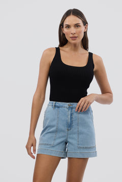 Super cute cropped tank. Perfect for my short torso. Will be wearing this a lot throughout summer.