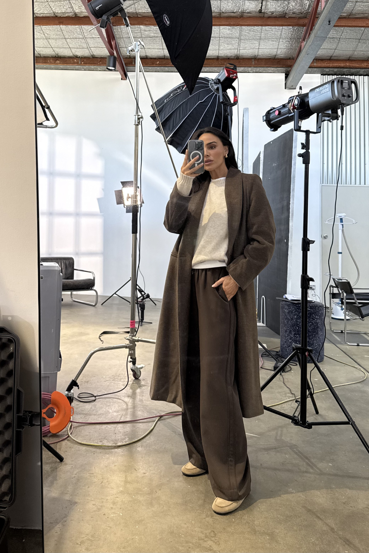 The Double Breasted Coat in Chocolate is a timeless outerwear staple designed for refined layering. Crafted from a soft, heavy-weight coat fabric and fully lined for comfort, it features a classic double-breasted button closure with resin tortoiseshell buttons. Finished with functional welt pockets, and a back hem vent, the 3/4 length offers a polished look, perfect for cooler days.