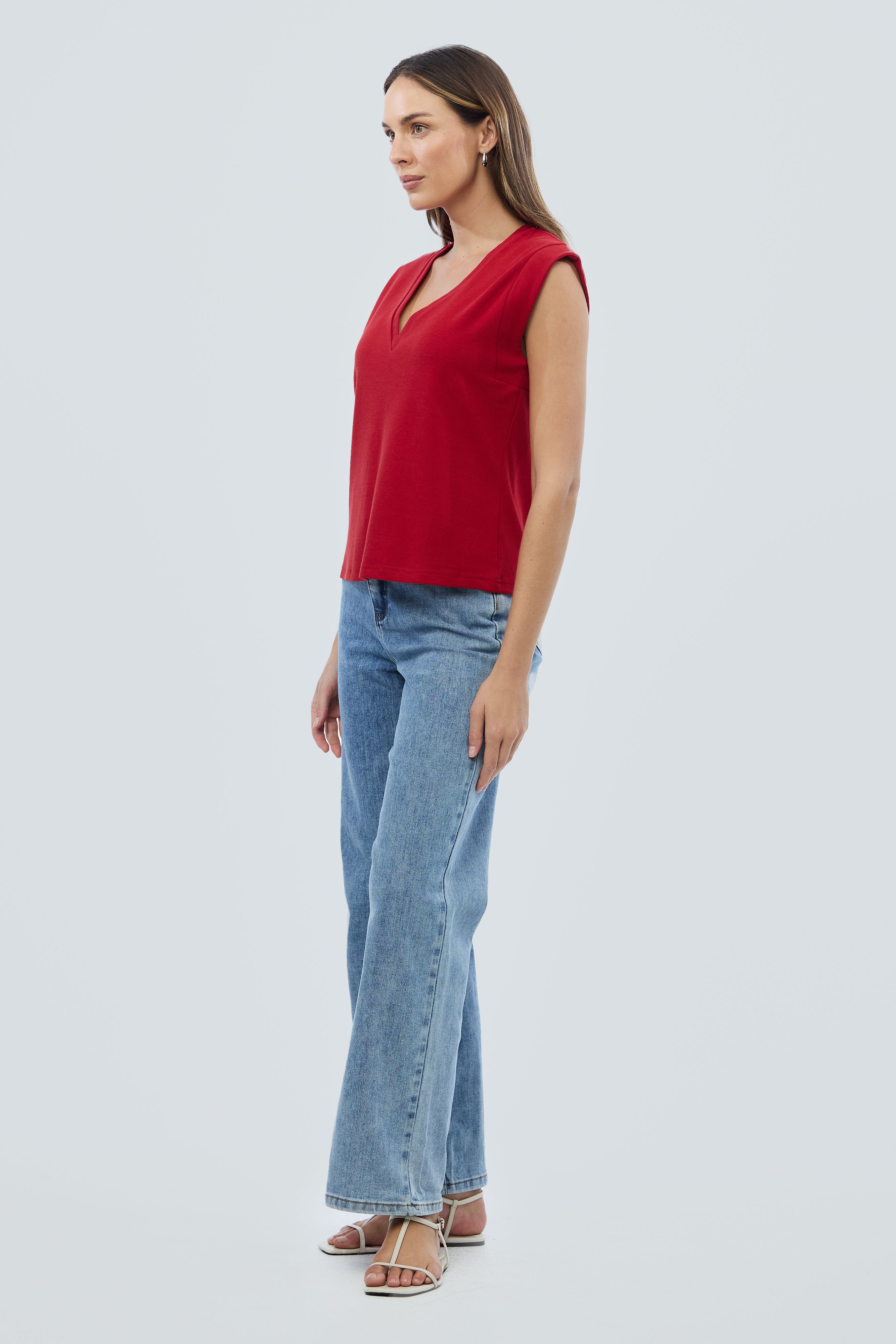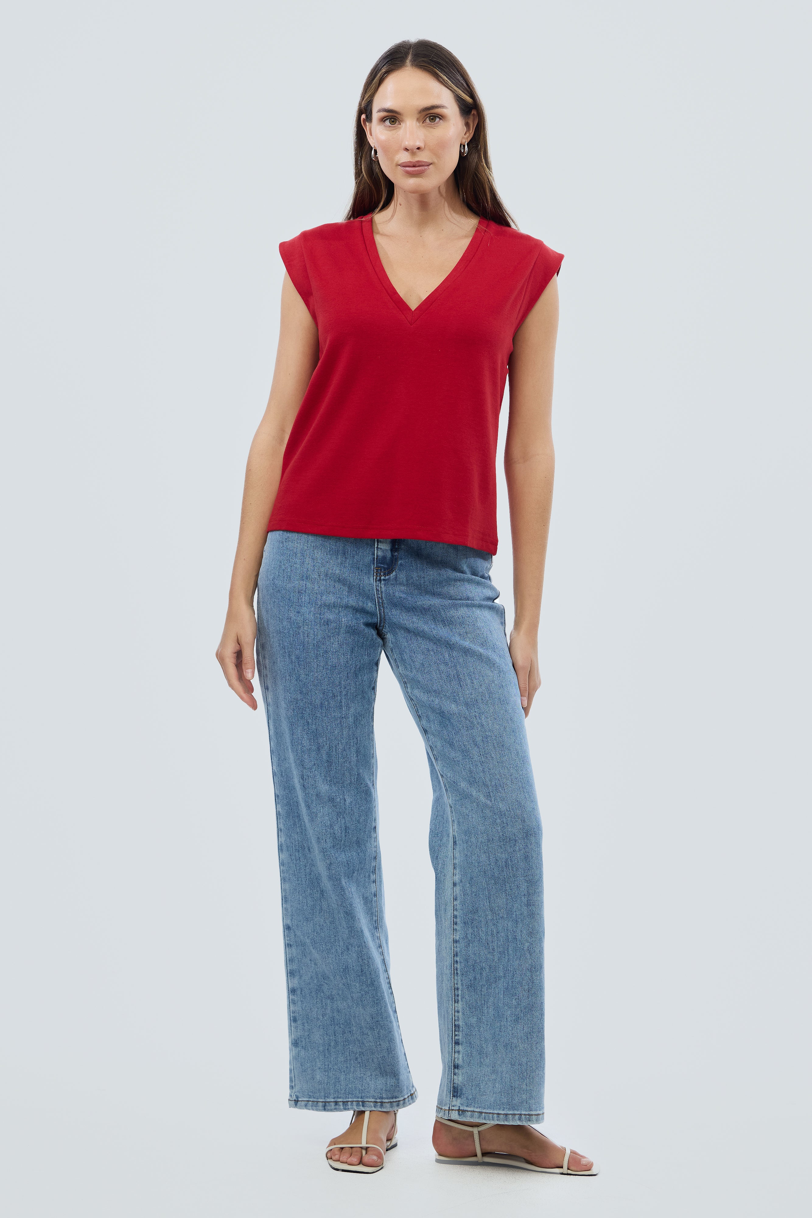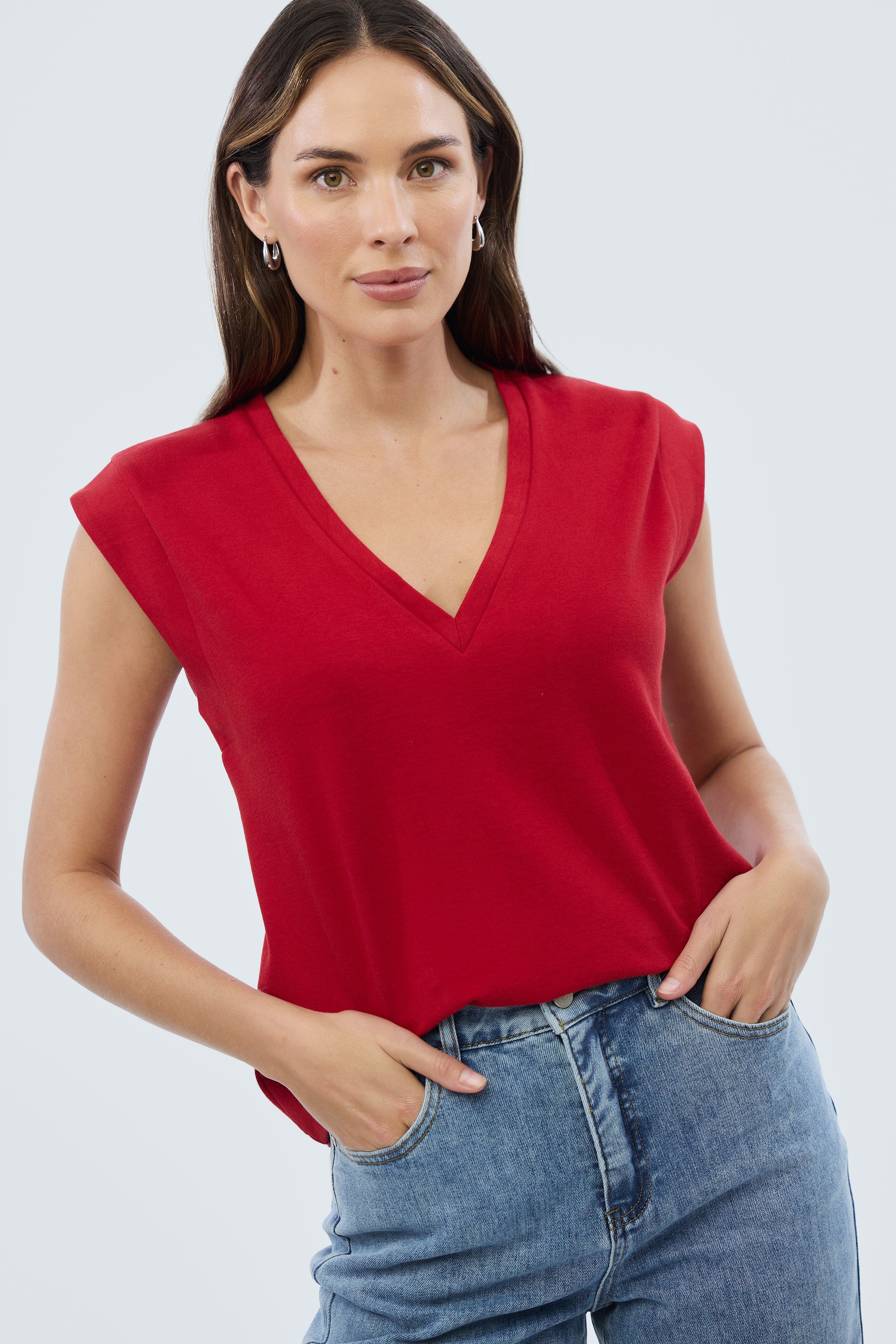 Your favourite silhouette, reimagined with a fresh neckline. The V-Neck Cap Sleeve Jersey Tank in Dark Cherry combines softness and stretch with a relaxed drape and flattering cap sleeves. A true essential for elevated layering or standalone ease.