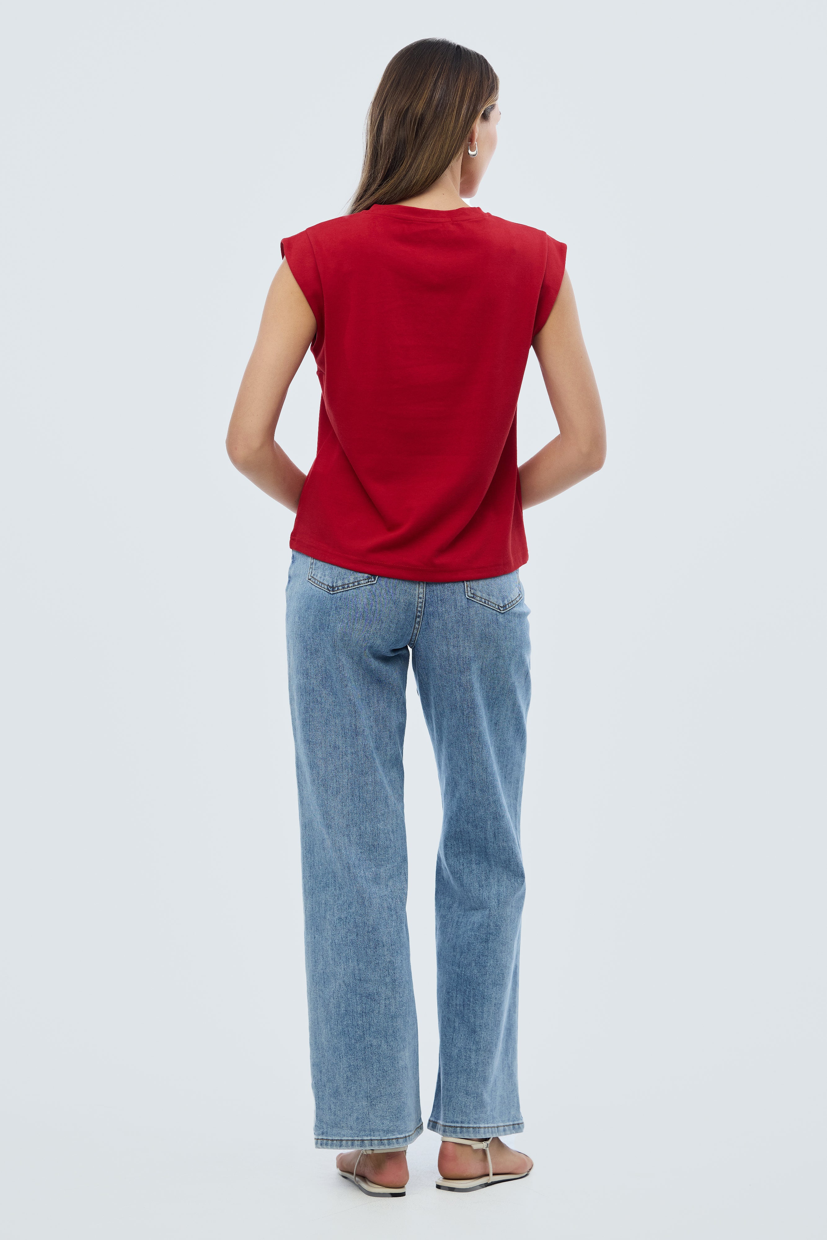 V Neck Cap Sleeve Jersey Tank - Dark Cherry