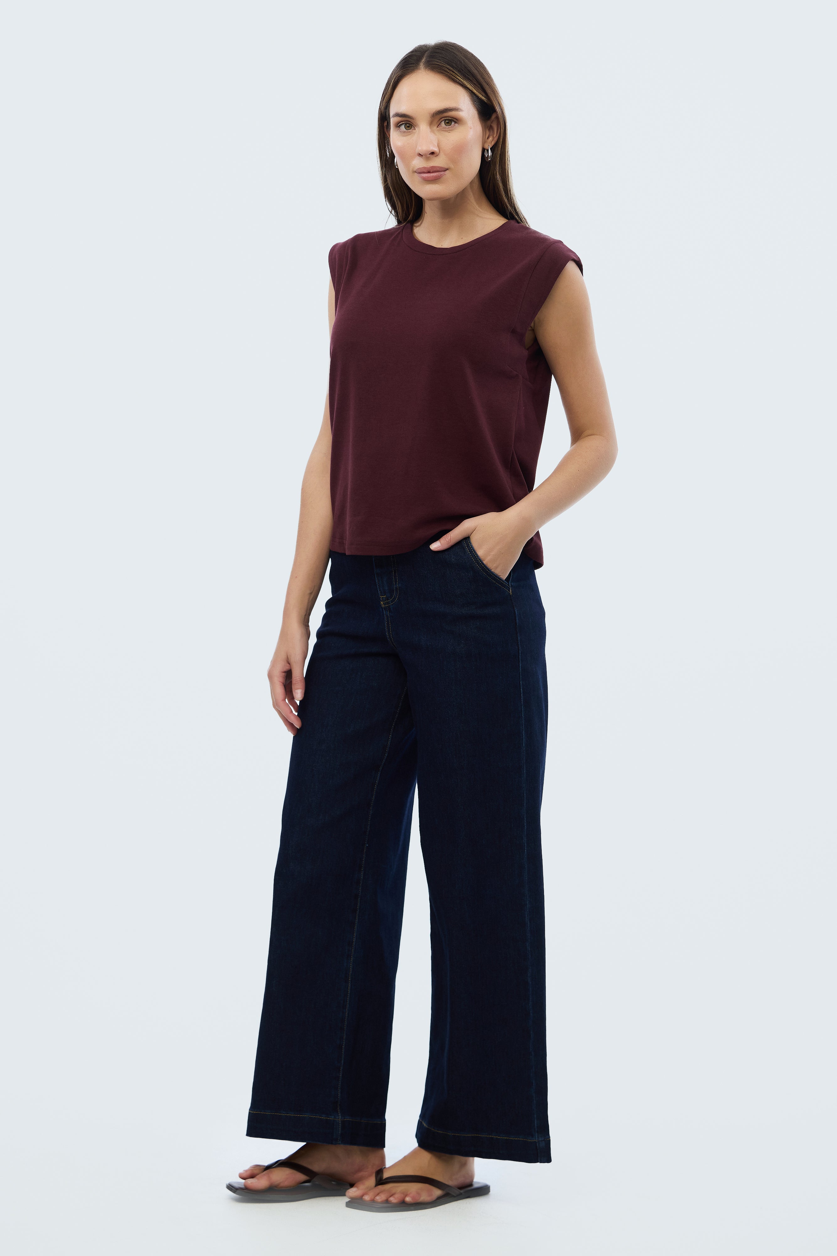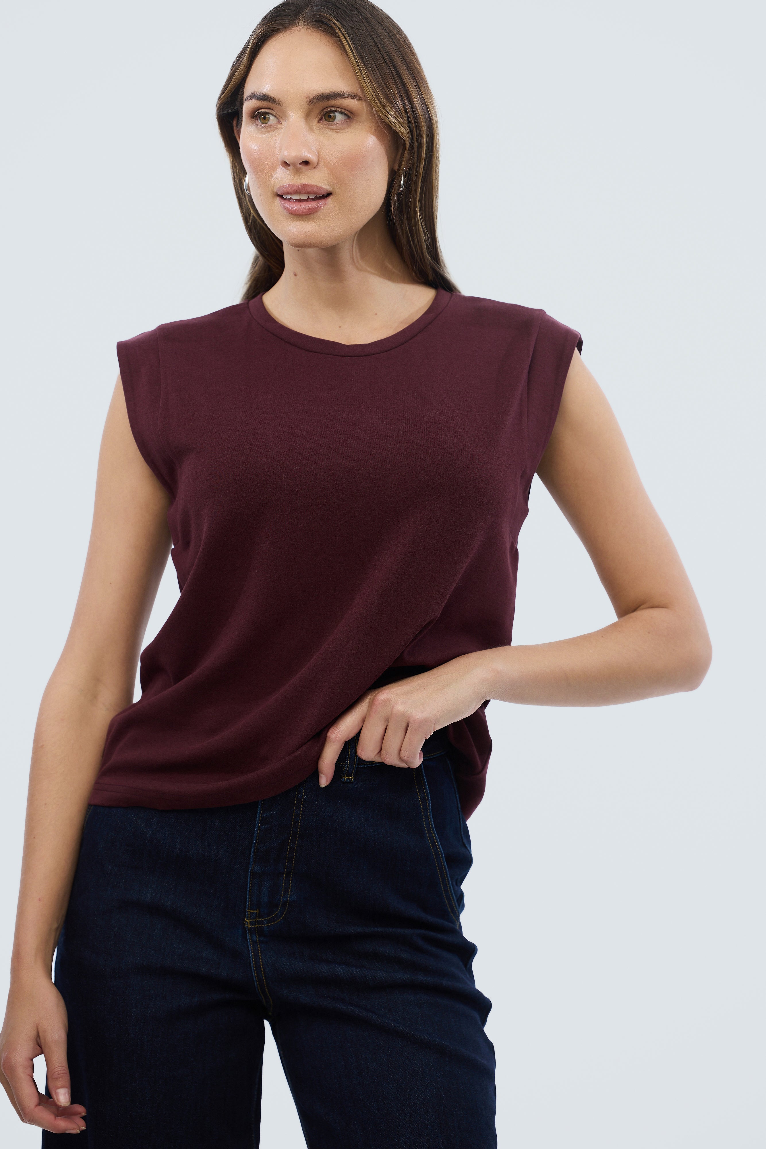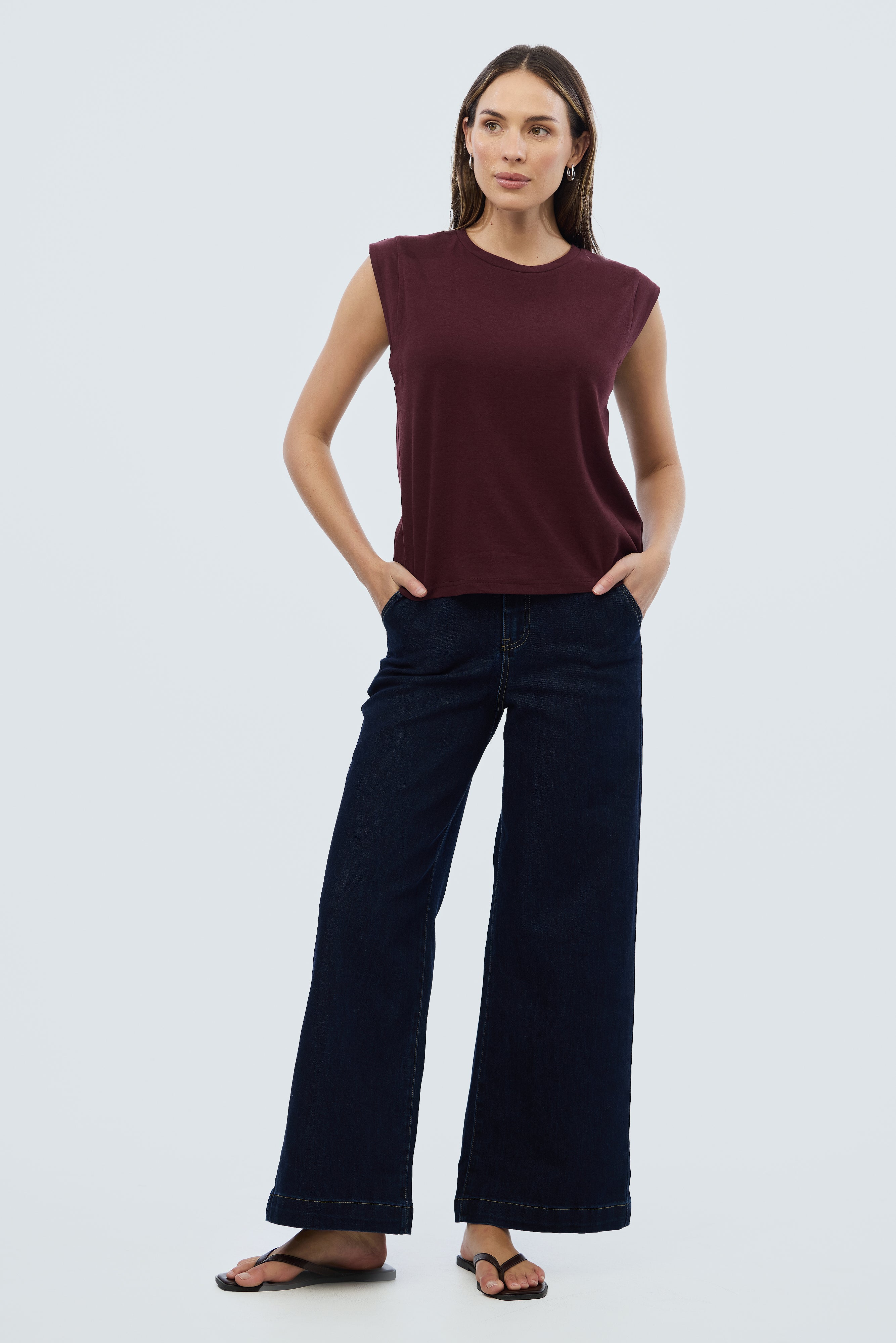 Elevate your casual style with our Cap Sleeve Jersey Tank in Fig. The wide cut provides more coverage than a classic tank, and its straight fit through the body pairs perfectly with our staple Cargo Pants or signature denim pieces, making it an essential addition to your wardrobe.