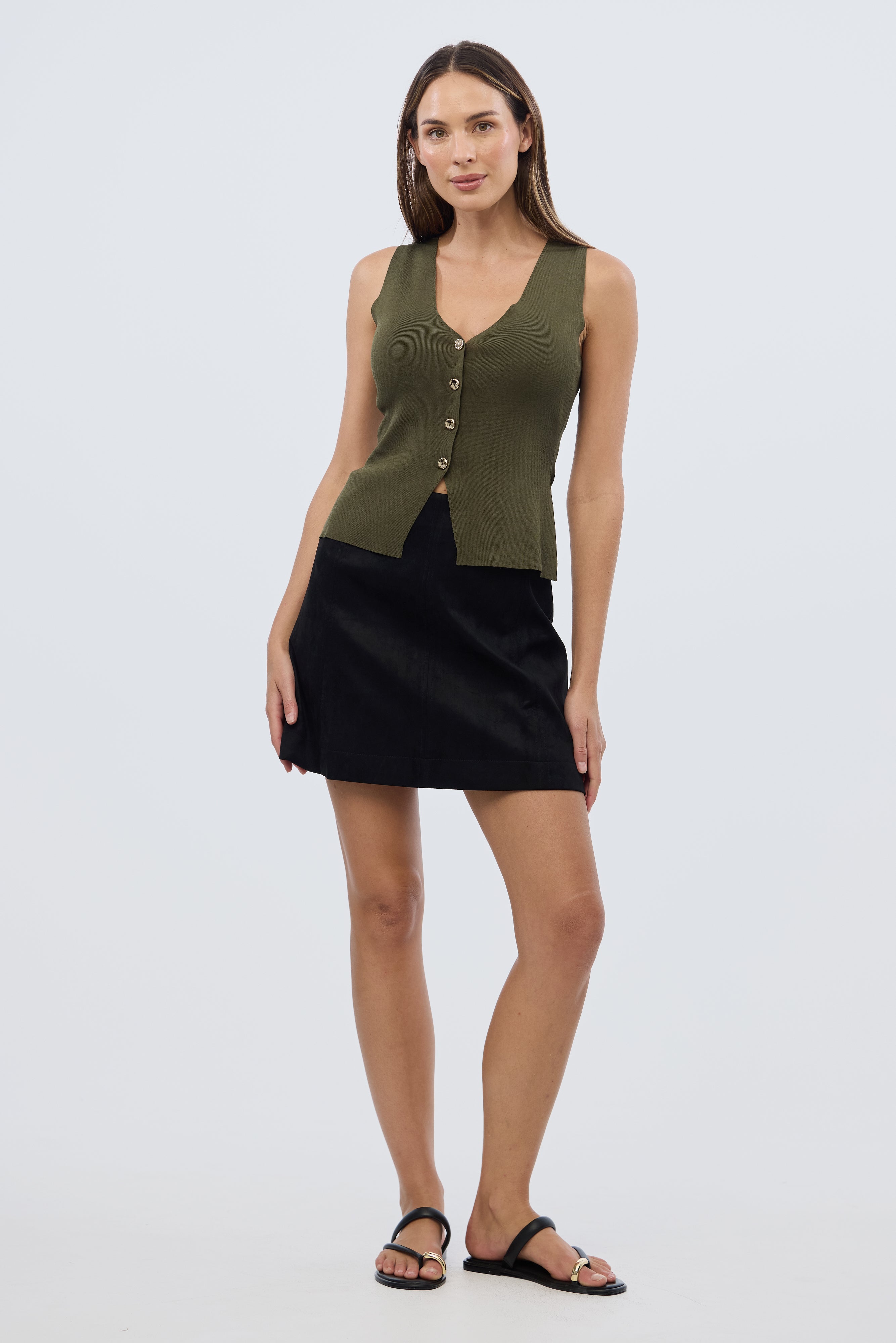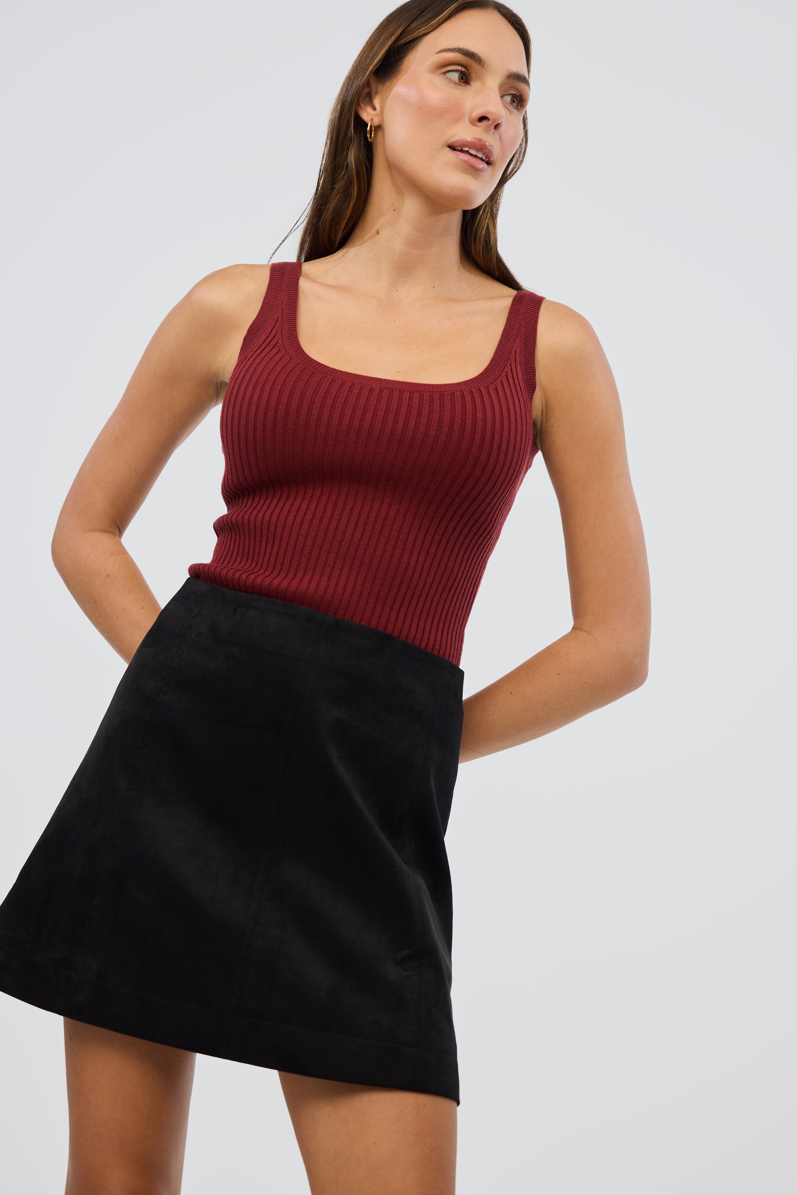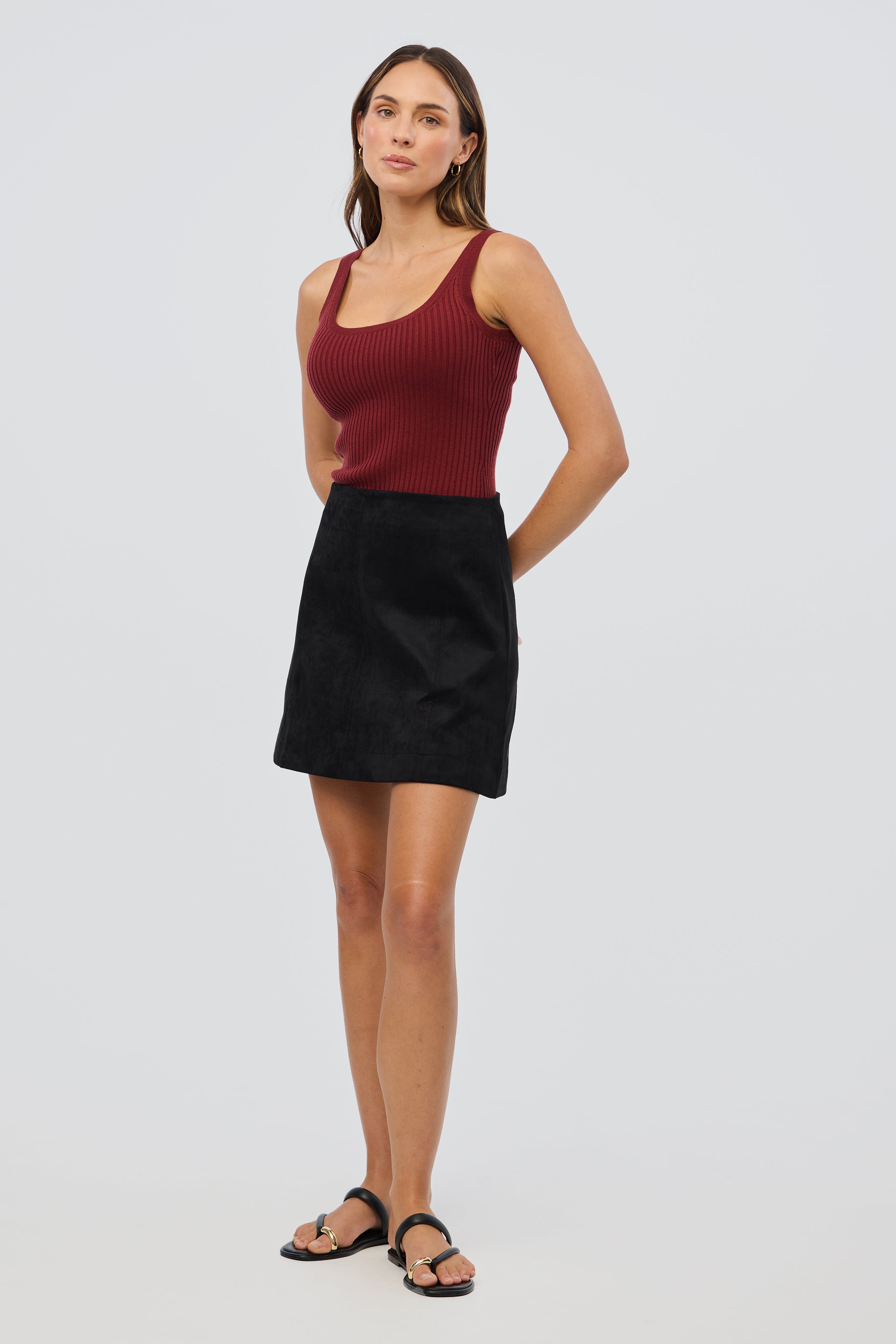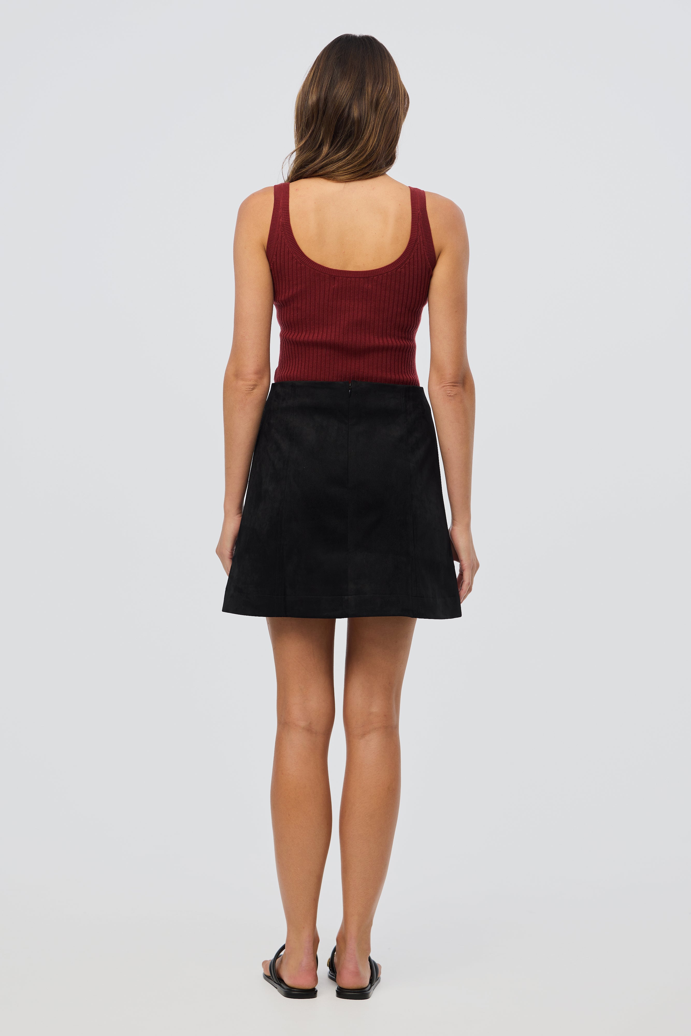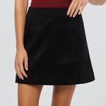 The Vegan Suede Mini Skirt in Black features a centre back invisible zip and a flattering A-line silhouette with princess seam detailing. Crafted from stretch suede and fully lined, this mini skirt is designed for effortless day-to-night styling.
