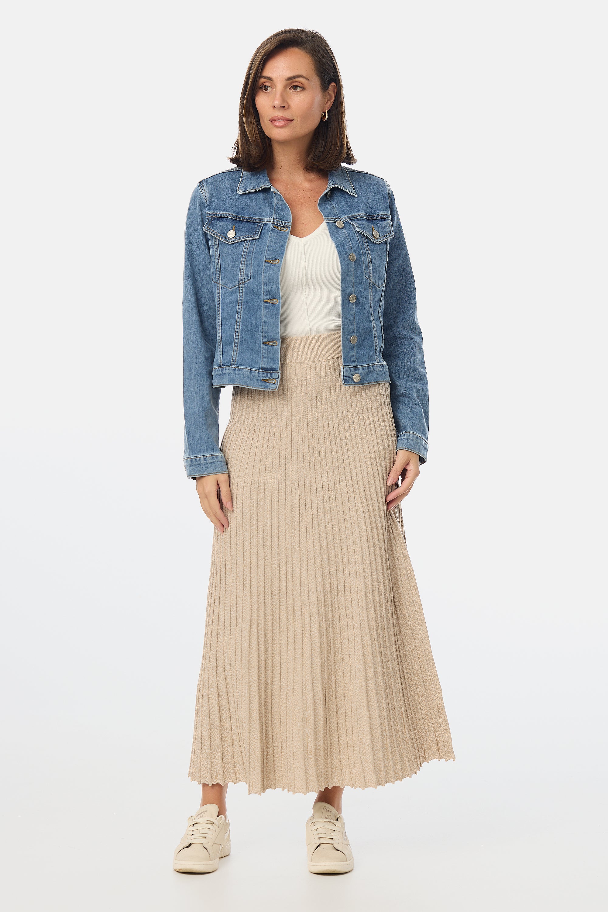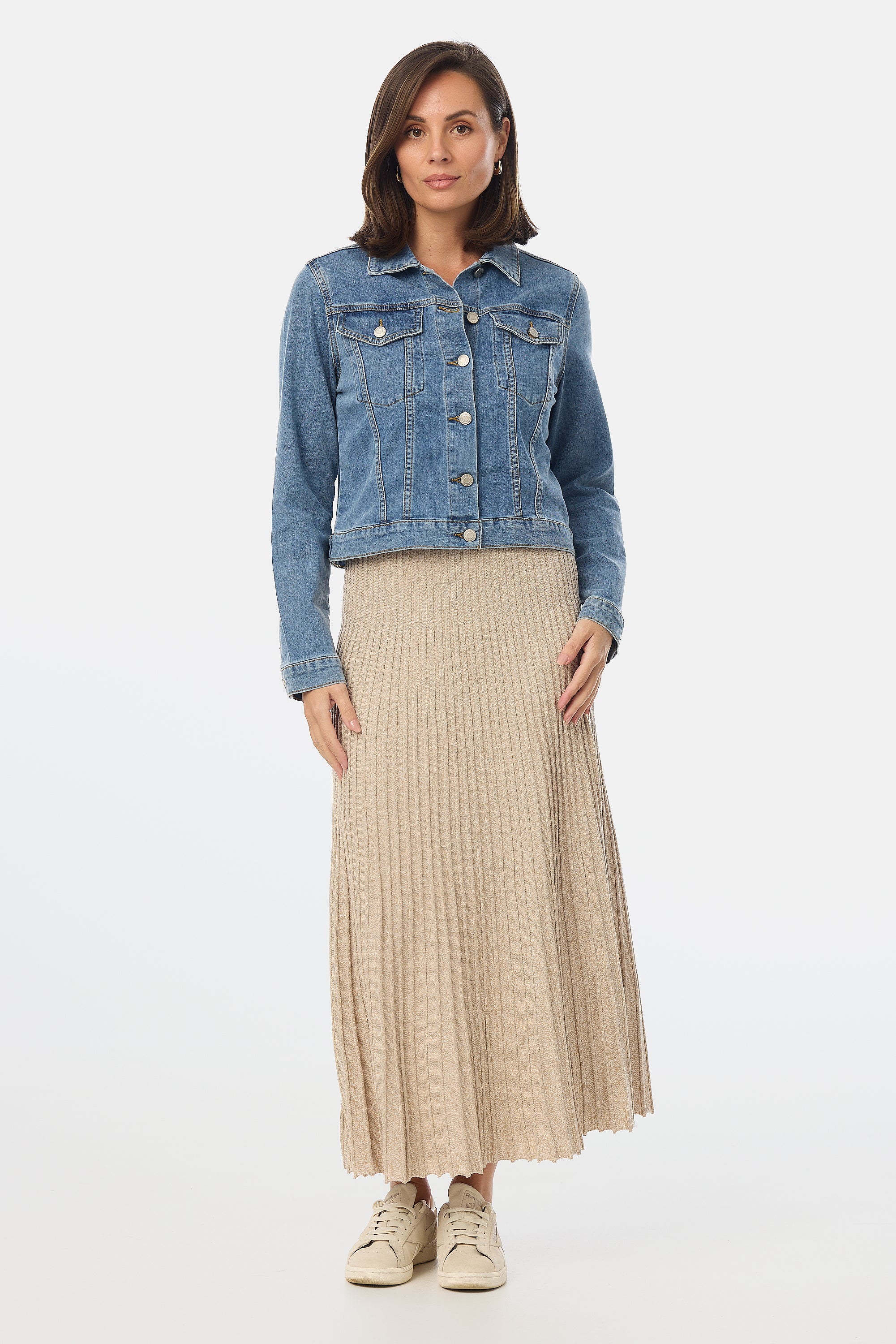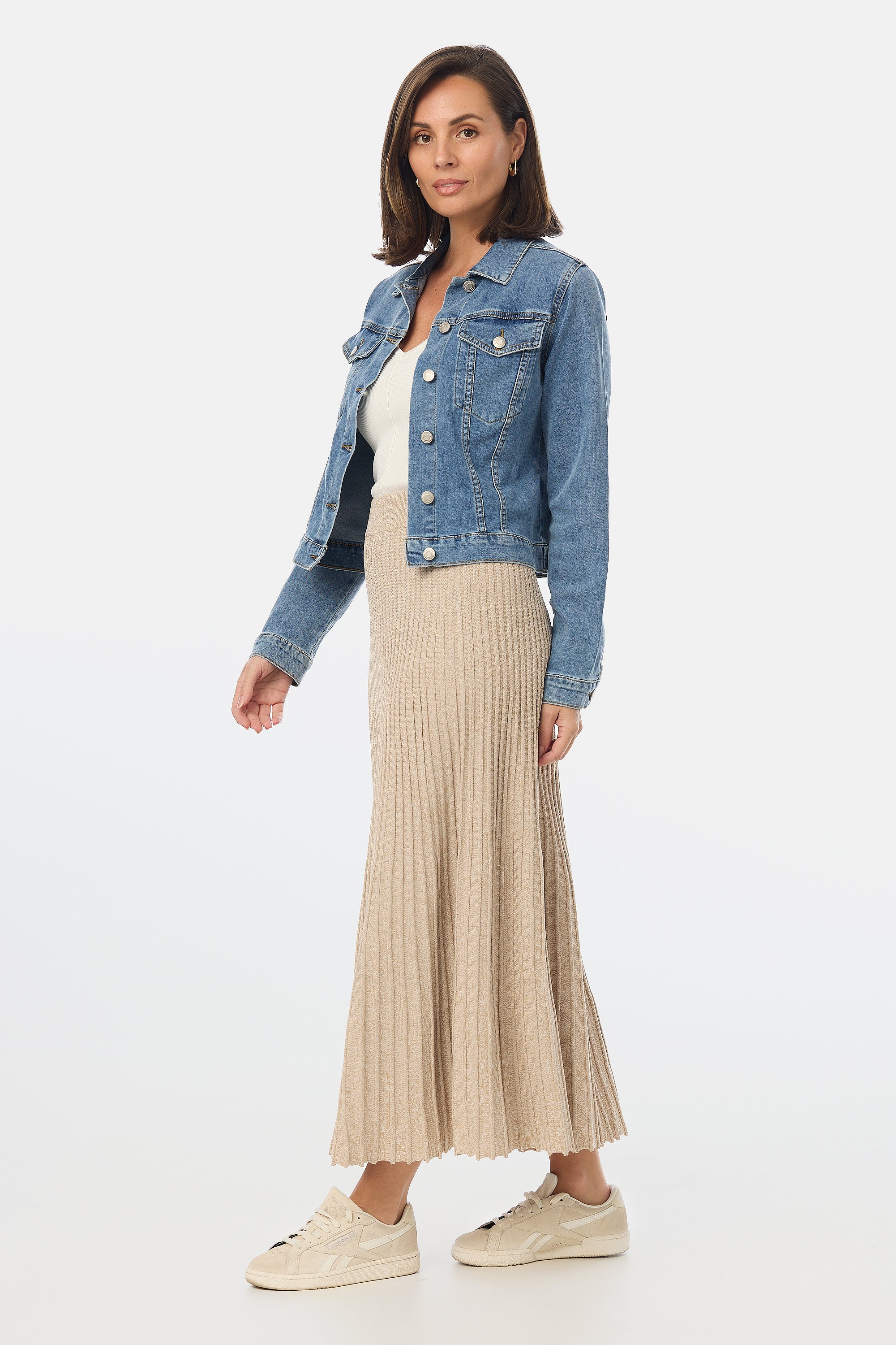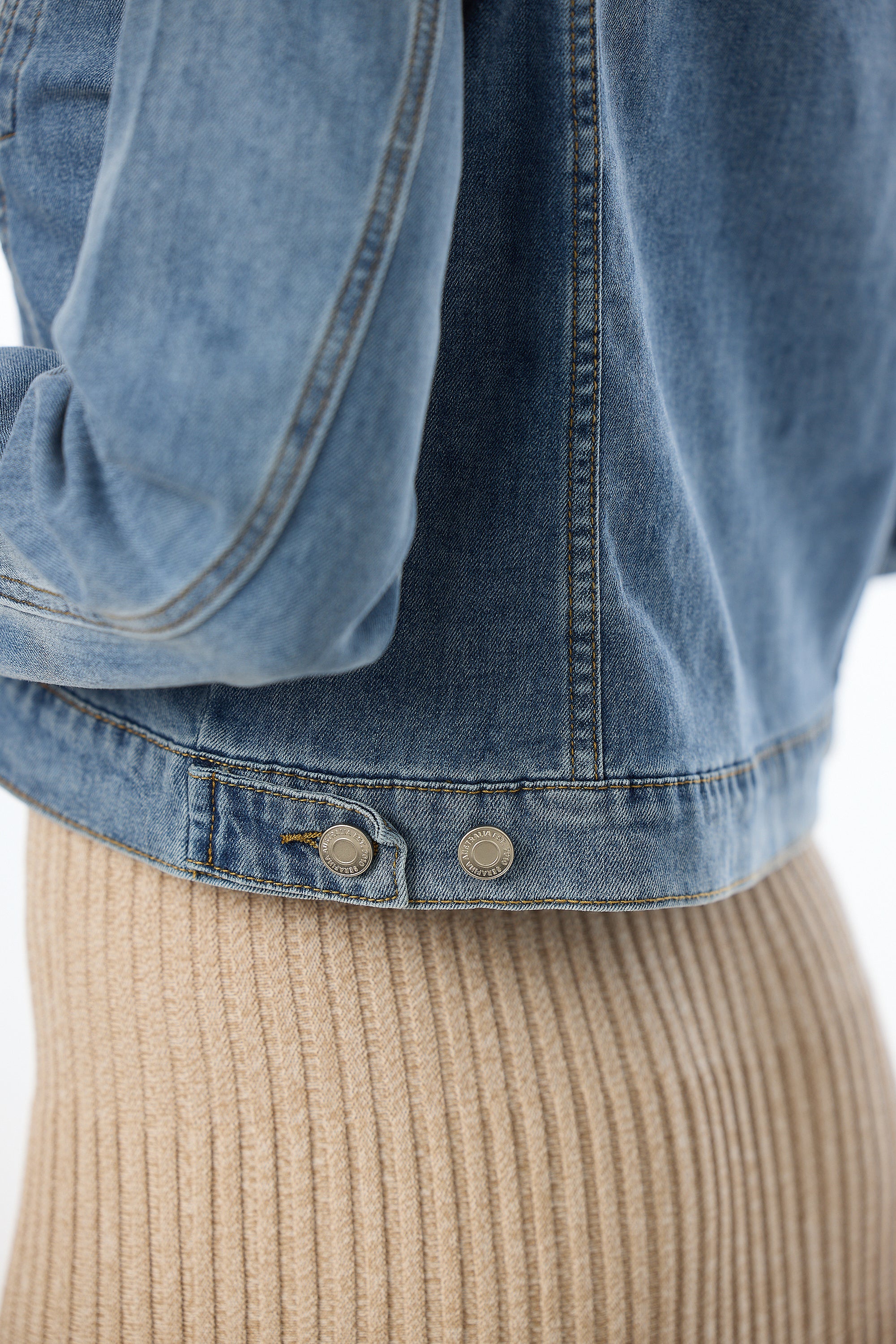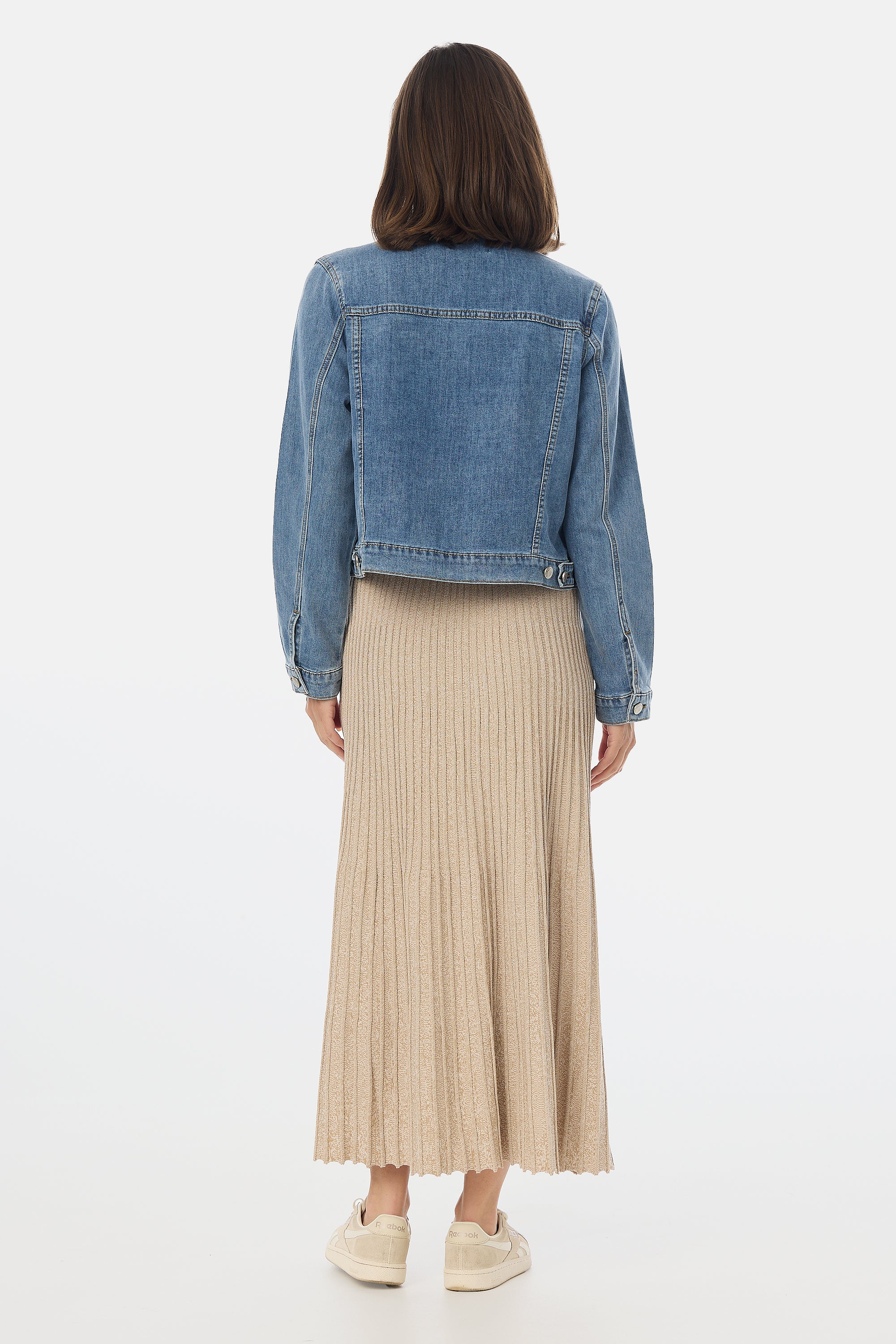 Five star jacket, easy wear soft denim, great fit, goes perfectly with the mid blue panelled skirt