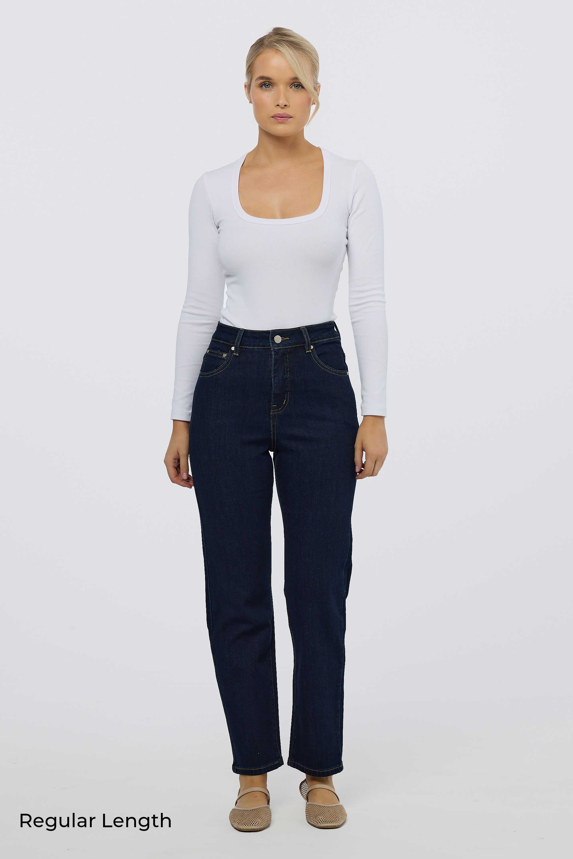 Experience our Signature Slim Leg Jeans in Indigo, crafted for timeless style and effortless ease, tailored to every shape and size. With a touch of stretch for comfort and premium fabric that holds its form, this is denim designed to endure. Find your perfect fit with our two lengths - regular and petite.