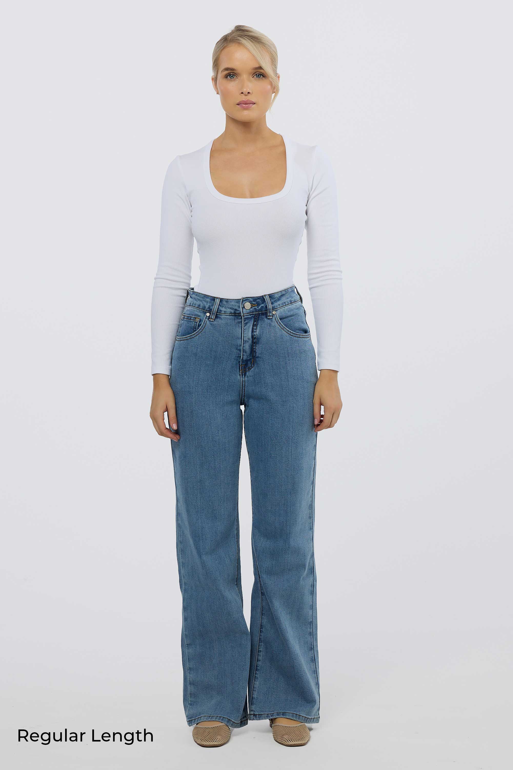 Experience our Signature Straight Leg Jeans in Mid Blue Wash, crafted for timeless style and effortless ease, tailored to every shape and size. With a touch of stretch for comfort and premium fabric that holds its form, this is denim designed to endure. Find your perfect fit with our two lengths - regular and petite.
