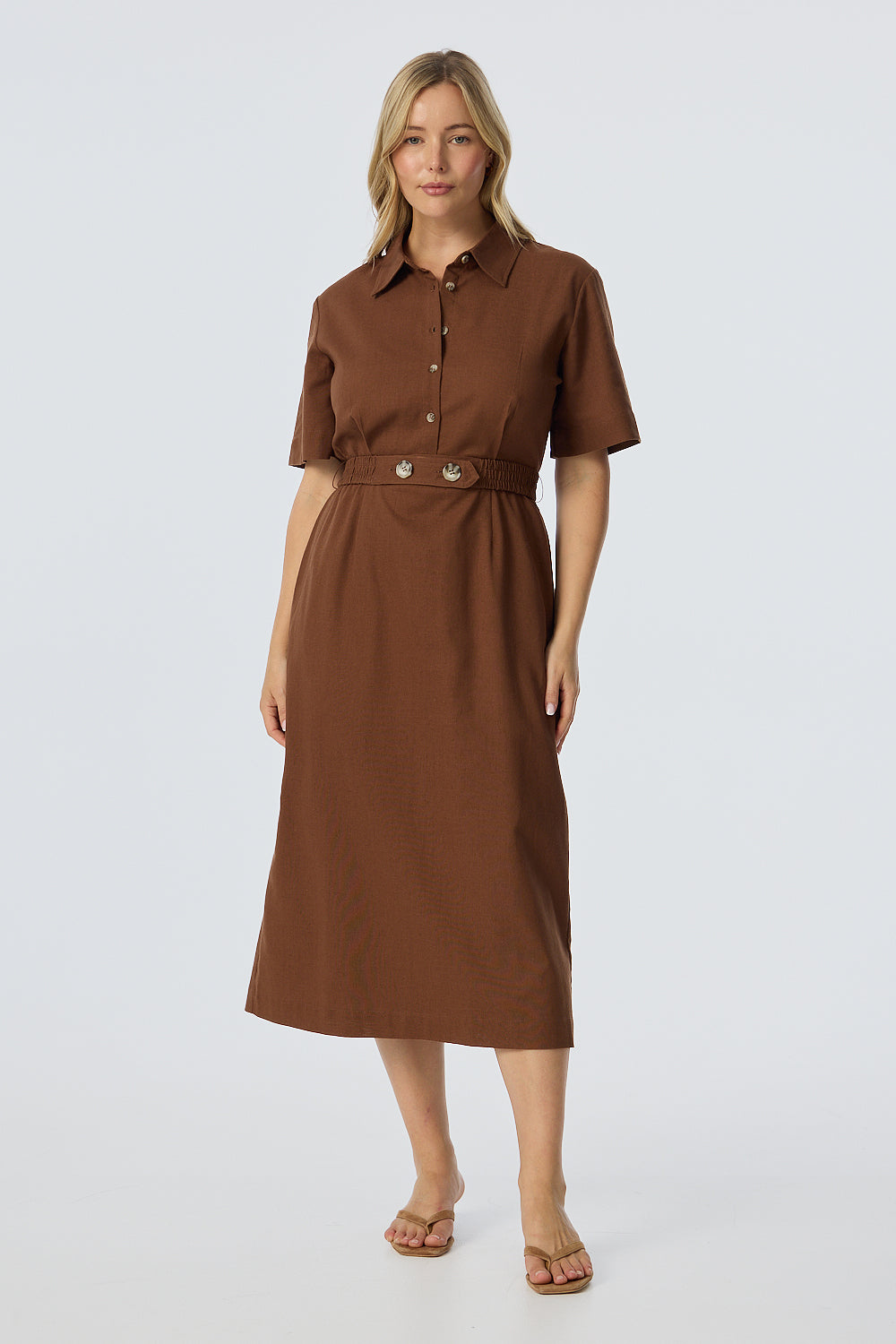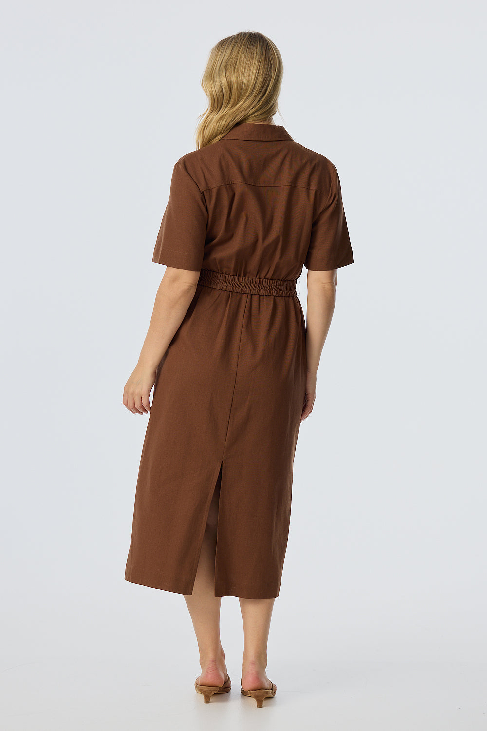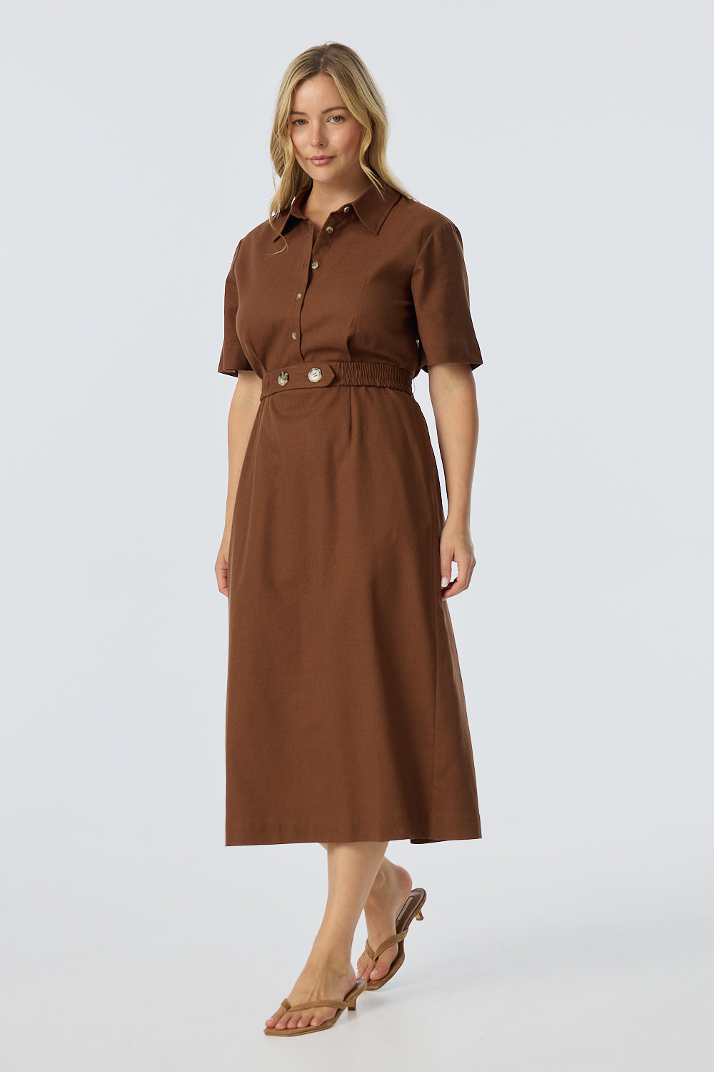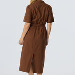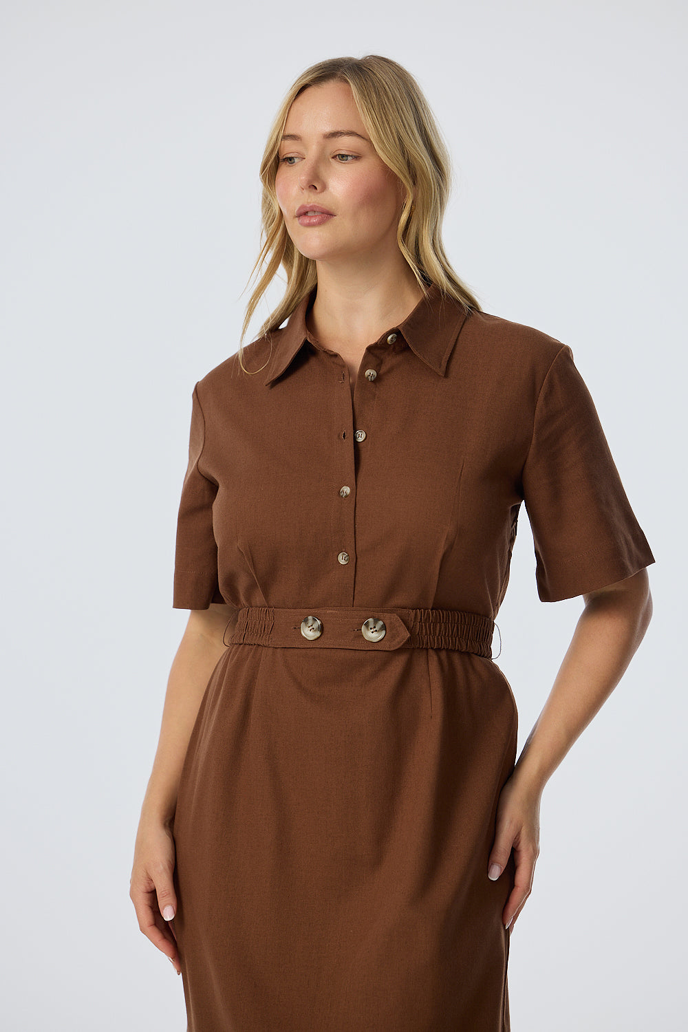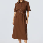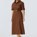 Elastic Waist Shirt Dress - Walnut