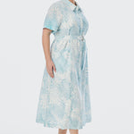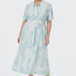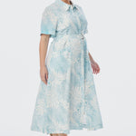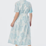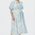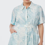 Panelled Shirt Dress - Ice Blue Abstract Leaves