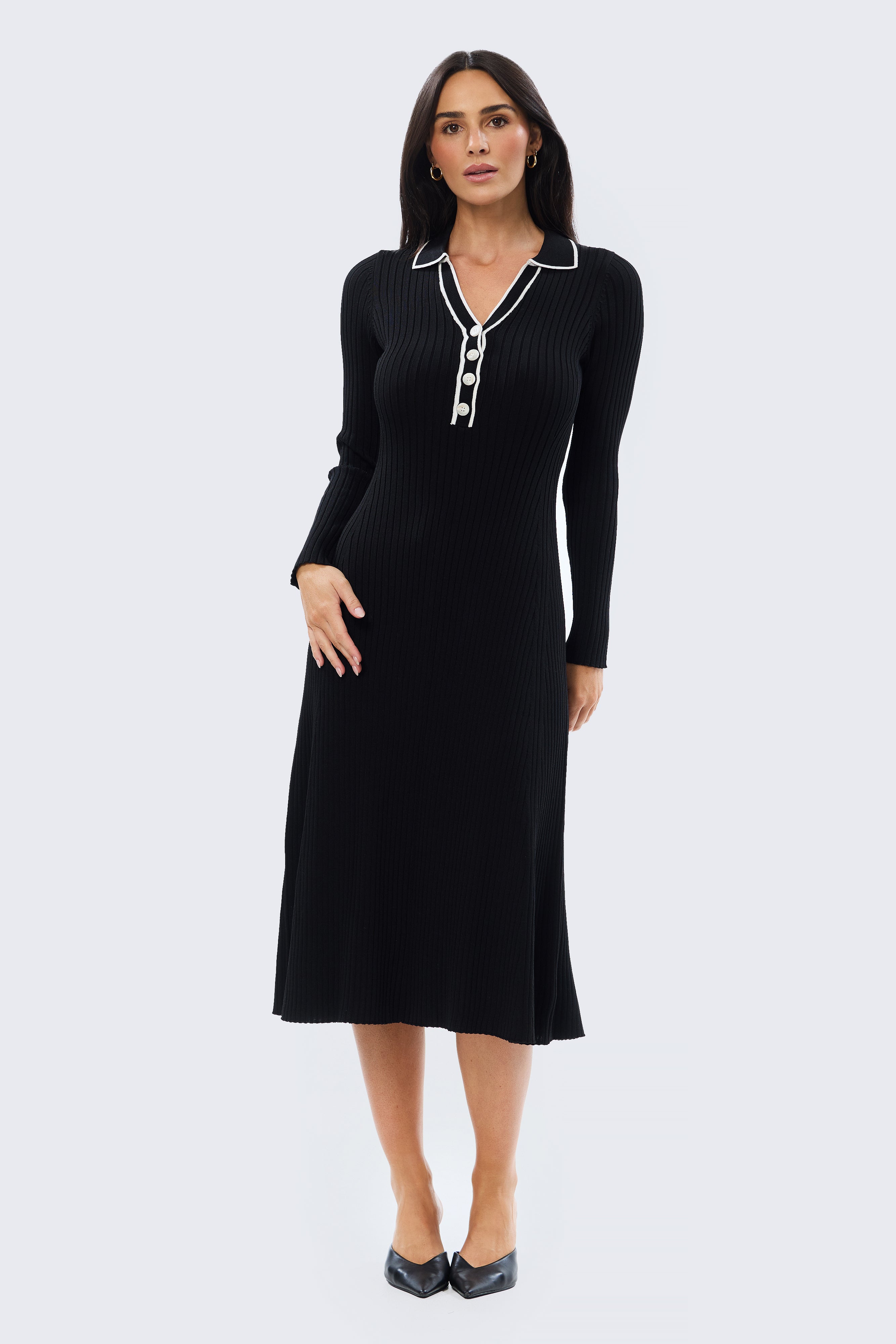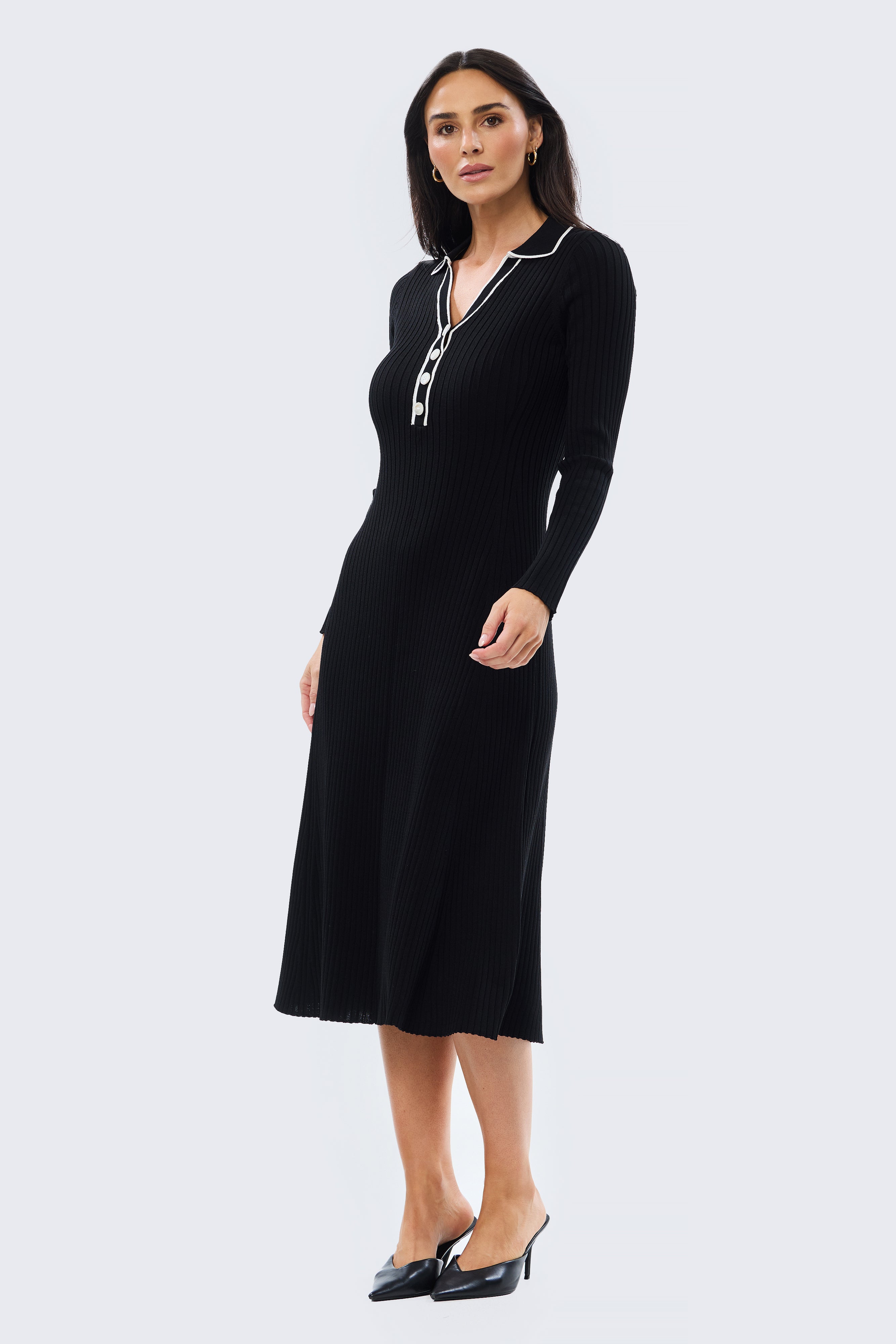 Half Placket Long Sleeve Knit Dress - Cappuccino