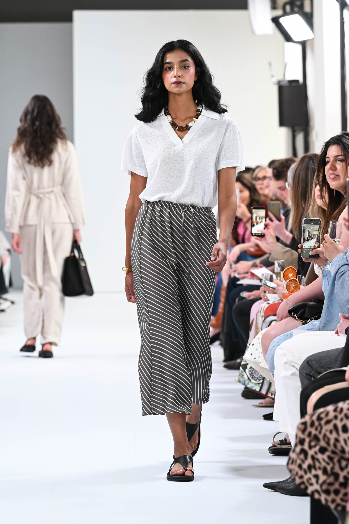 Model usually wears a size 6 and is wearing a size 6. She is 173cm tall, her bust measures 82cm, her waist measures 67cm and her hips measure 93cm.