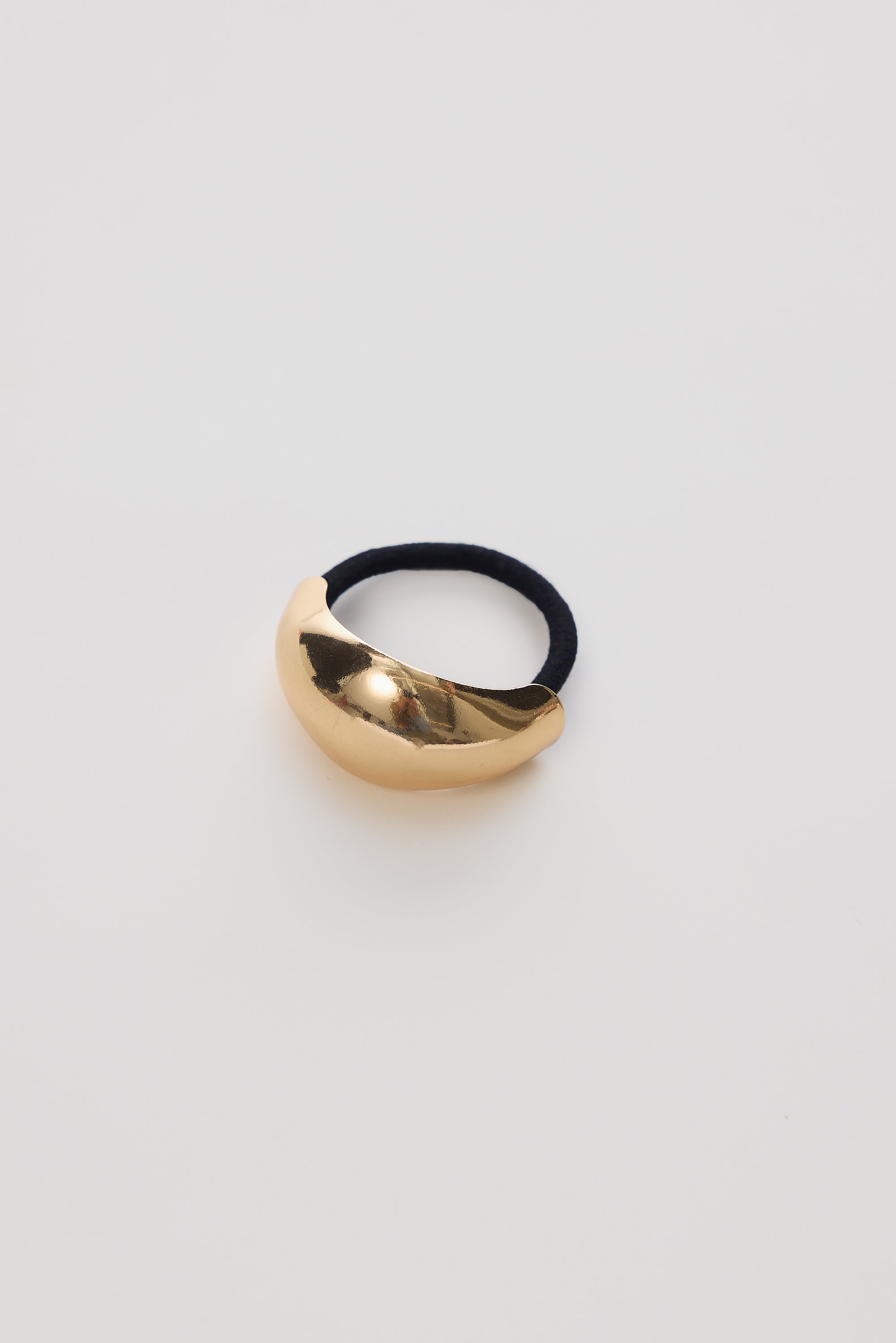 Great ponytail tie. Looks classy and tidy. Stretchy and easy to wear. Love the gold metal cuff.