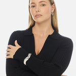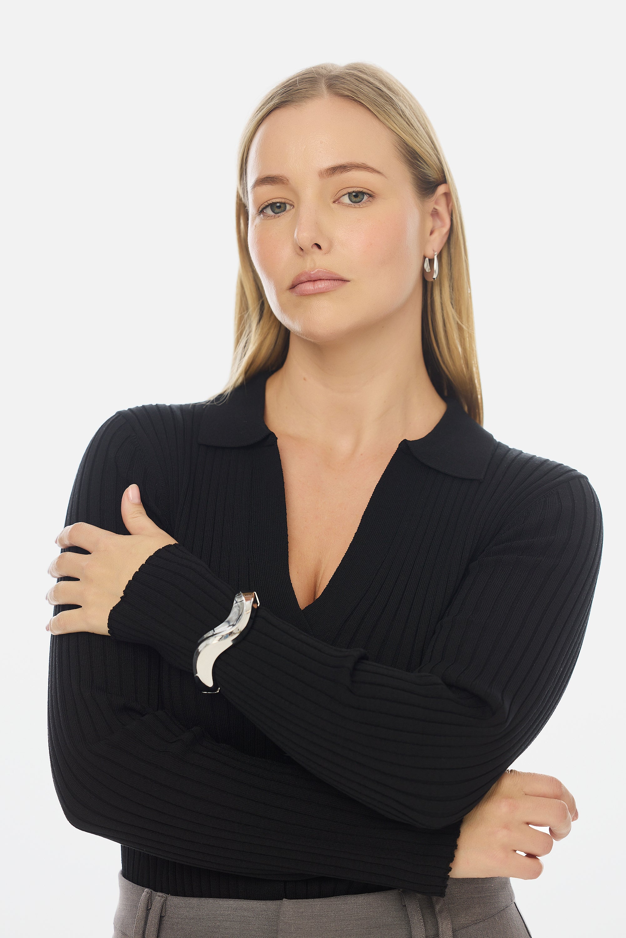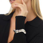 Minimalist and modern, the Abstract Bangle in Silver adds a refined edge to your wrist stack. Crafted from rhodium plated zinc with a seamless hinged design.