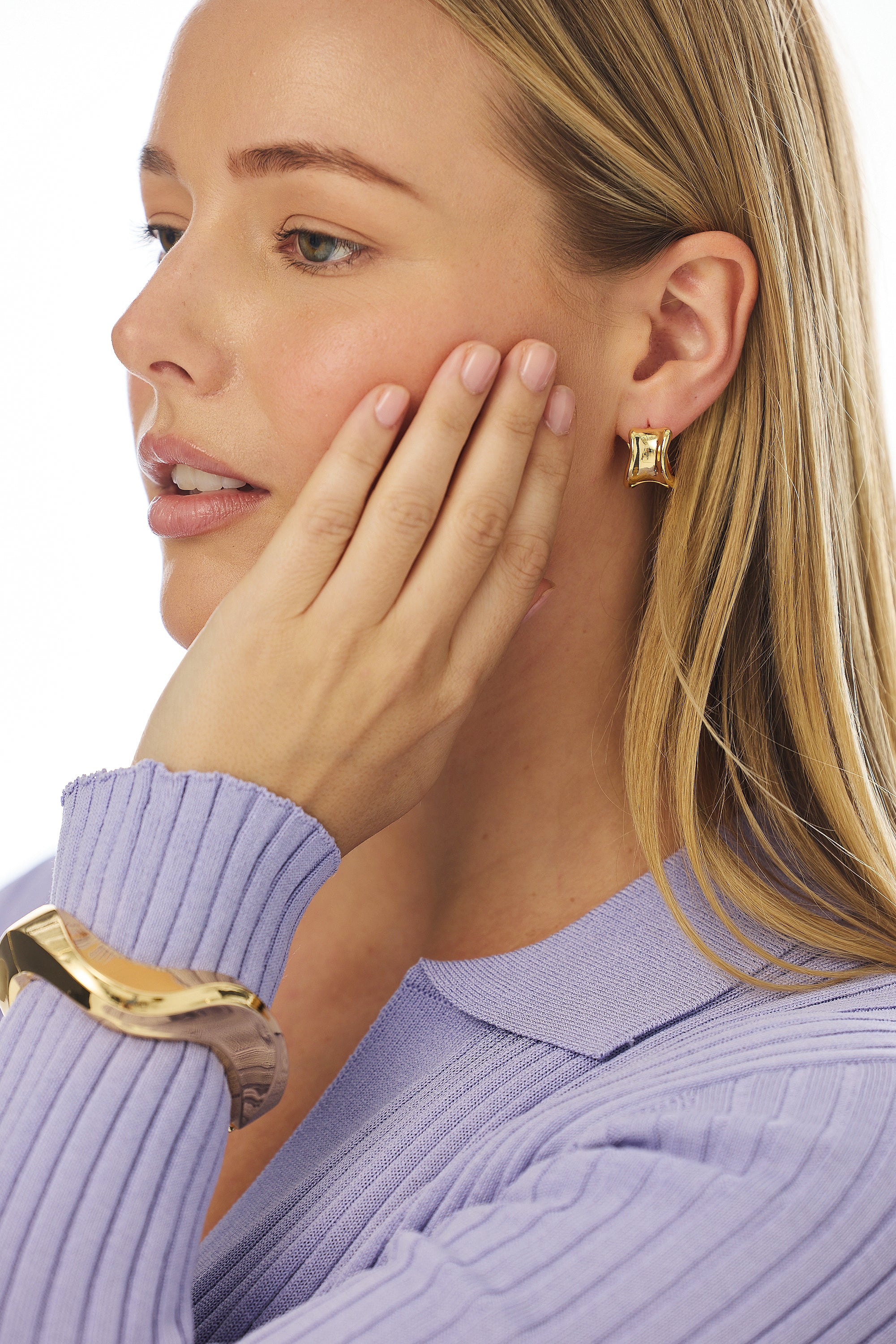 The Abstract Earrings in Gold feature fluid curves and a polished gold plated finish. An artful update to your hoop collection.