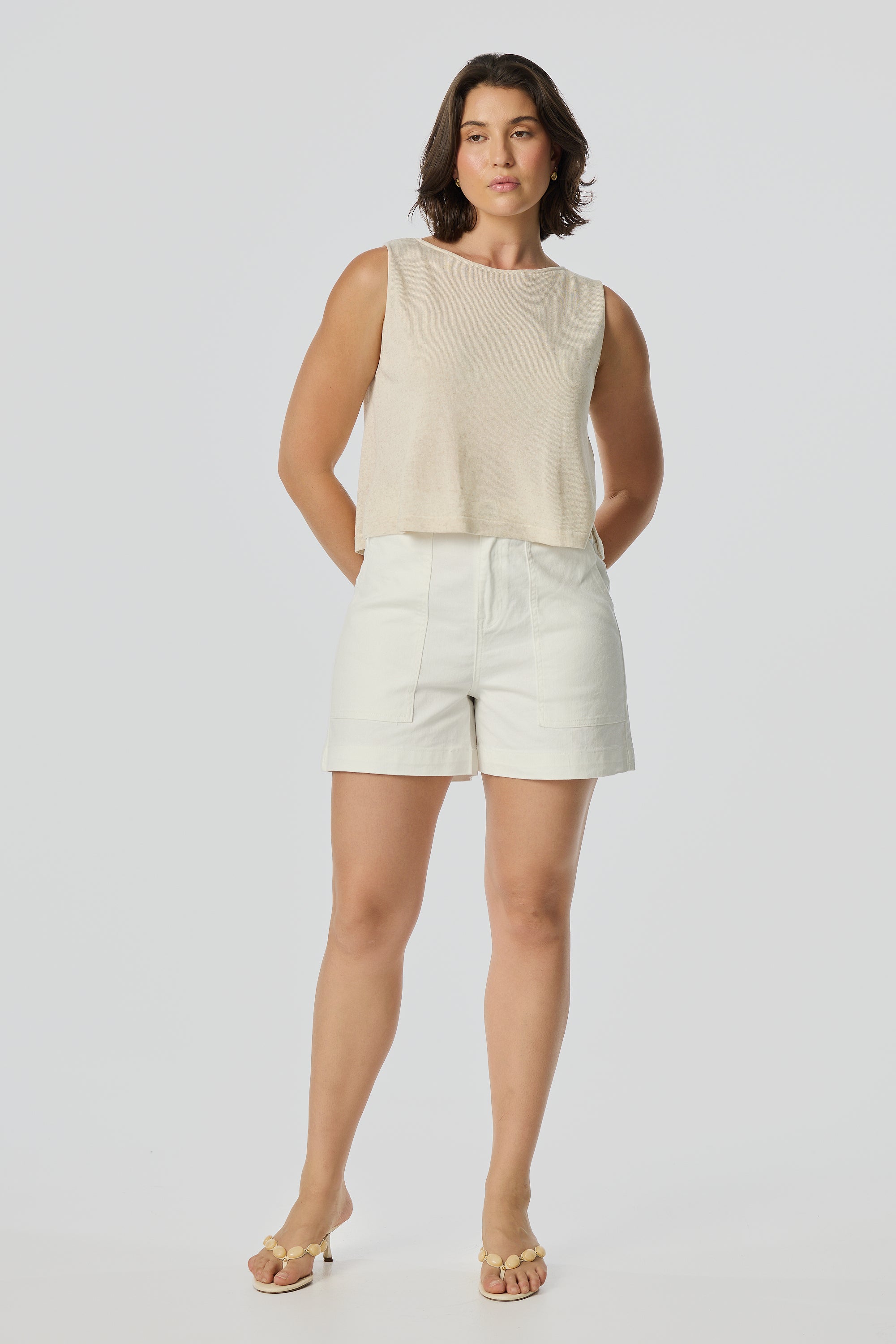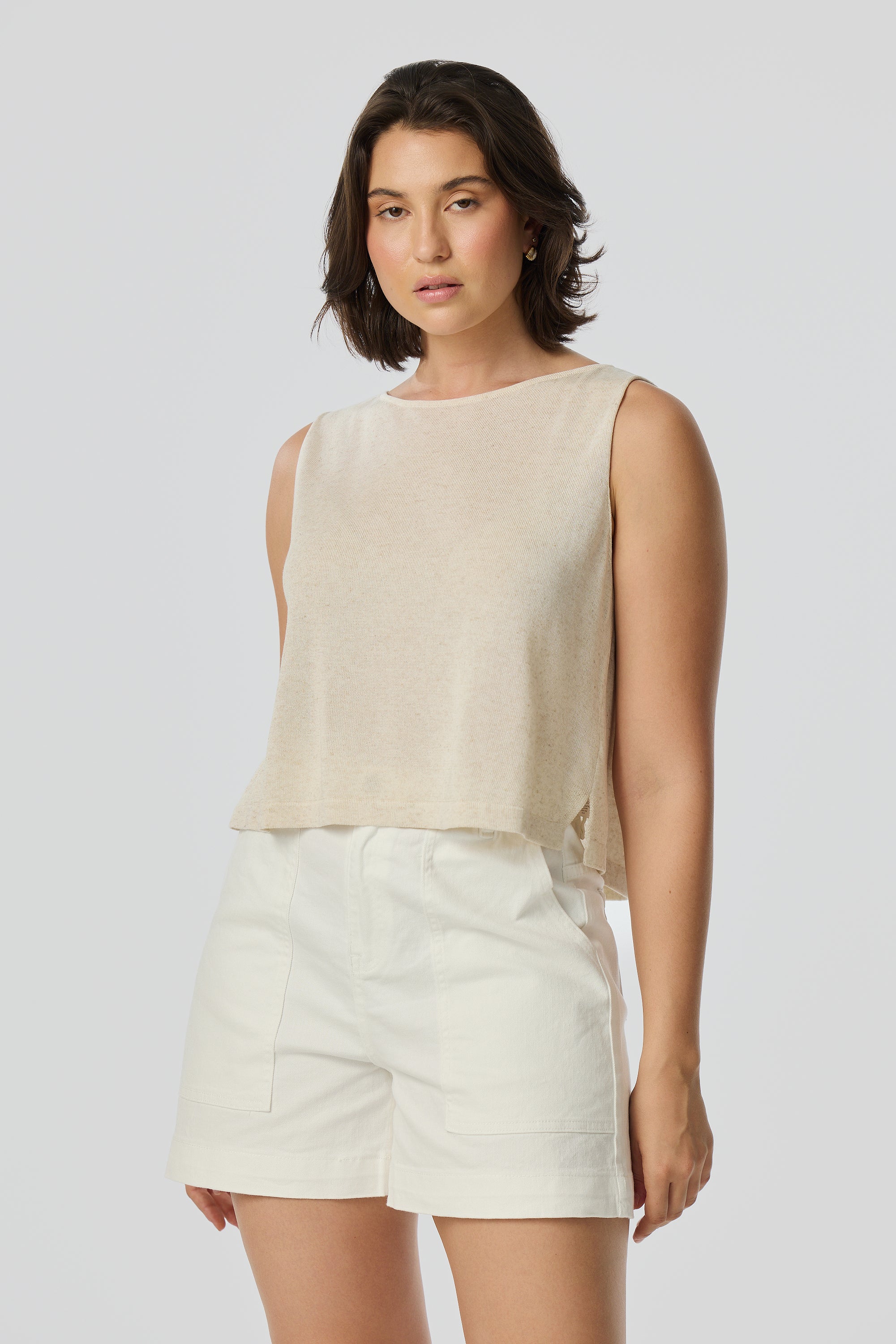 Sleeveless Boat Neck Knit Top - White