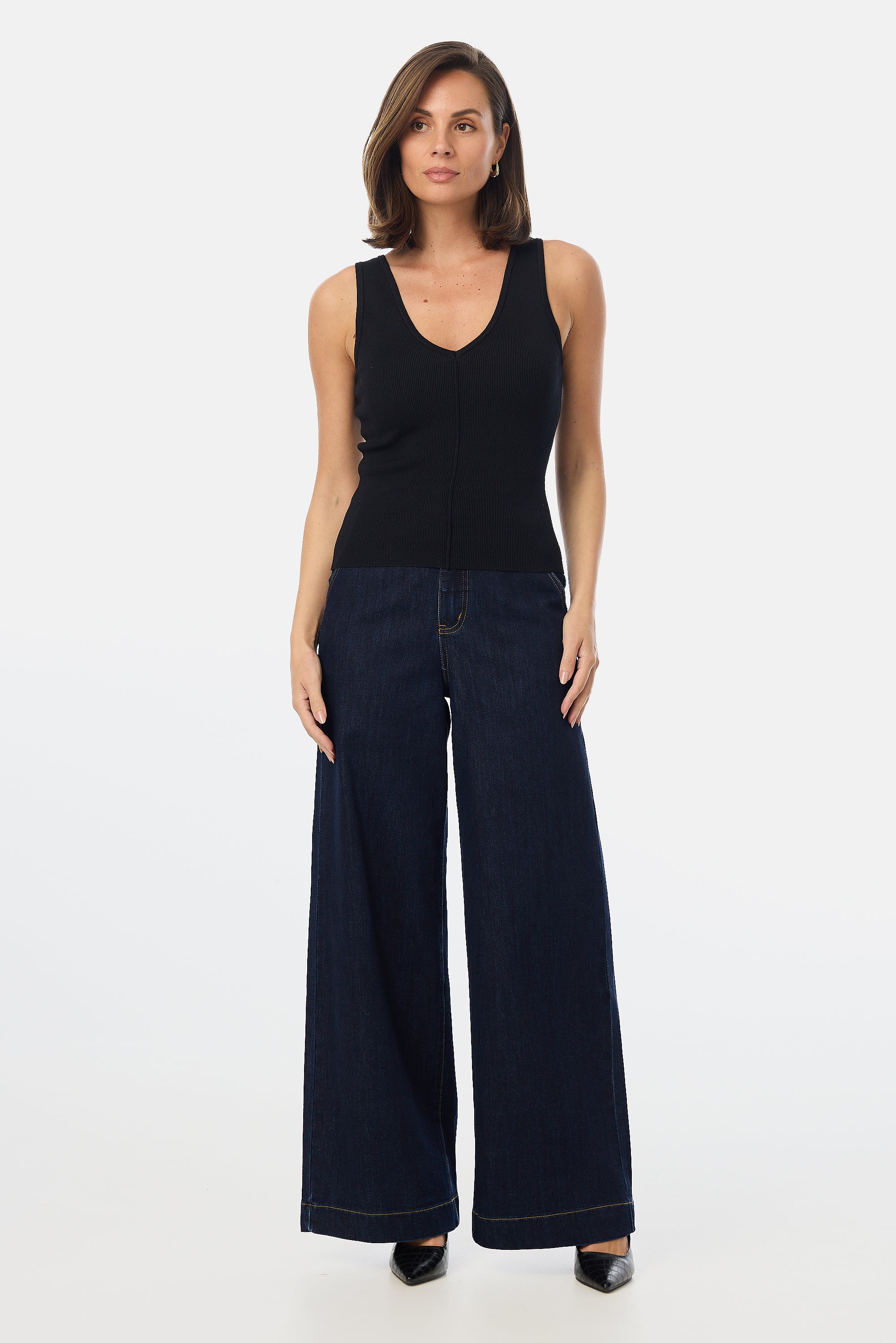 A refined essential designed to streamline your wardrobe. The V-Neck Knit Tank in Black features a flattering neckline and centre seam detail that adds subtle structure. Crafted in a mid-weight stretch rib knit, it's fitted yet flexible, perfect for layering or wearing solo from day to night.