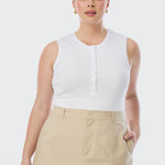 Half Placket Ribbed Tank - White
