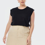 A lightweight update to a best-selling favourite. The Lightweight Cap Sleeve Tank in Black features a high round neckline and wide-cut shoulders for a modern, streamlined look. Designed with a straight fit through the body in a regular length, it’s crafted from a soft, textured jersey fabric for comfort and breathability.