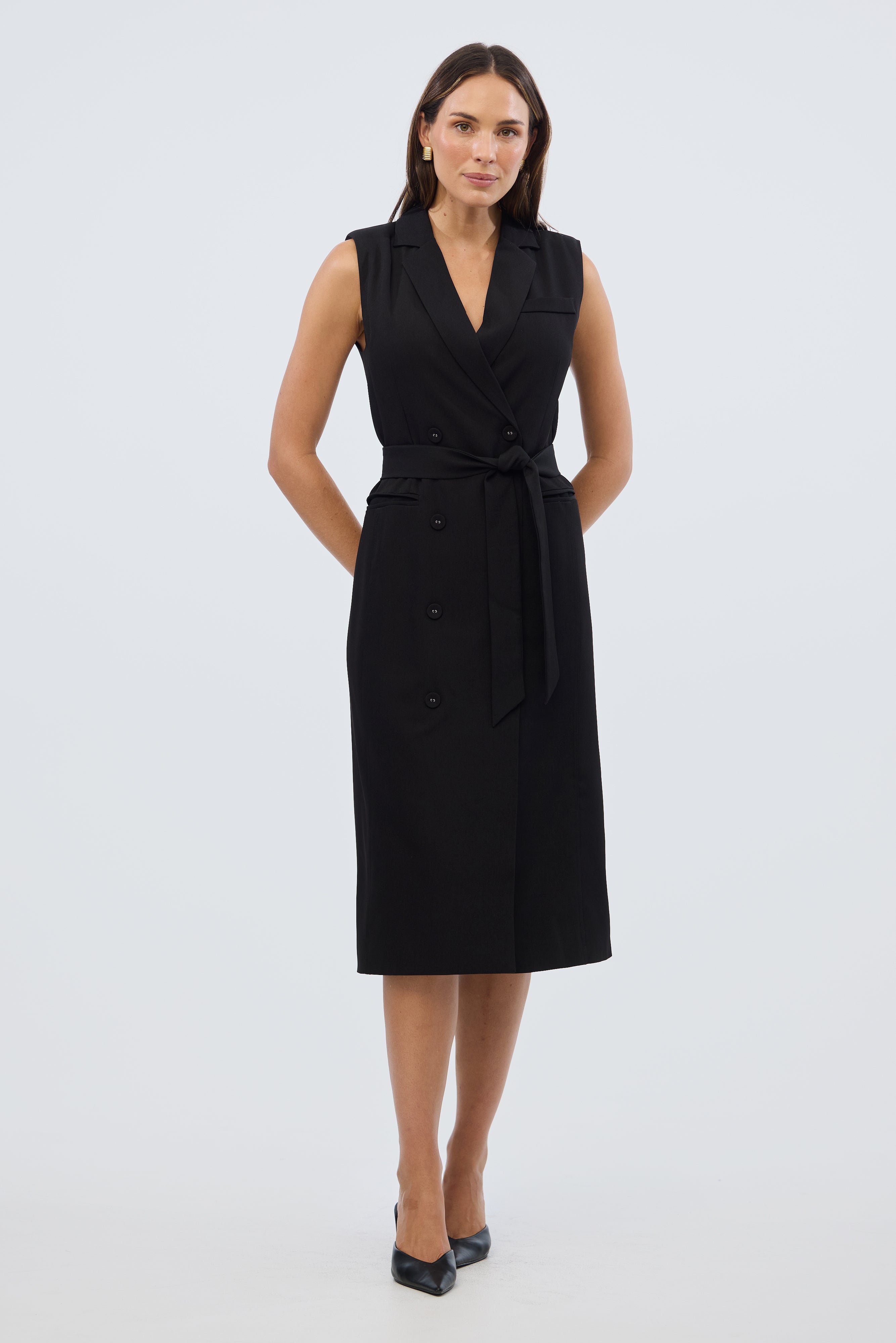 Square Neck Gathered Dress - Biscotti/White Stripe