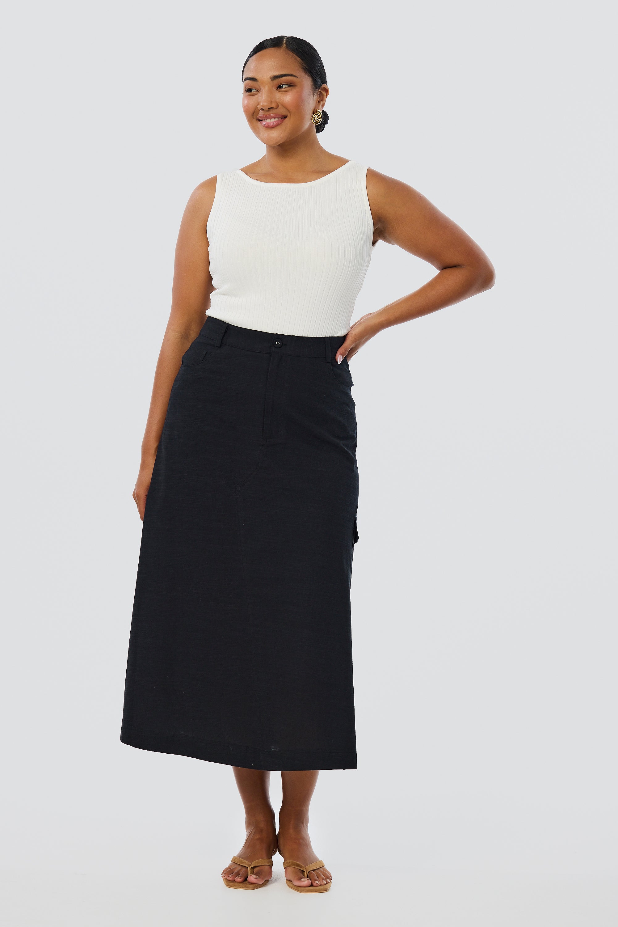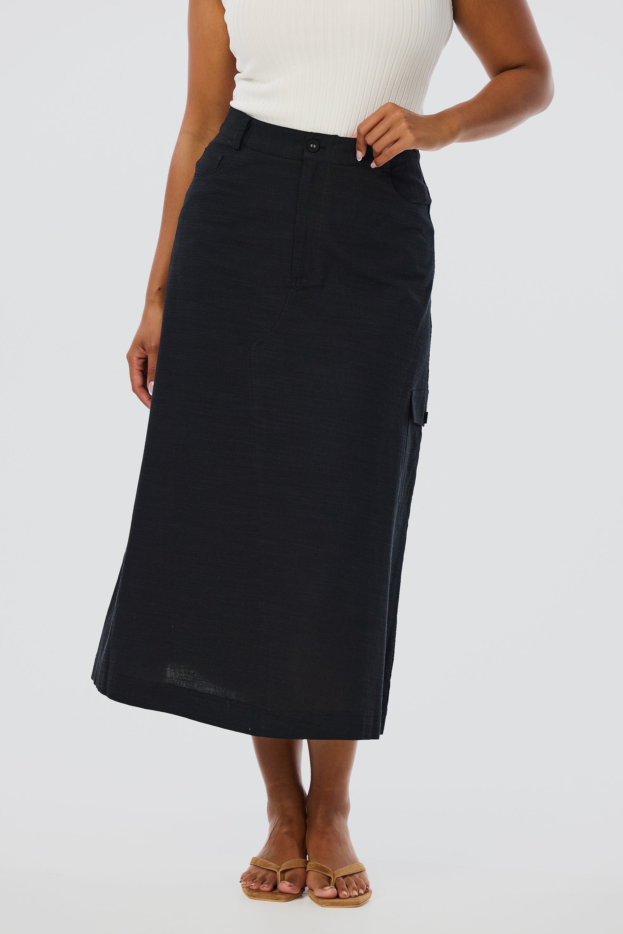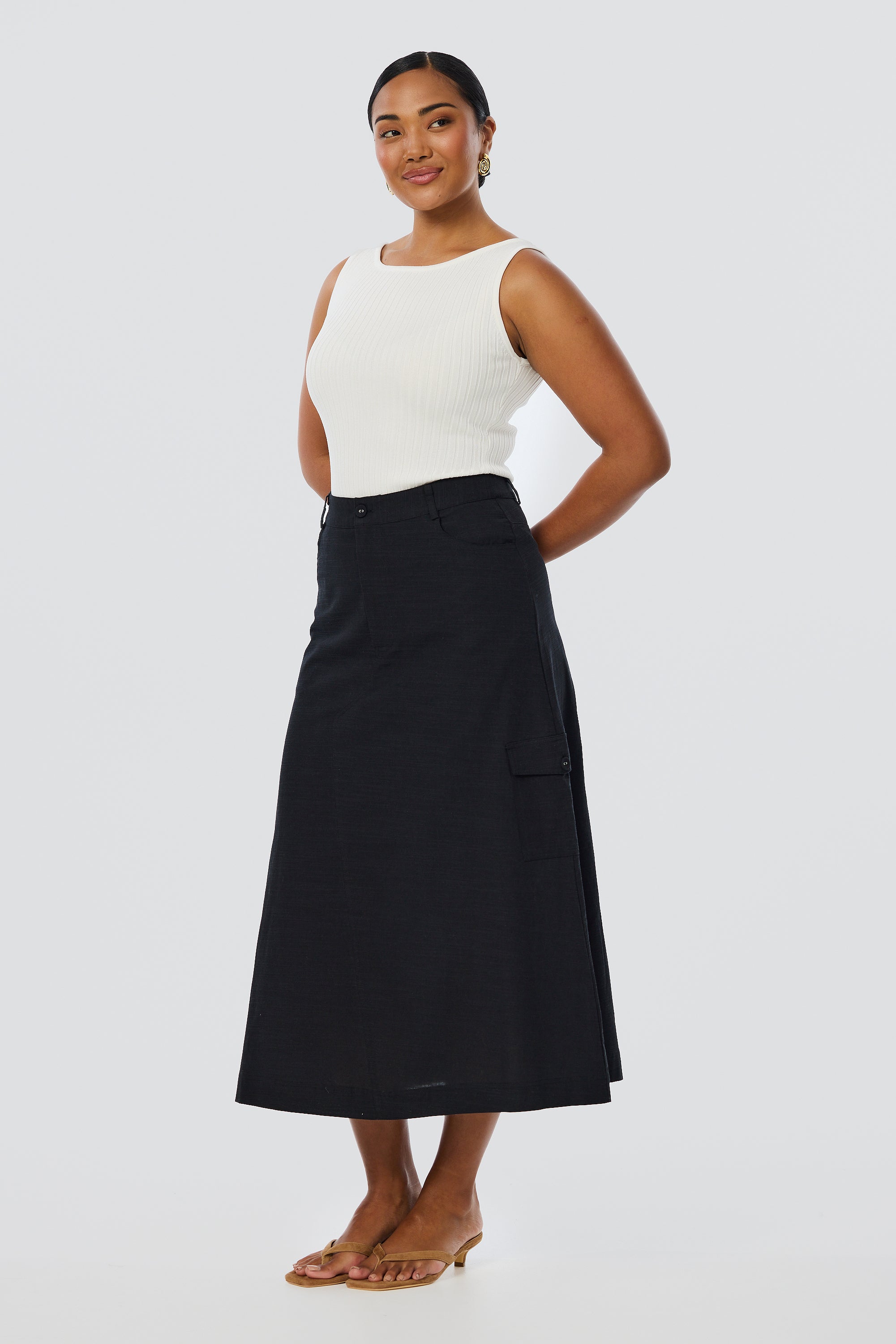 Cargo Midi Skirt - Black (Pre Order)