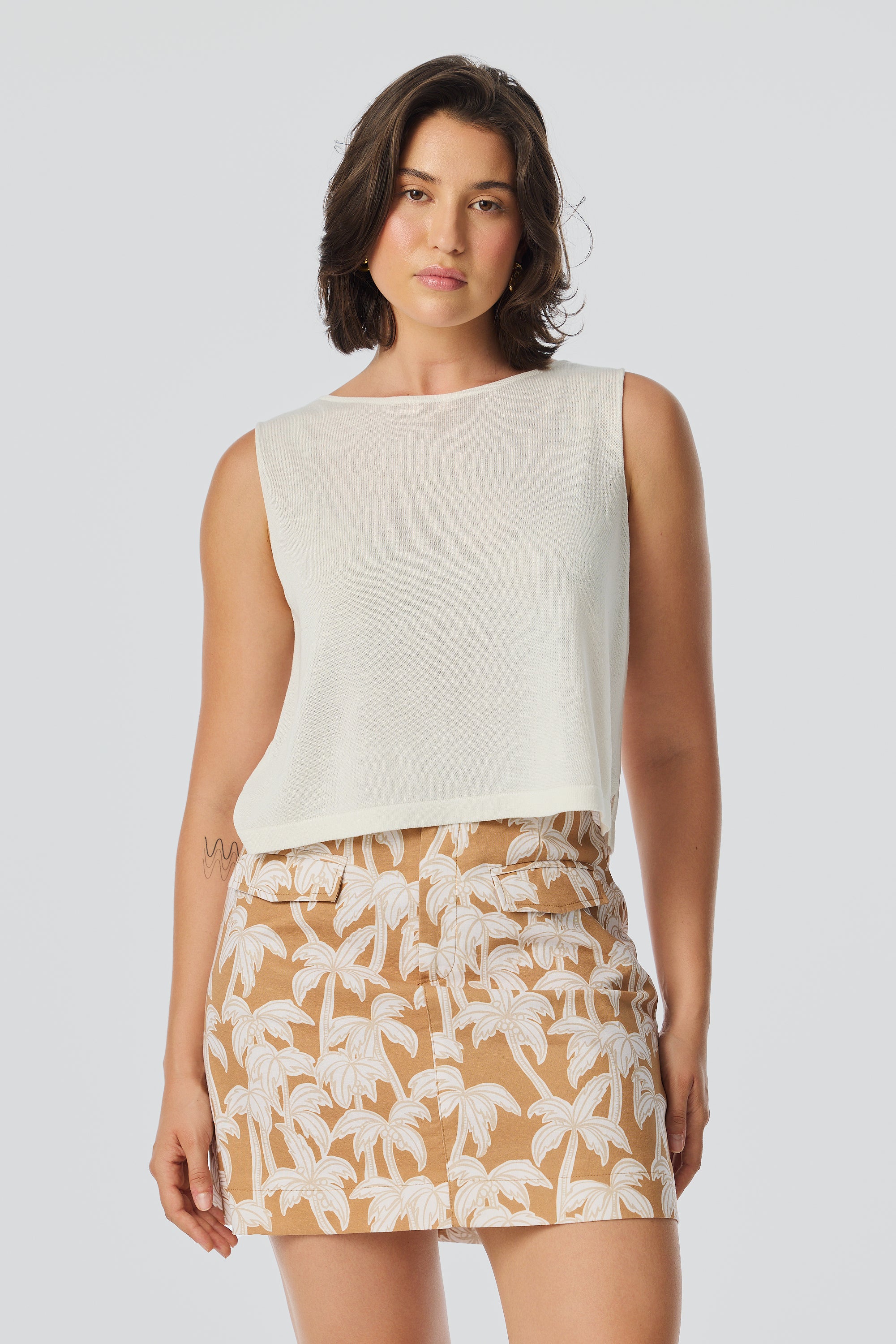 A lightweight wardrobe staple, the Crochet Boat Neck Tank in White features an easy boat neckline and relaxed, slightly cropped silhouette. Crafted in a mid-weight knit, it drapes softly while maintaining structure. Wear it on its own or layered for effortless everyday styling.