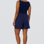 Designed for ease and polish, the Cuffed Shorts in Indigo Blue feature a tailored silhouette with crisp pleats and turned-up hems. A mid-thigh length makes them ideal for warm-weather styling.