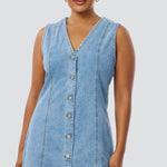 Denim Buttoned Mini Dress - Mid Blue Wash (Pre Order)