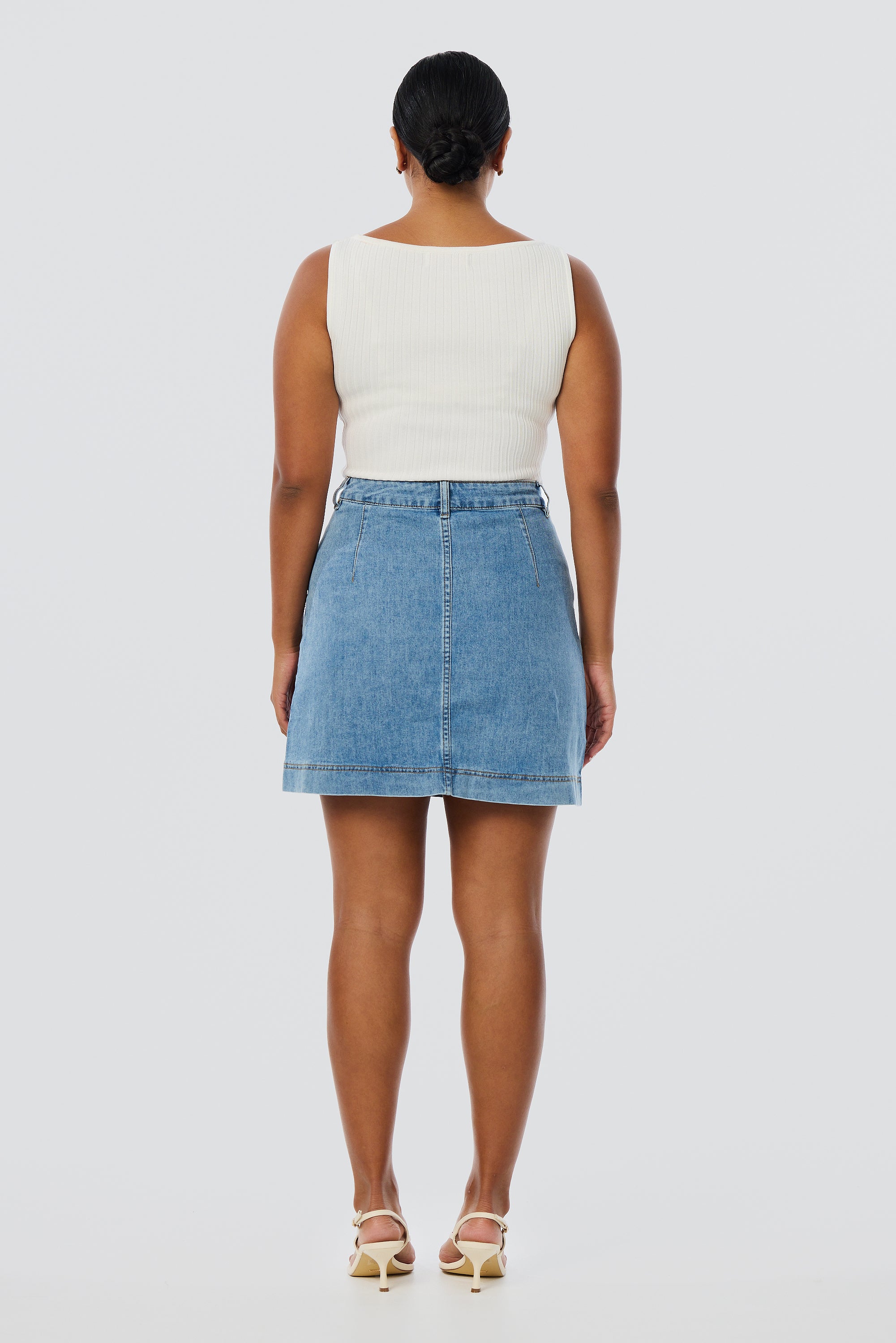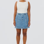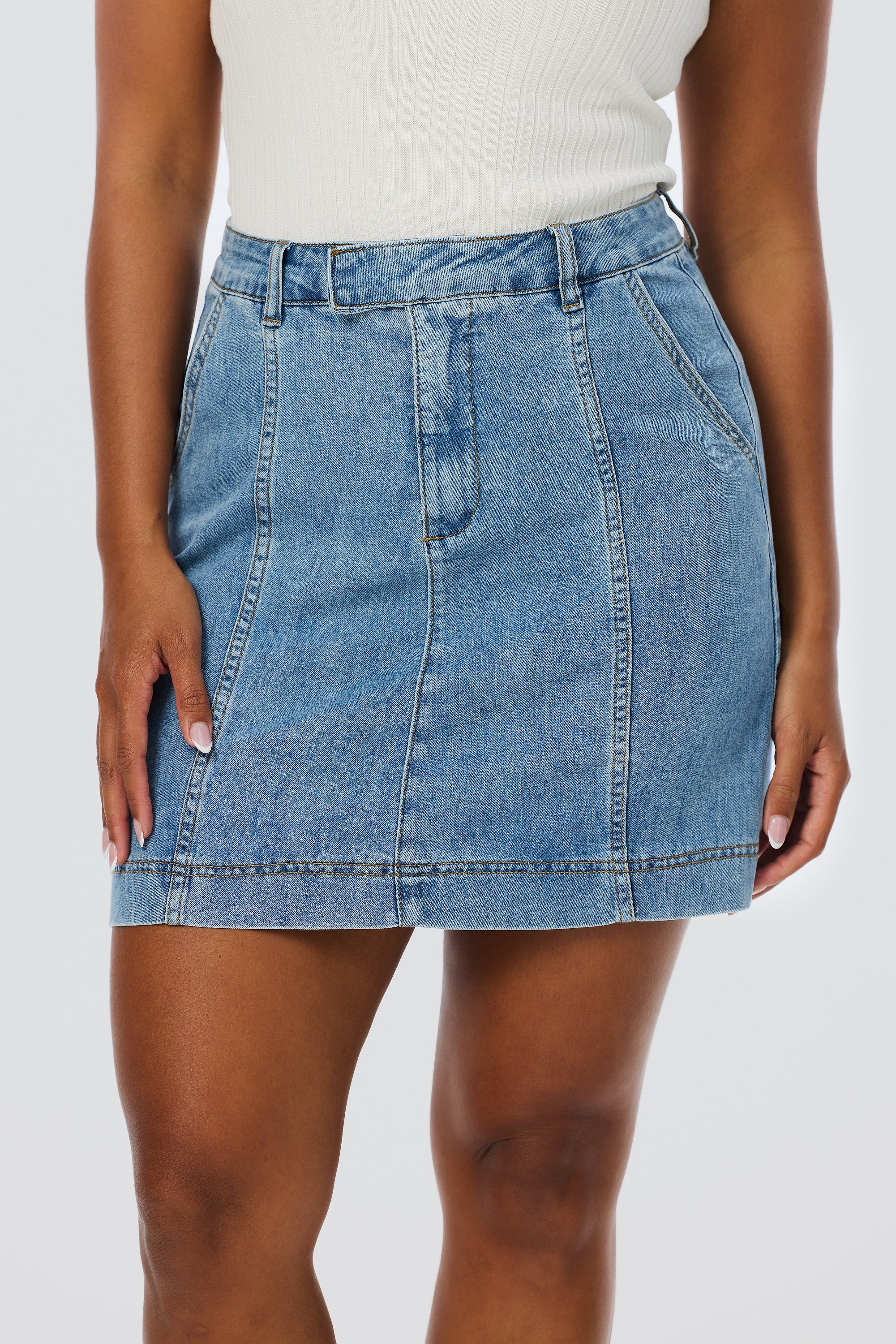 Denim Panelled Mini Skirt - Mid Blue Wash (Pre Order)